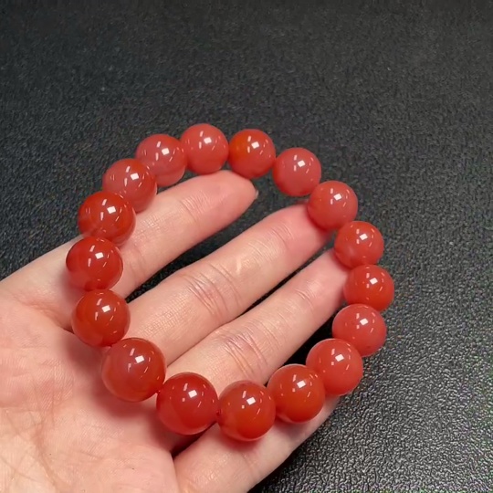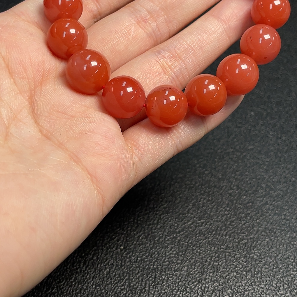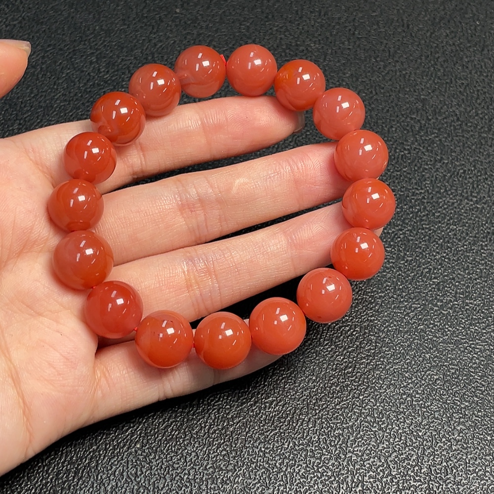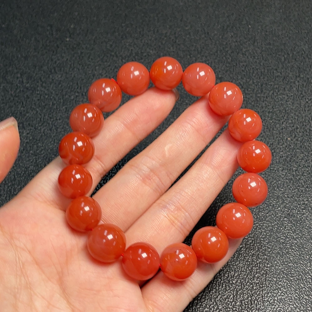Red Agate Bracelet with Visible Organic Matter, Total Weight Approx. 44.73g, Size About 12.5mm