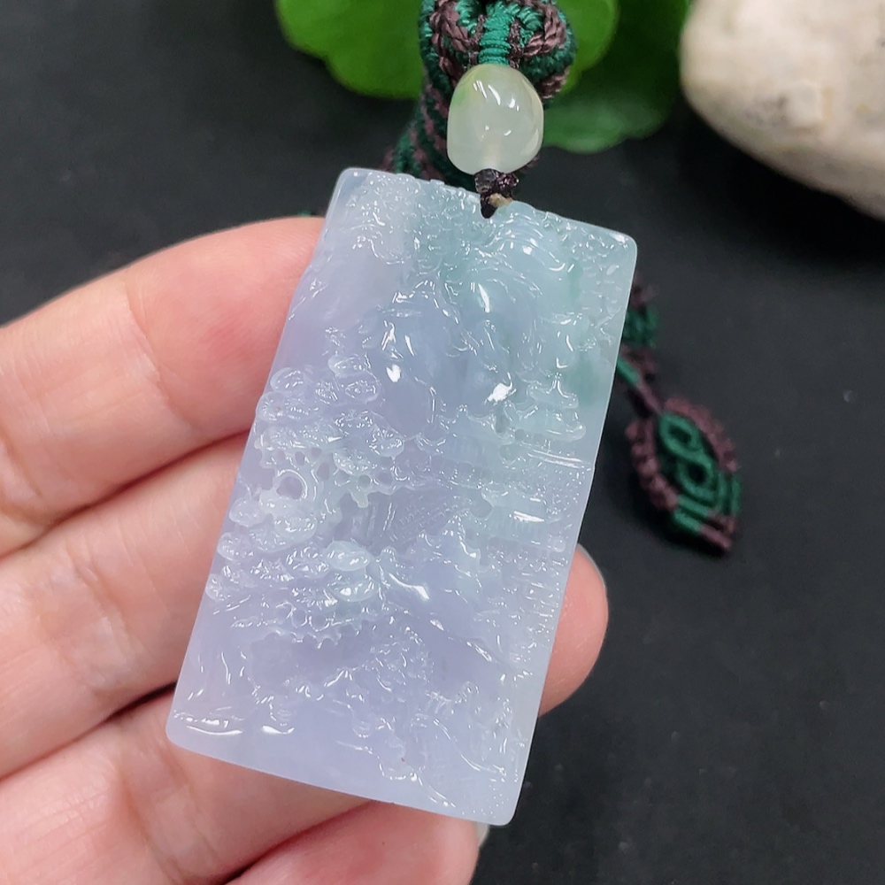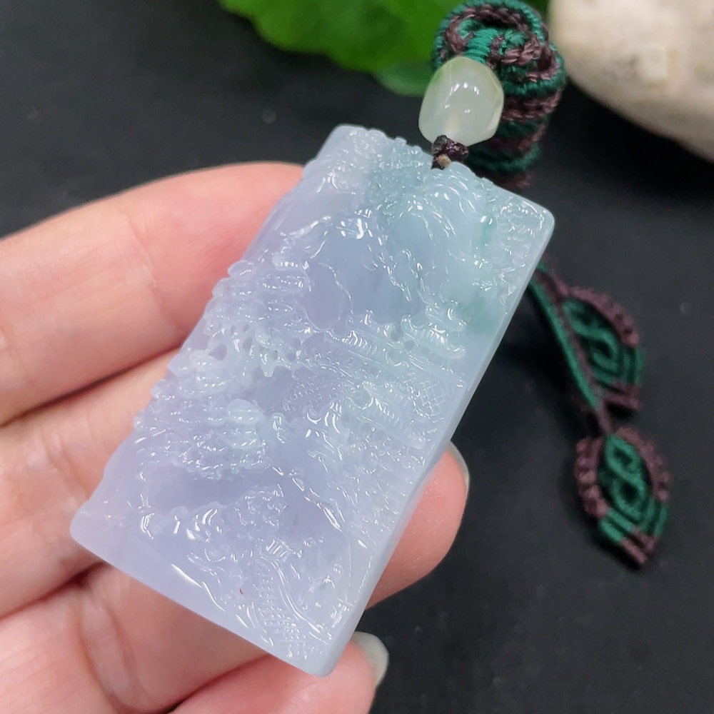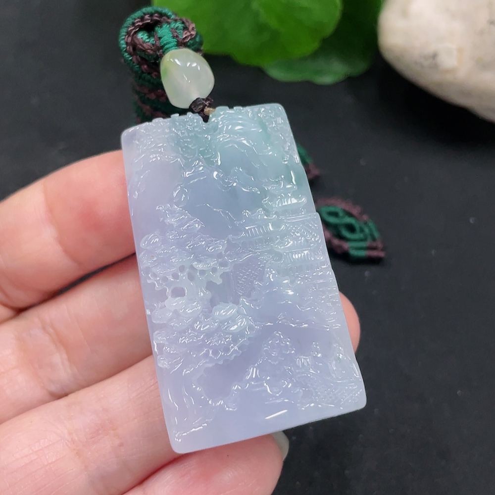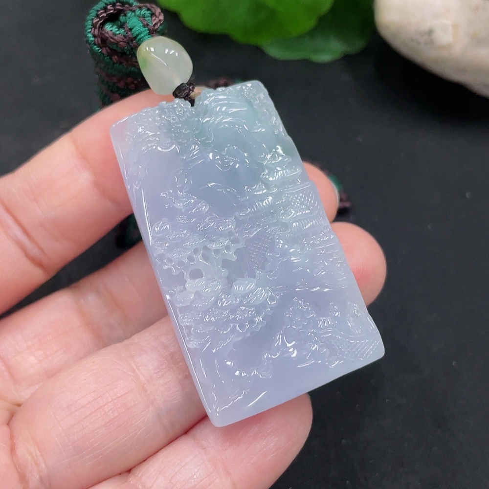 Jadeite Landscape Pendant with Cord, Total Weight Approximately 29.1g