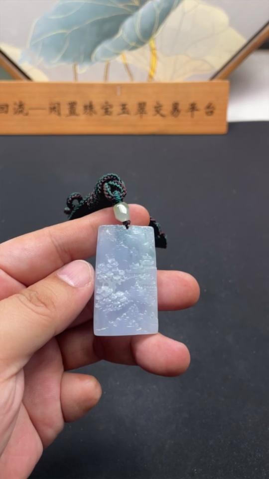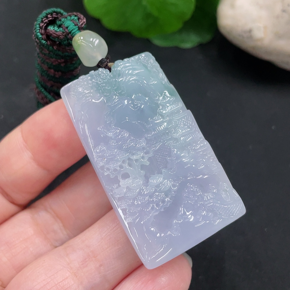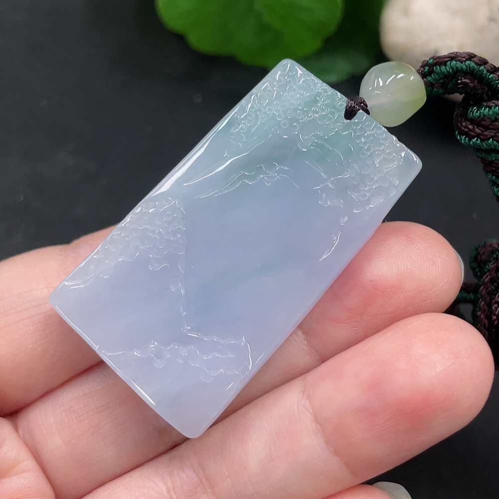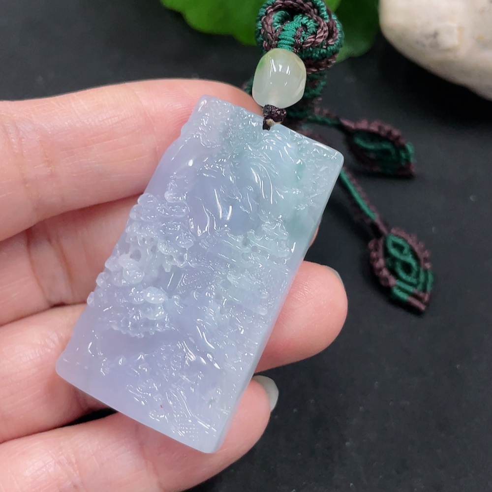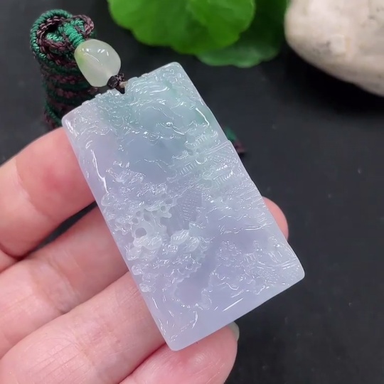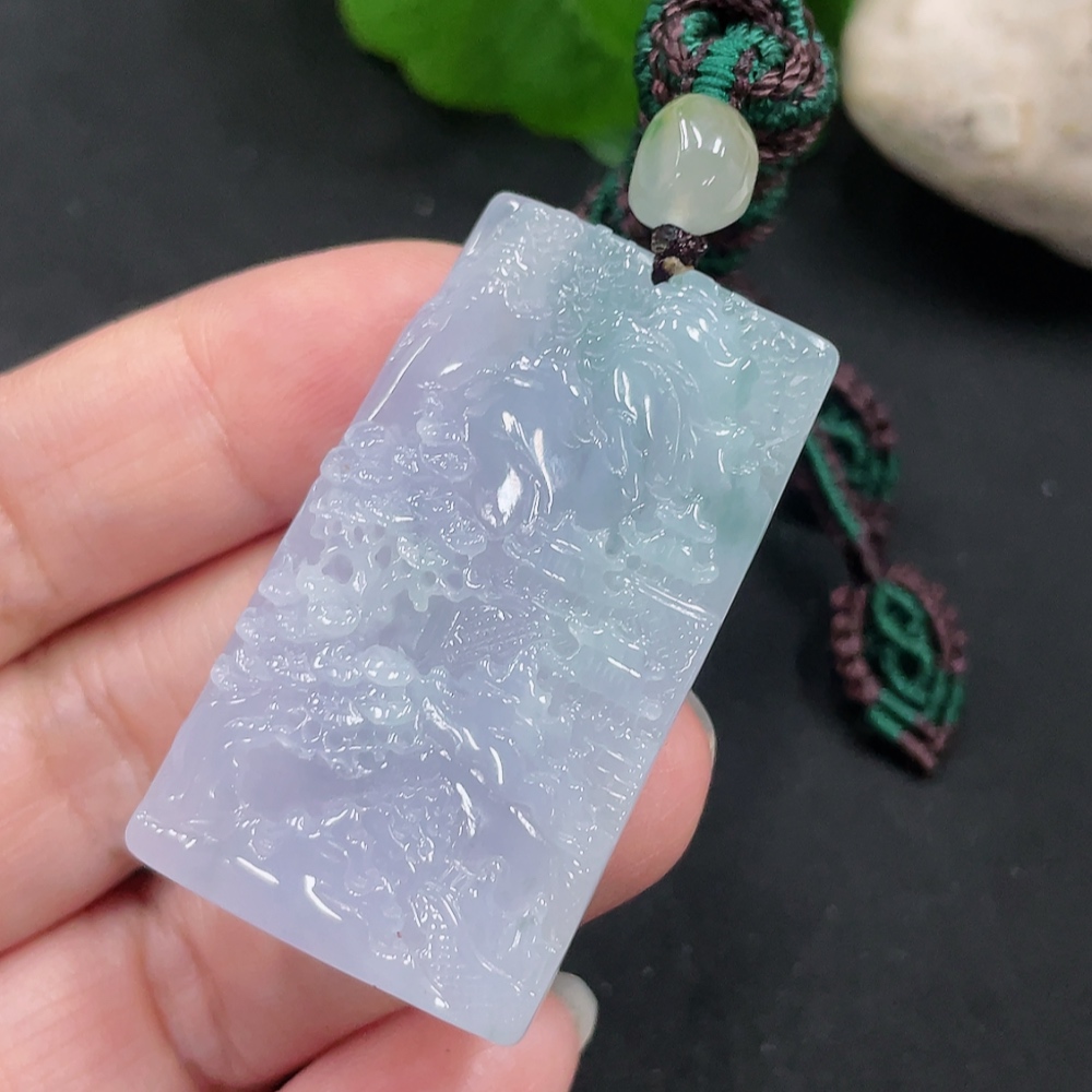 Jadeite Landscape Pendant with Cord, Total Weight Approximately 29.1g