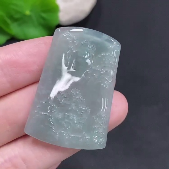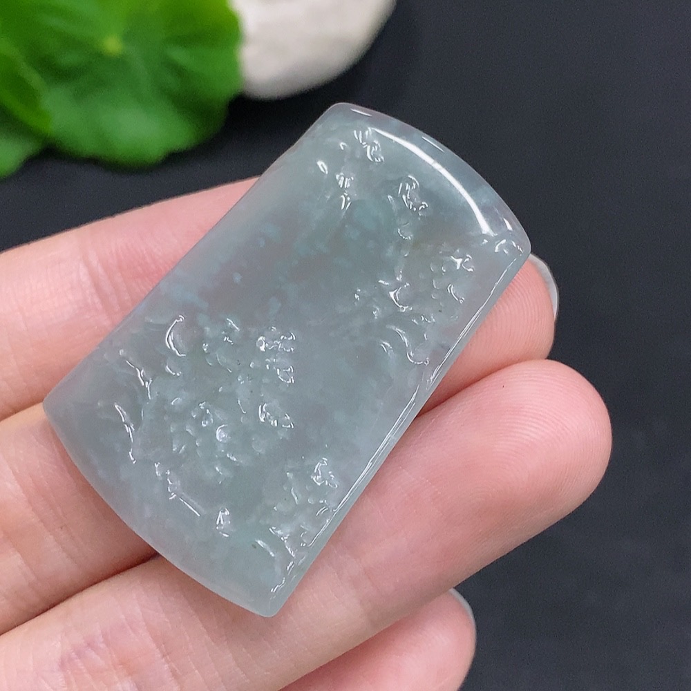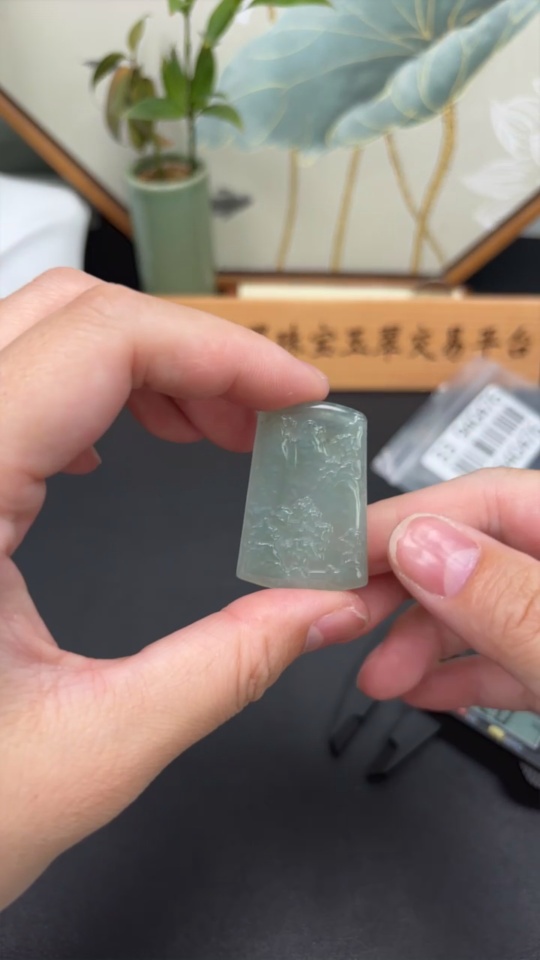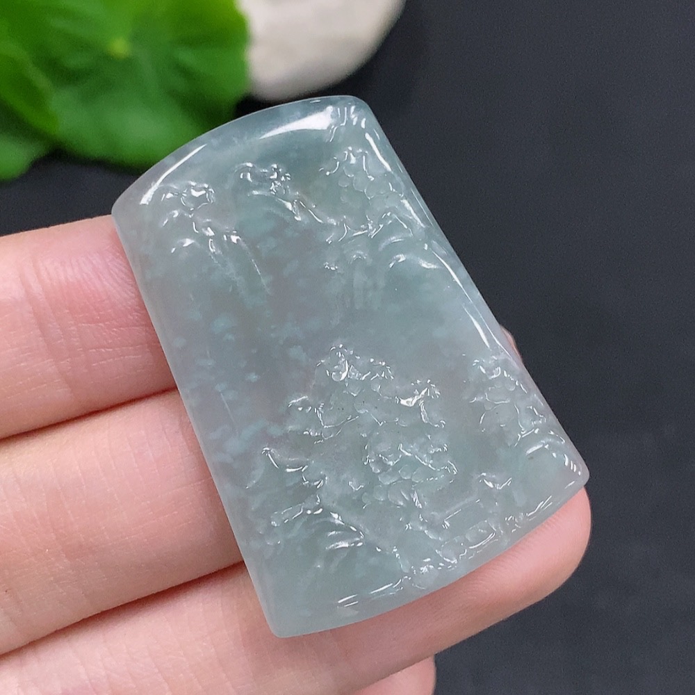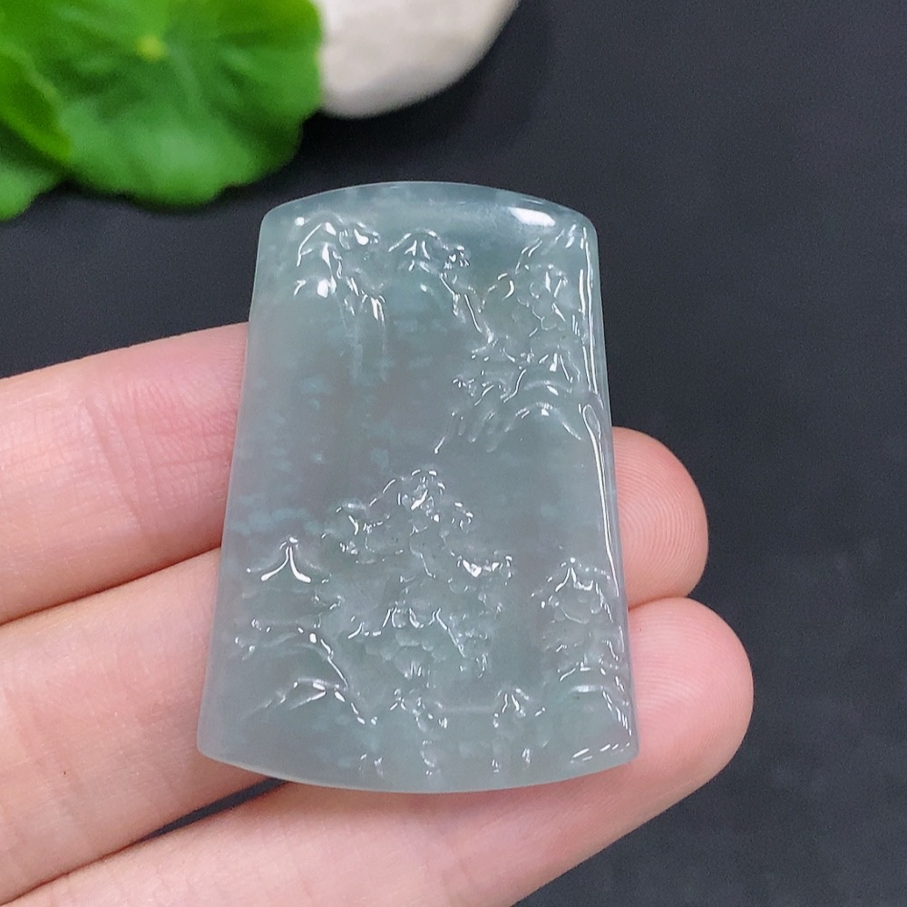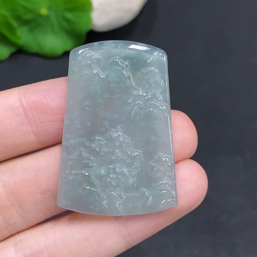 Jadeite Landscape Pendant, Total Weight Approximately 6.7g