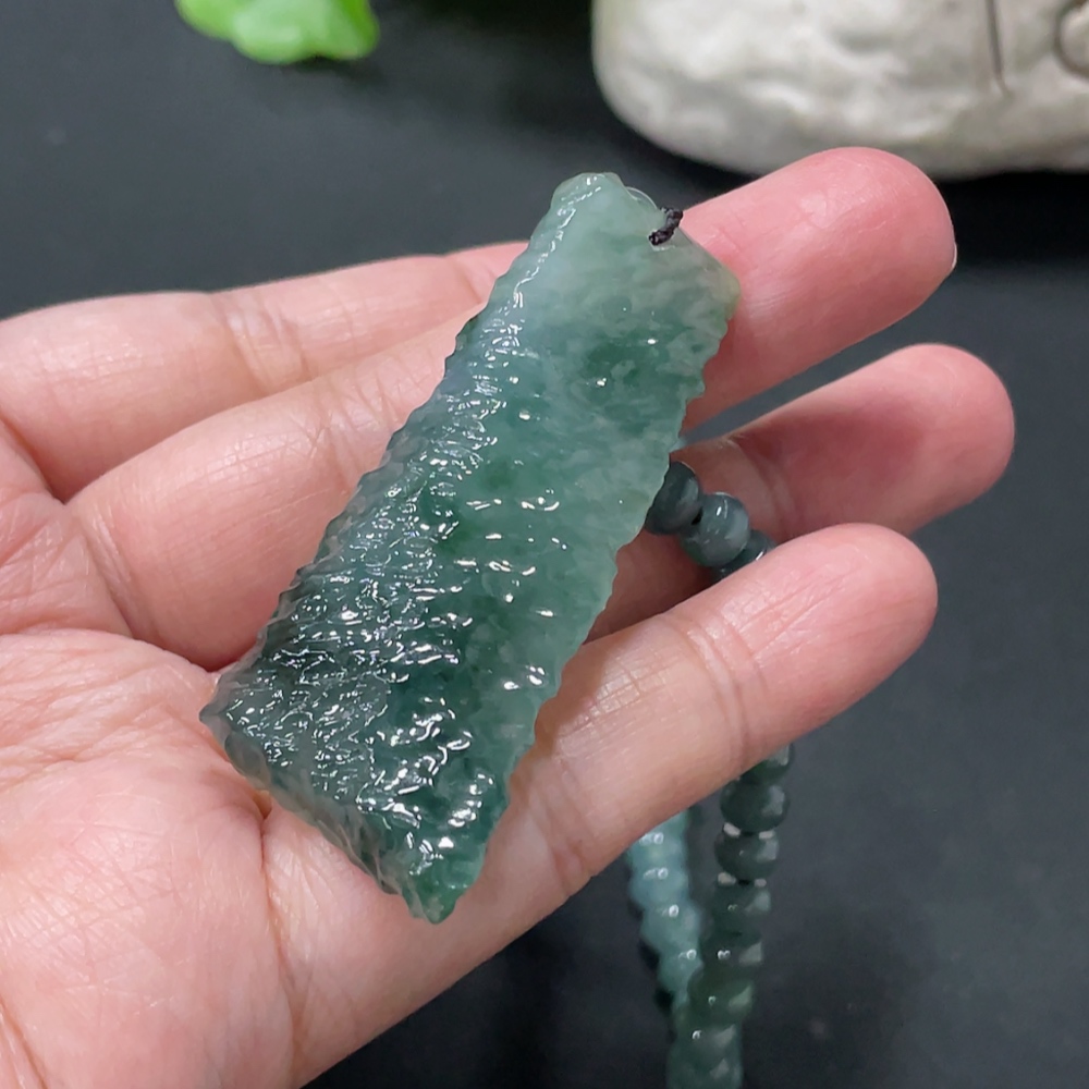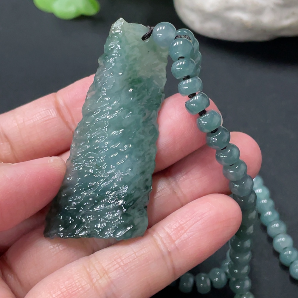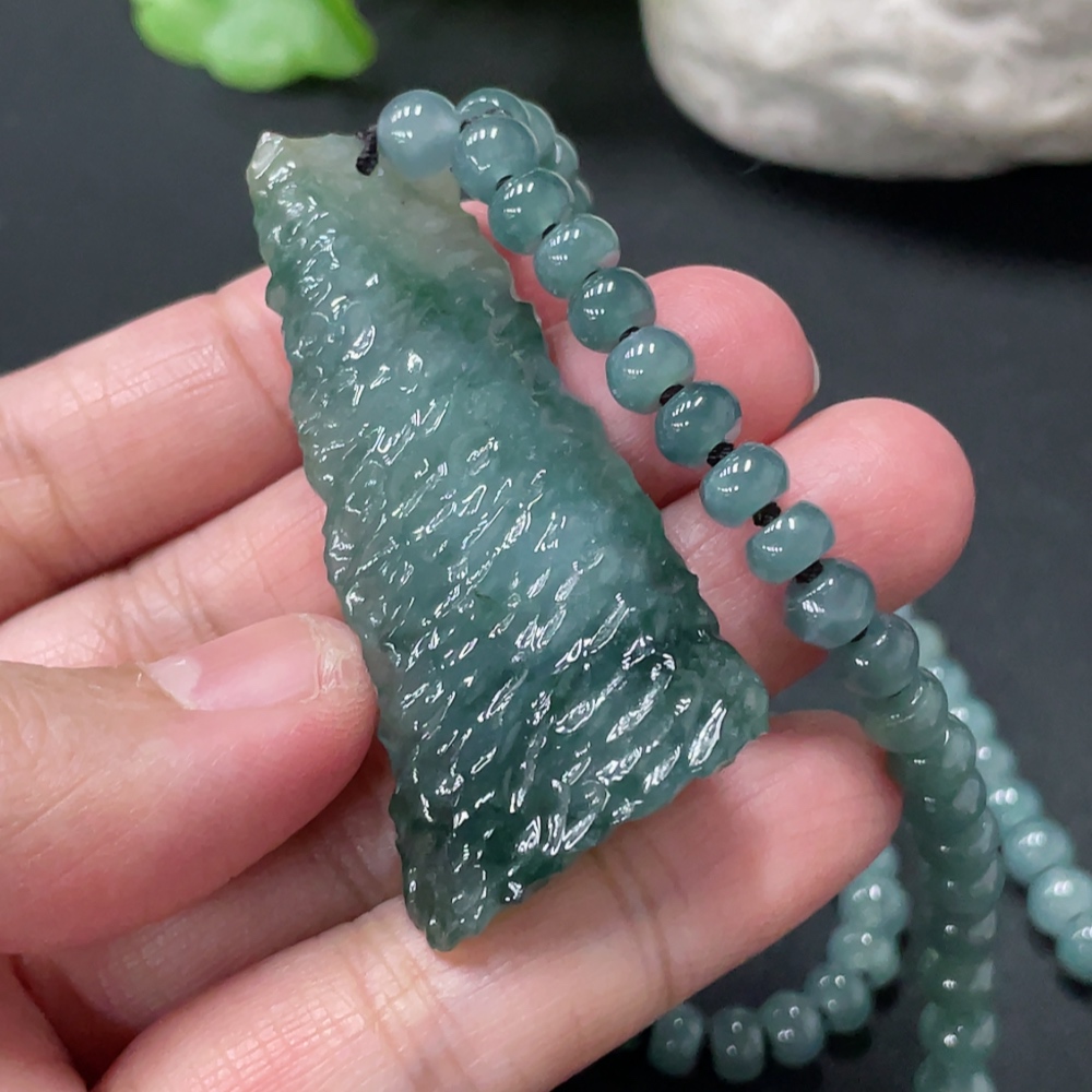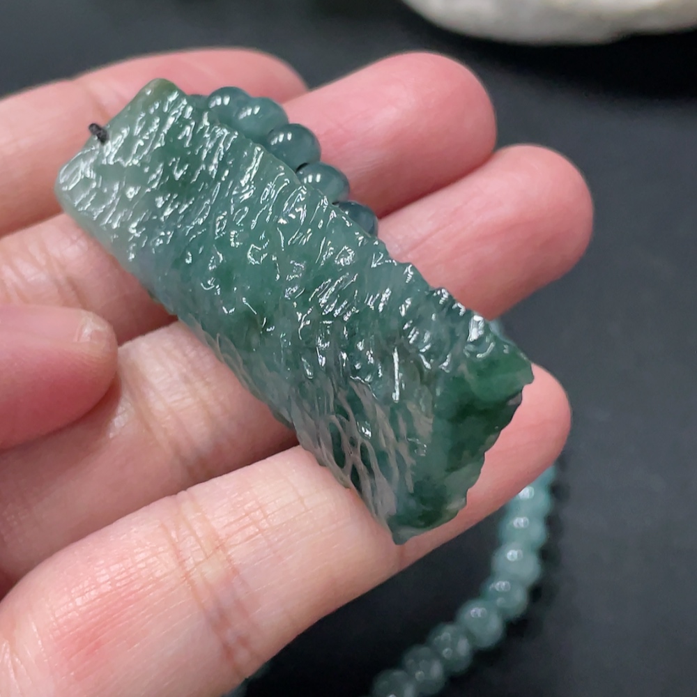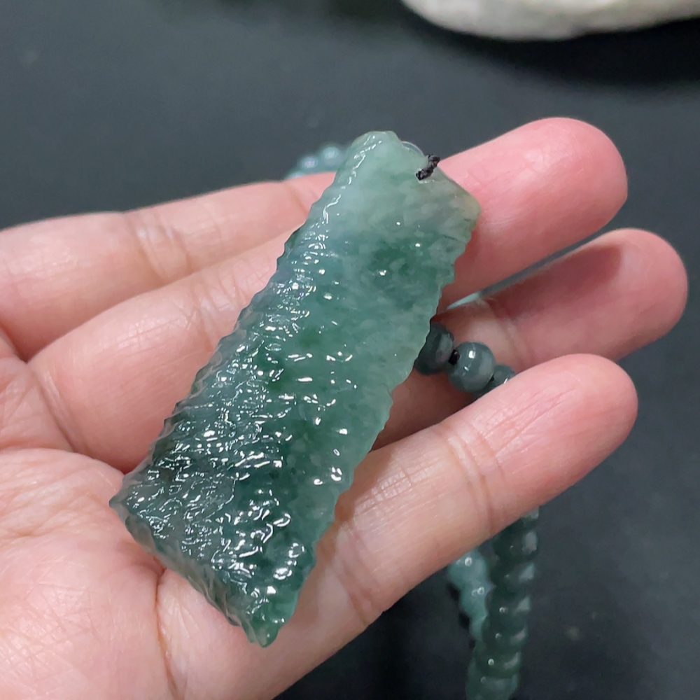Jadeite freeform pendant + bead chain approx. 5.6mm total weight approx. 36.24g non-gold rope clasp