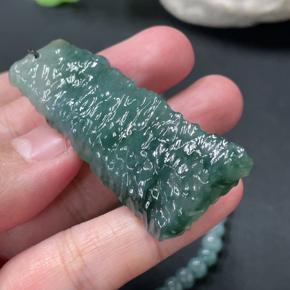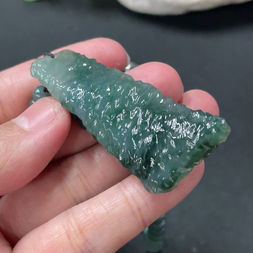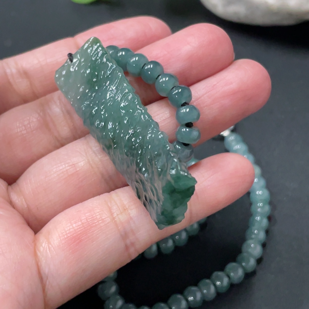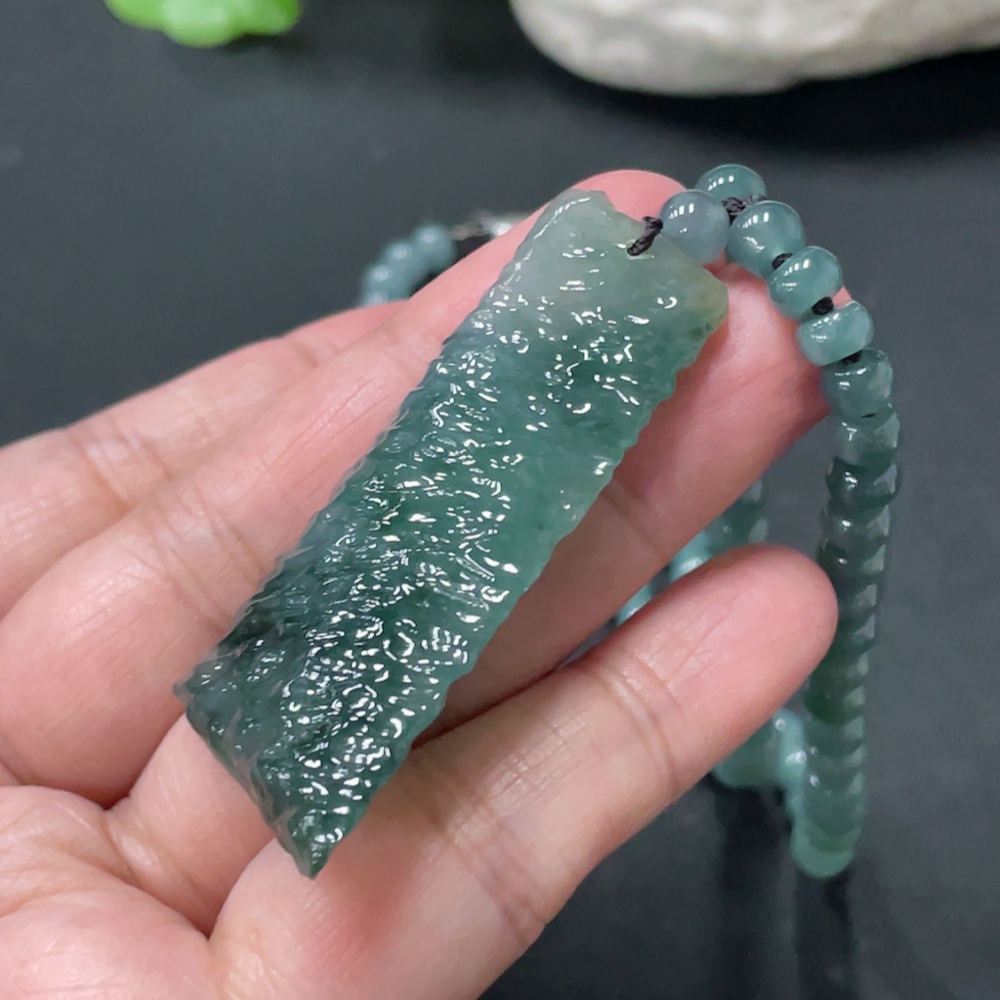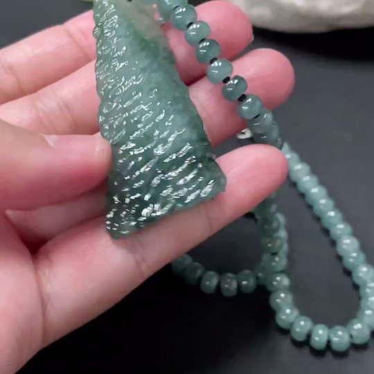 Jadeite freeform pendant + bead chain approx. 5.6mm total weight approx. 36.24g non-gold rope clasp