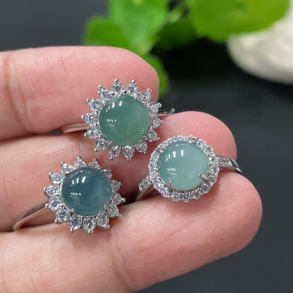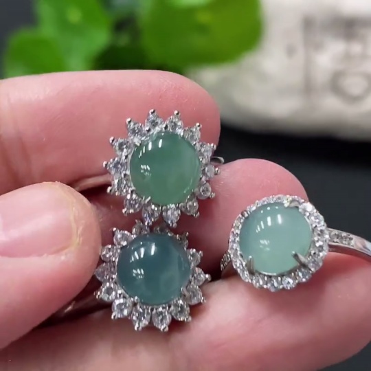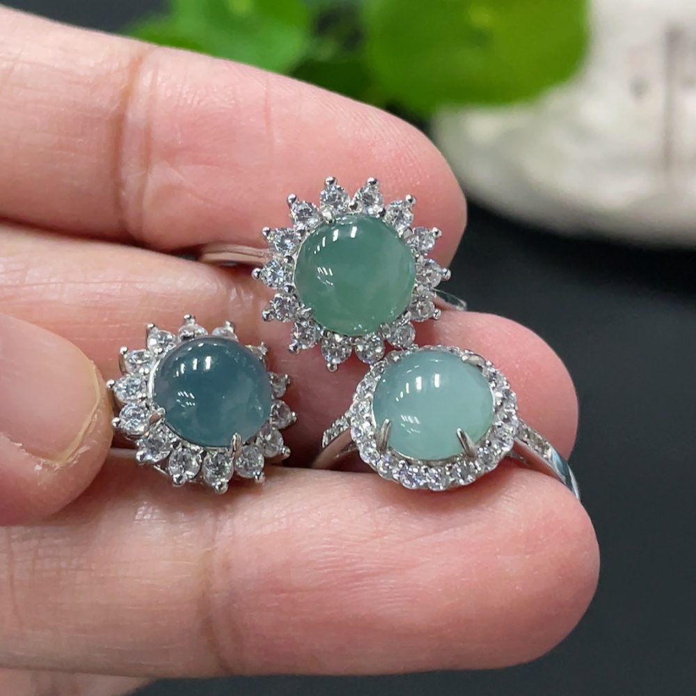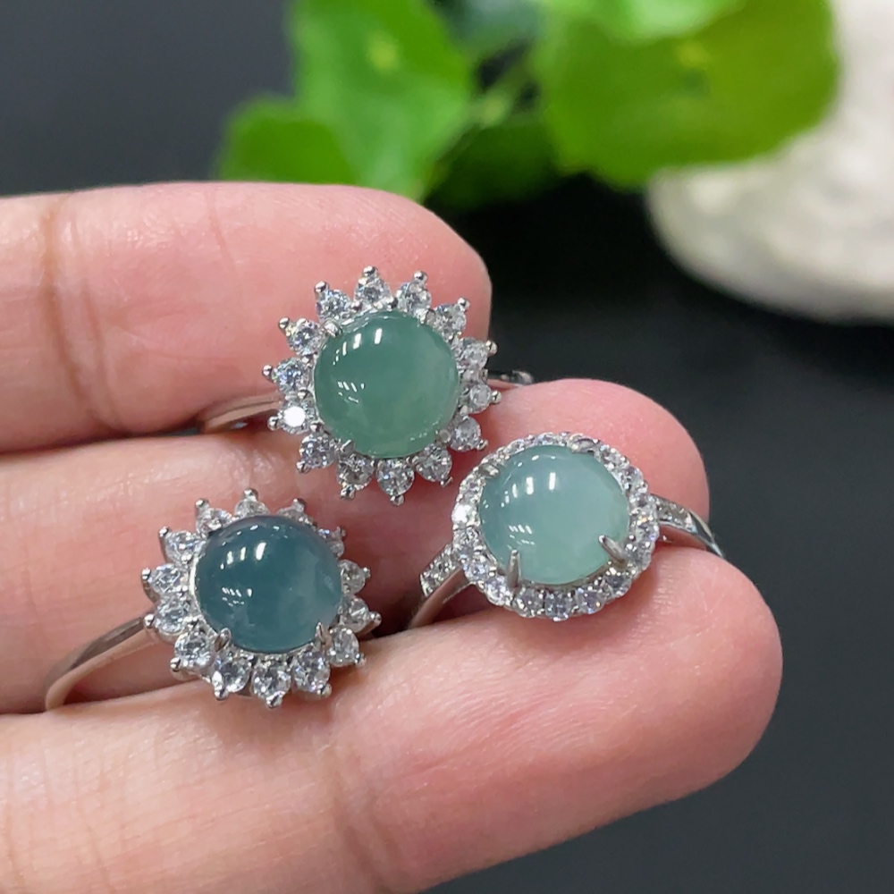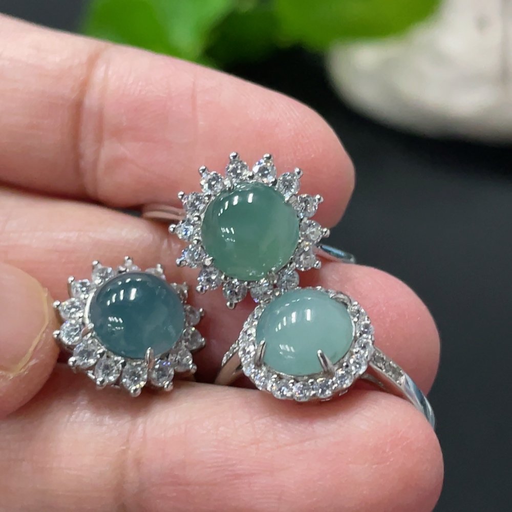 Jadeite Cabochon Inlay Ring Non-Gold Inlay Adjustable Size