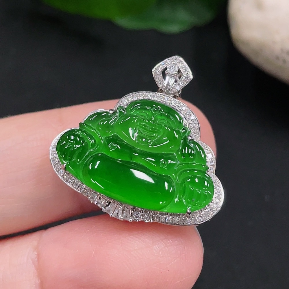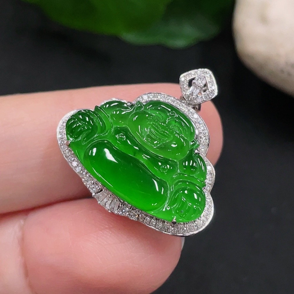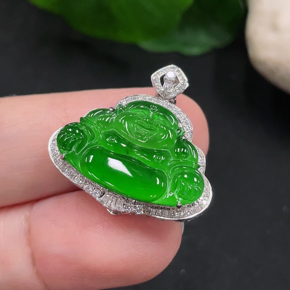 Jadeite Buddha Pendant 18K Gold Total Weight Approx. 5.2g (Diamond Accented)