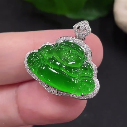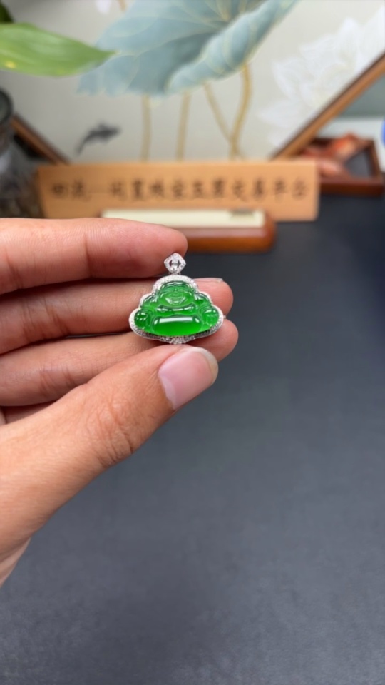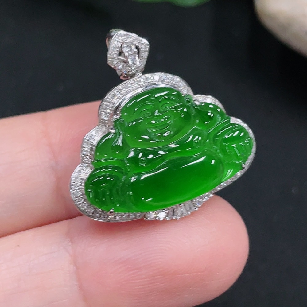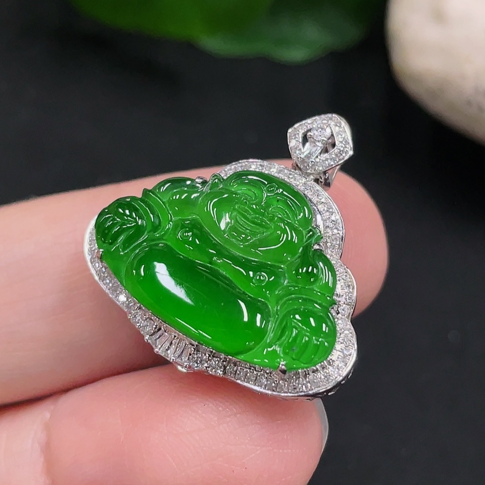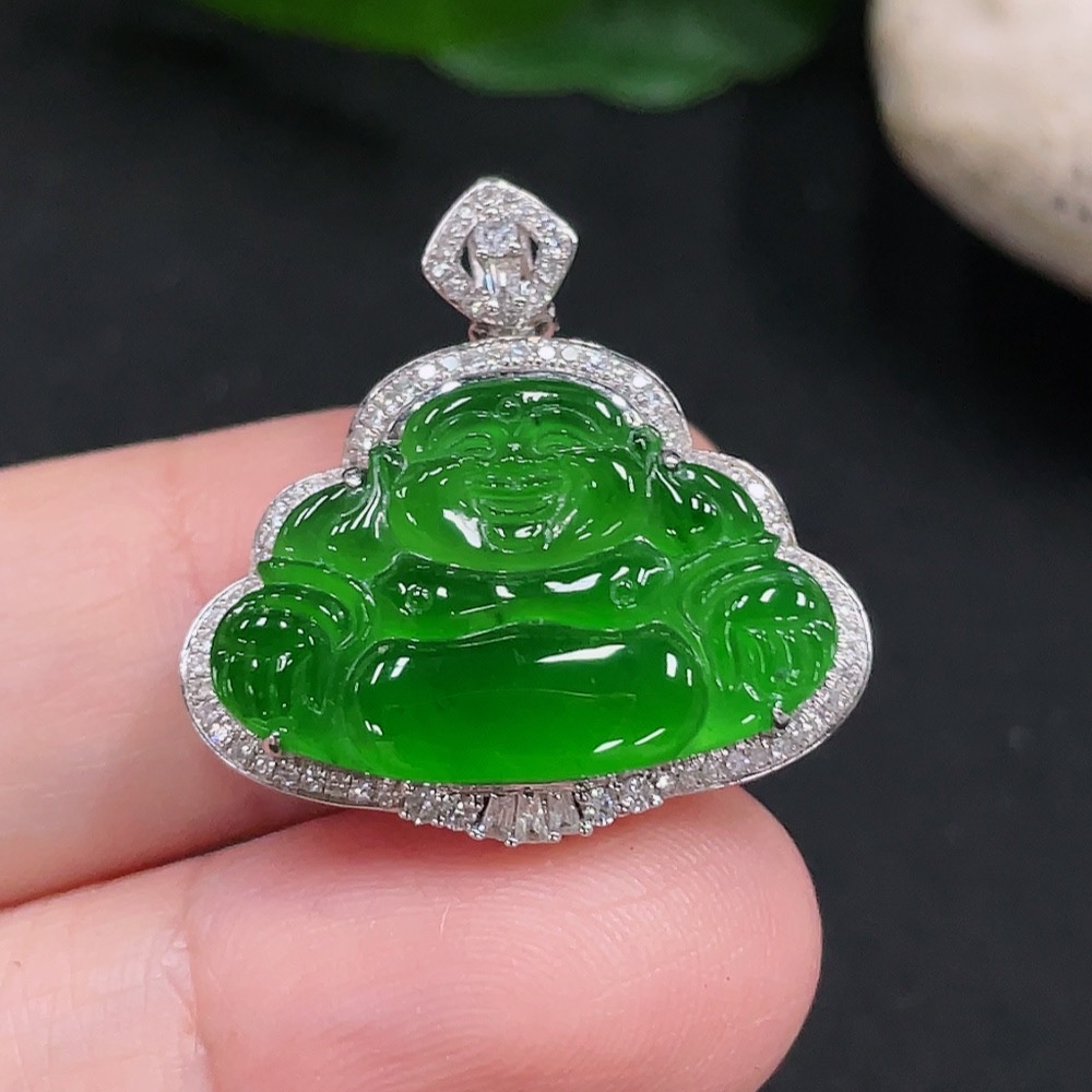 Jadeite Buddha Pendant 18K Gold Total Weight Approx. 5.2g (Diamond Accented)
