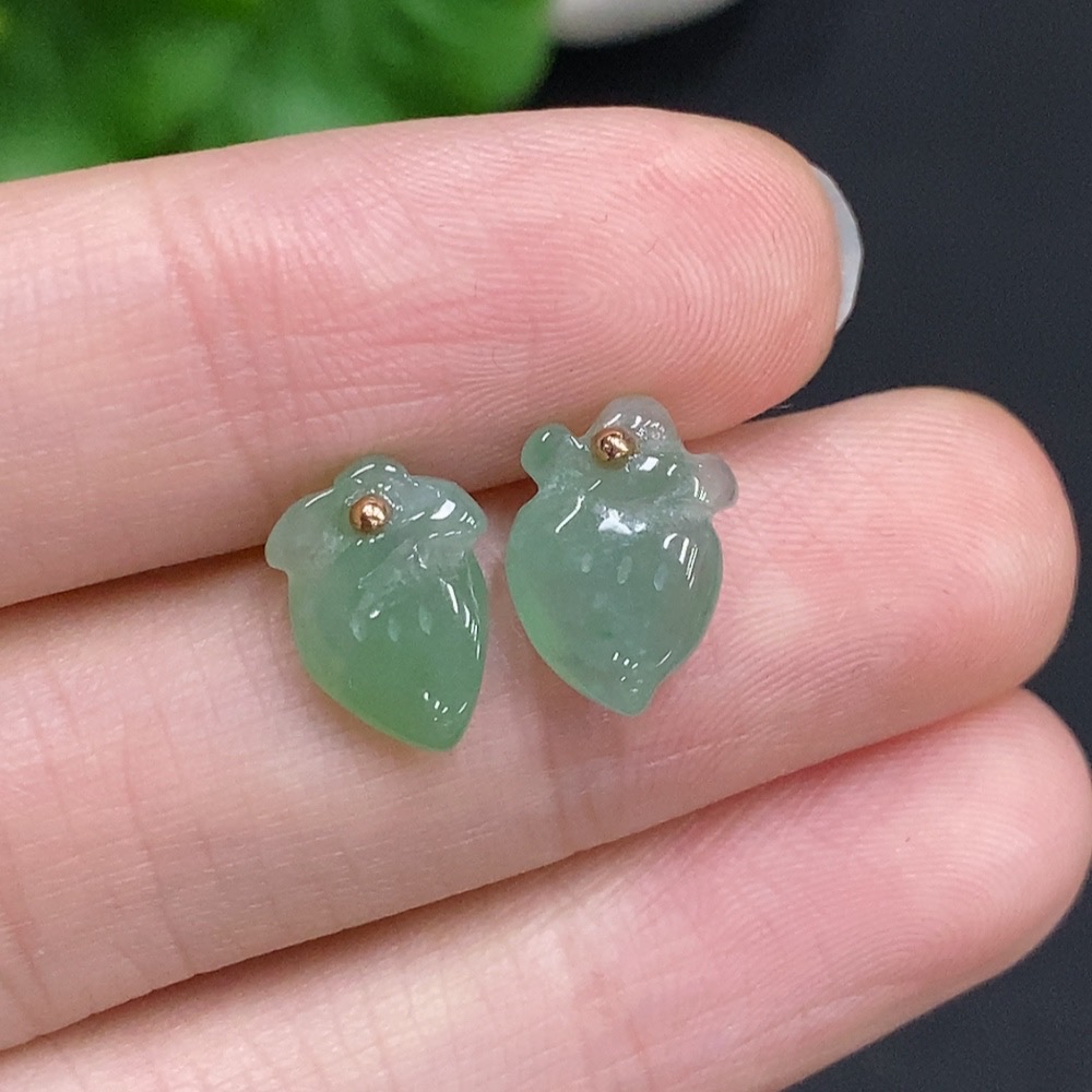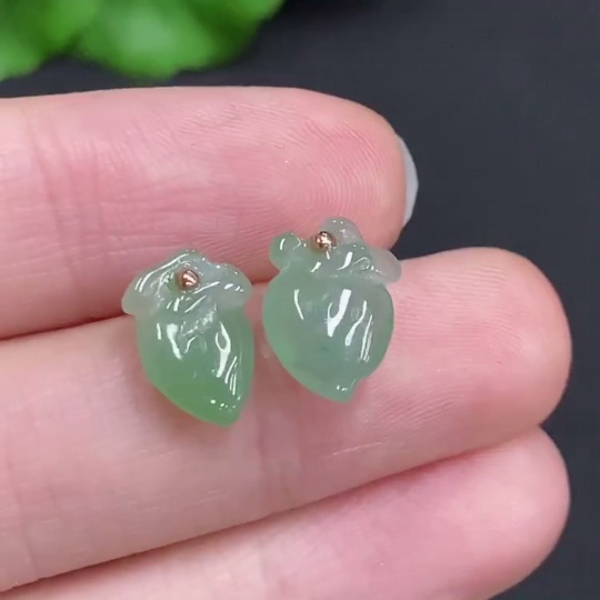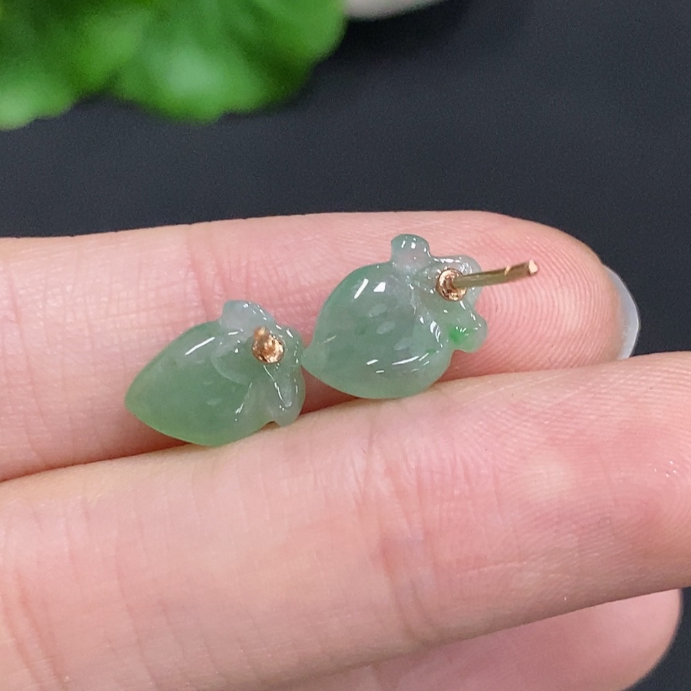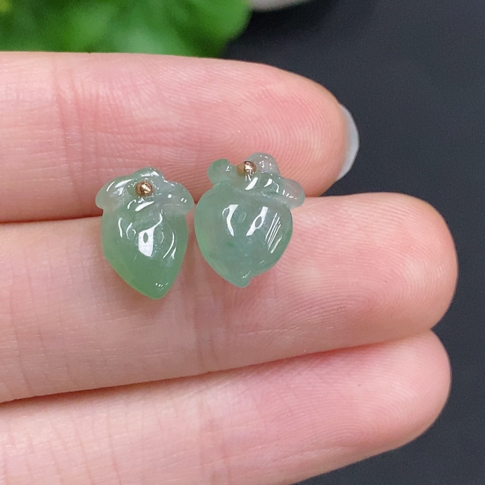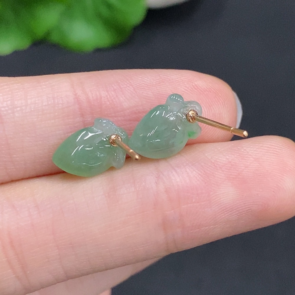 Jadeite Peach Inlaid Earrings Unmarked 18K Gold Approx. 1.4g Total Weight