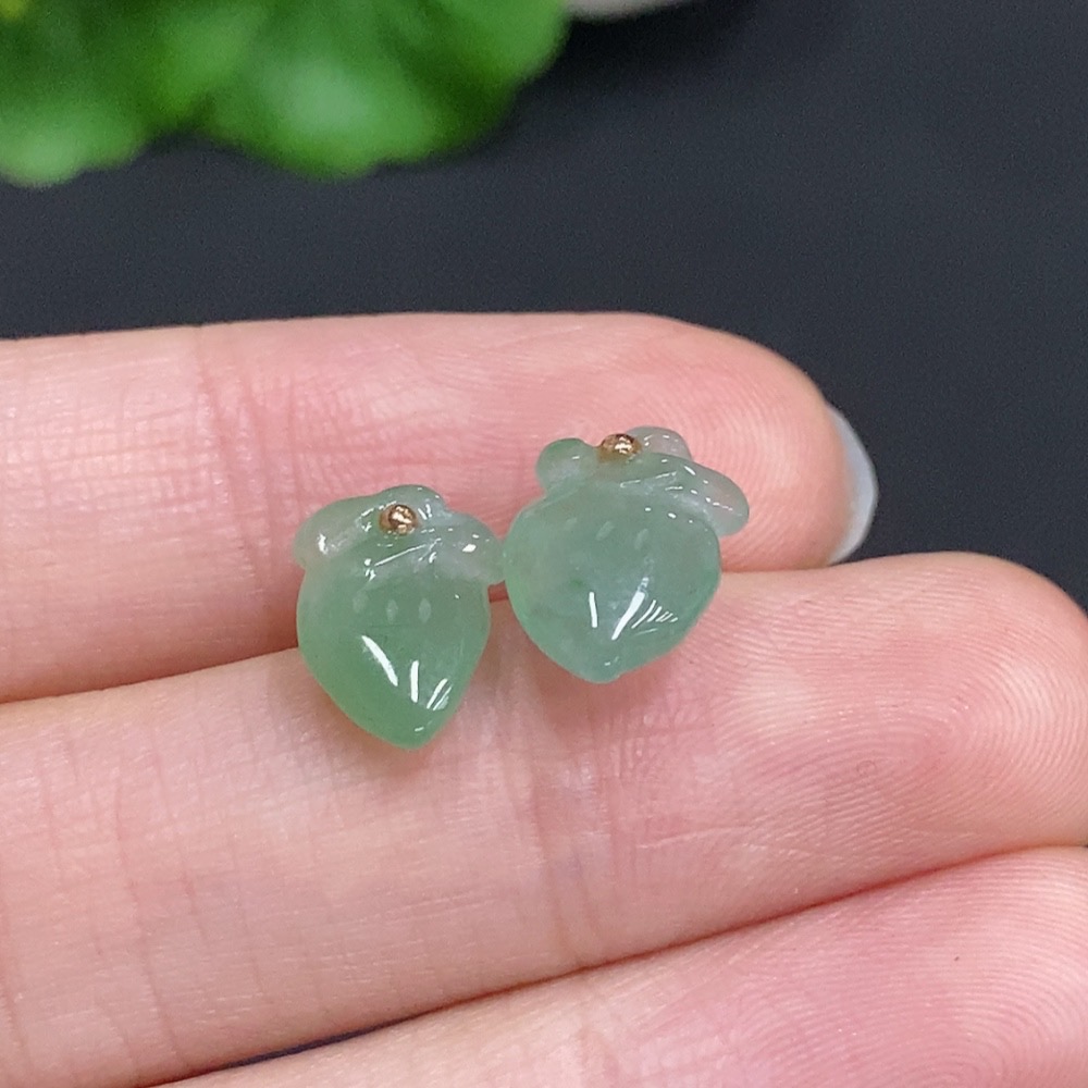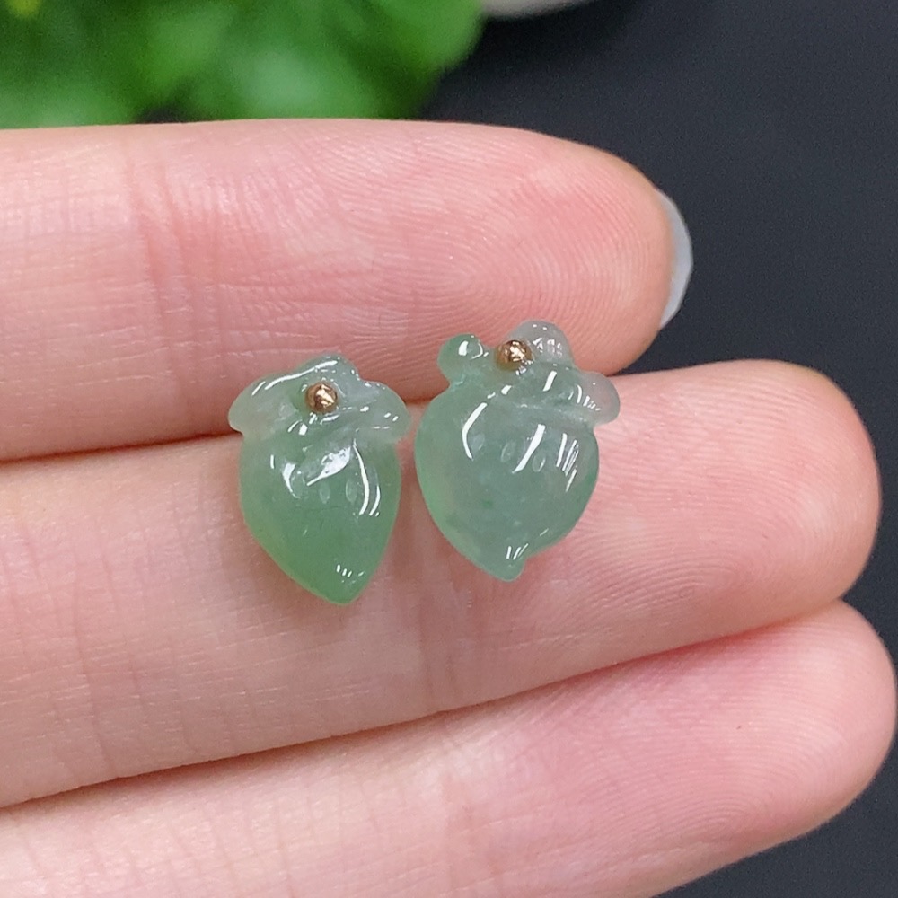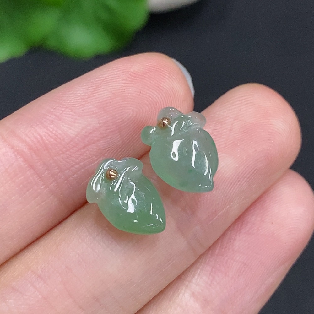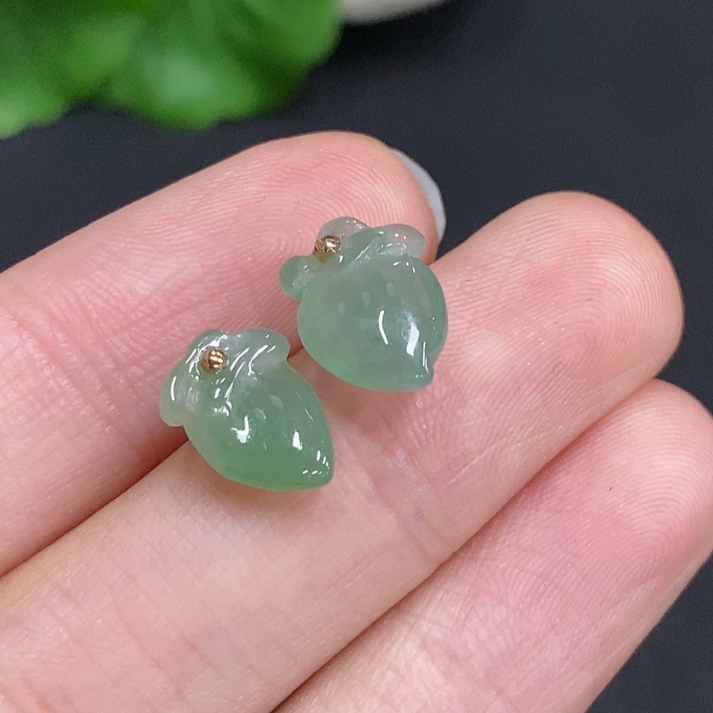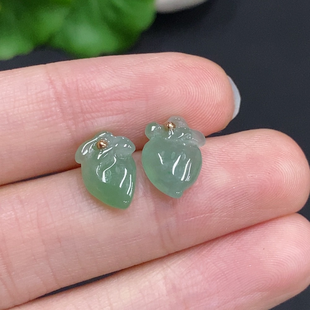 Jadeite Peach Inlaid Earrings Unmarked 18K Gold Approx. 1.4g Total Weight