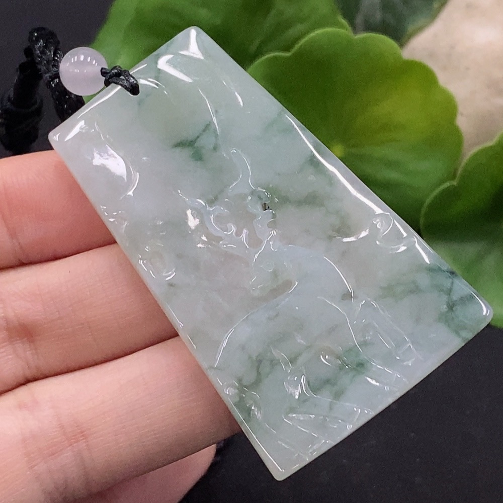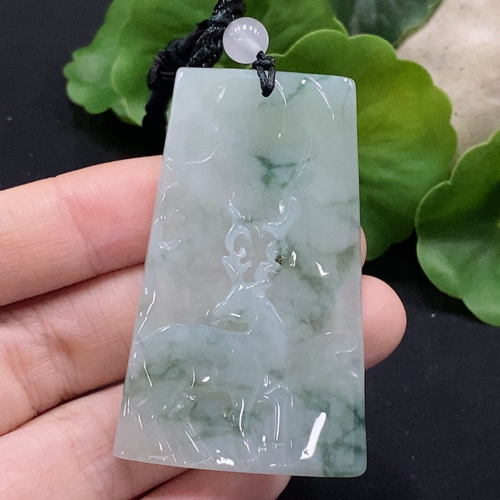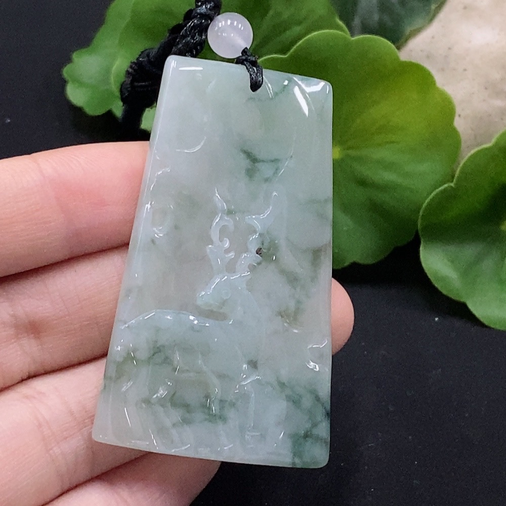 Jadeite Deer Pendant with Non-A Grade Beads Total Weight Approx. 18.83g