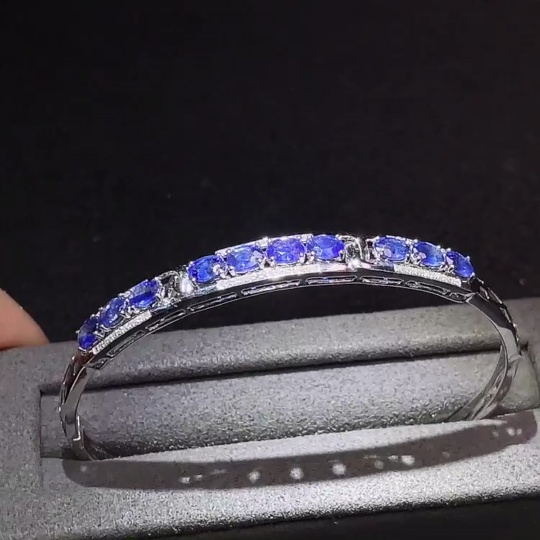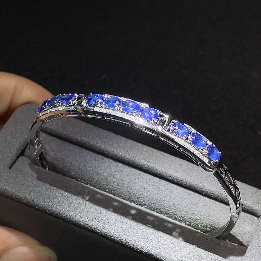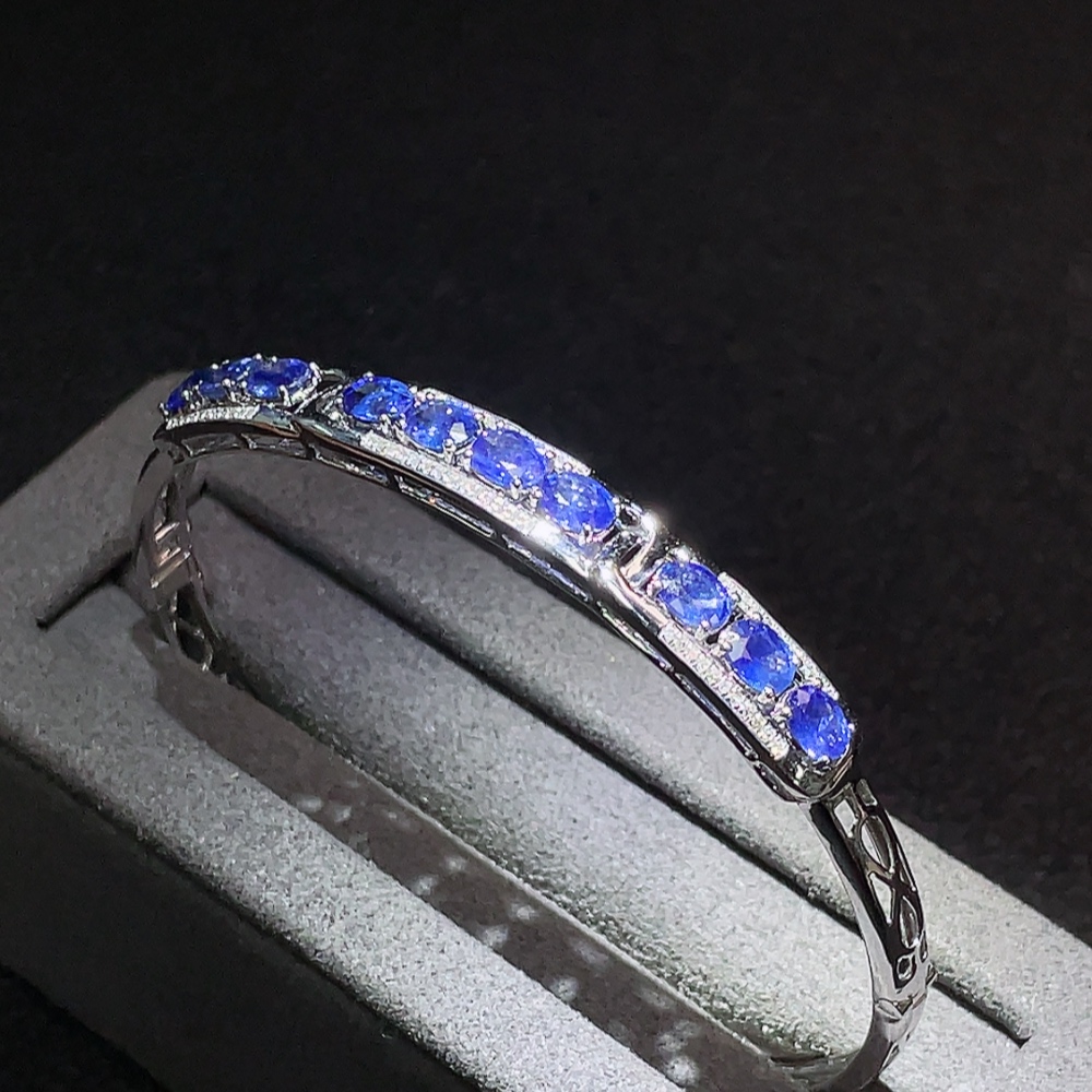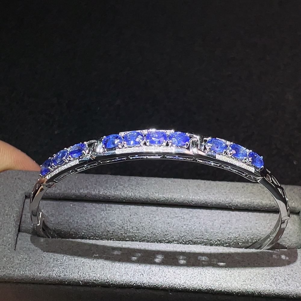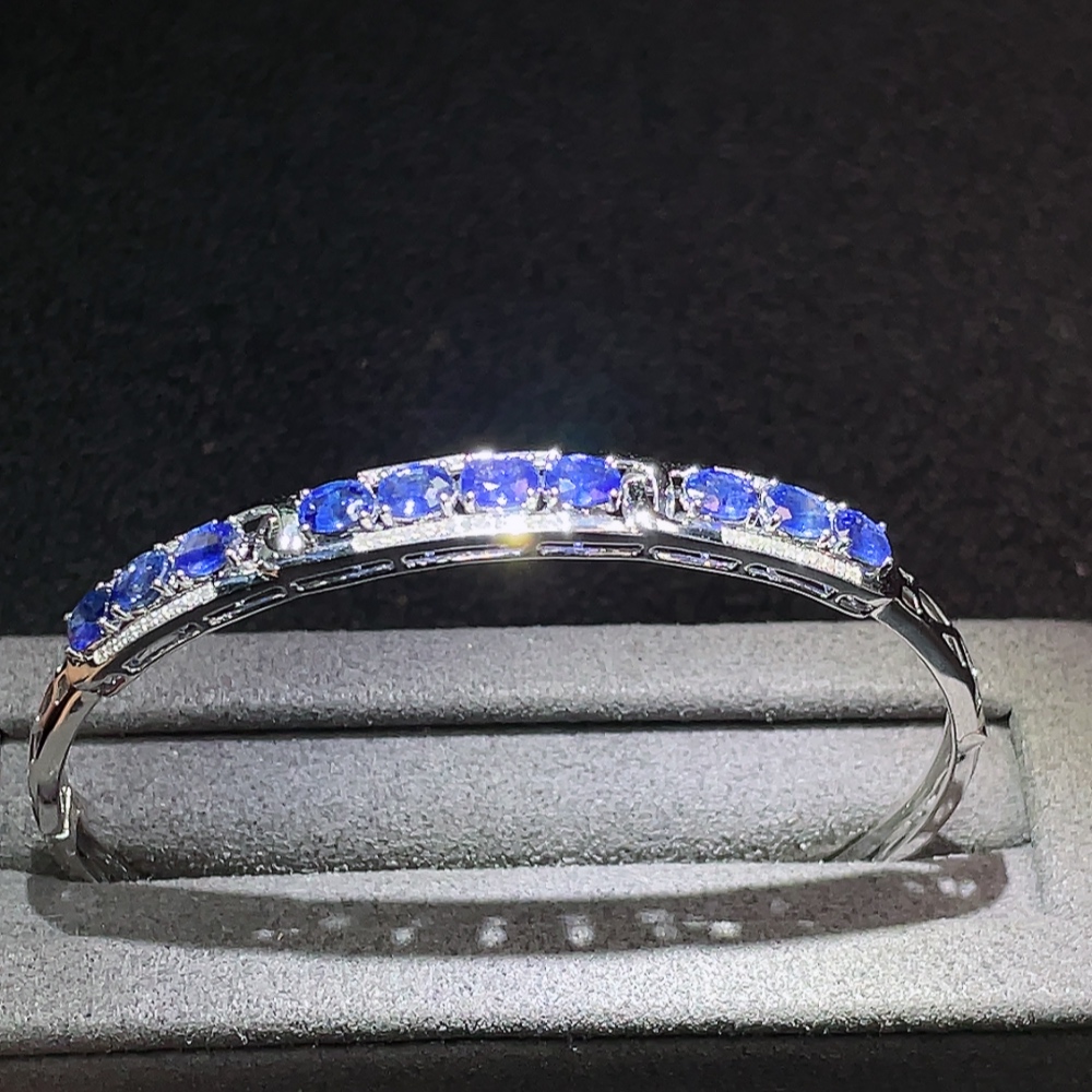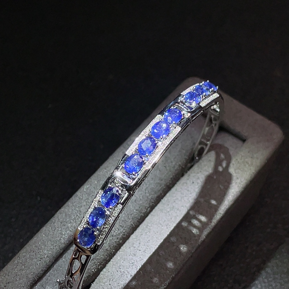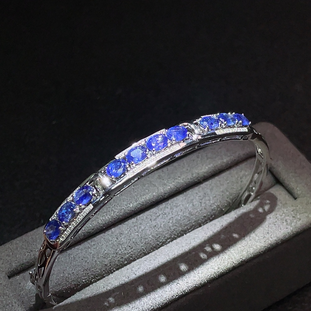 18K Blue Sapphire Bracelet with Diamond Accents, Total Weight Approximately 7.42g