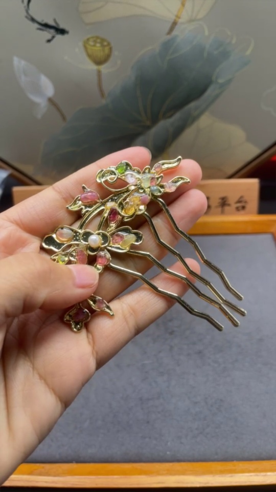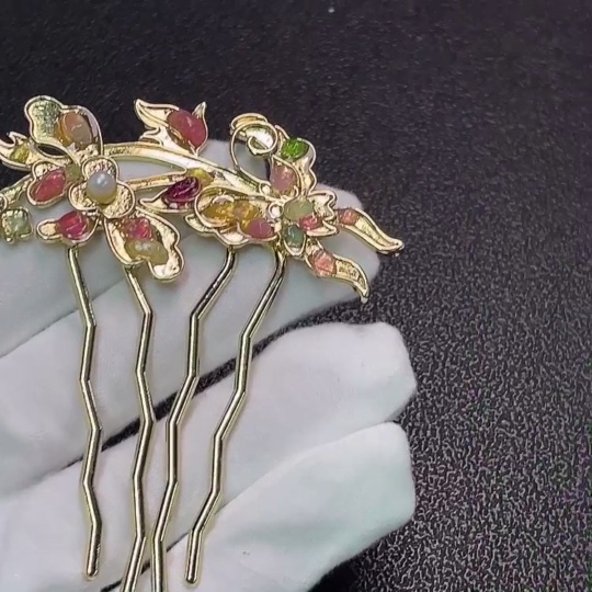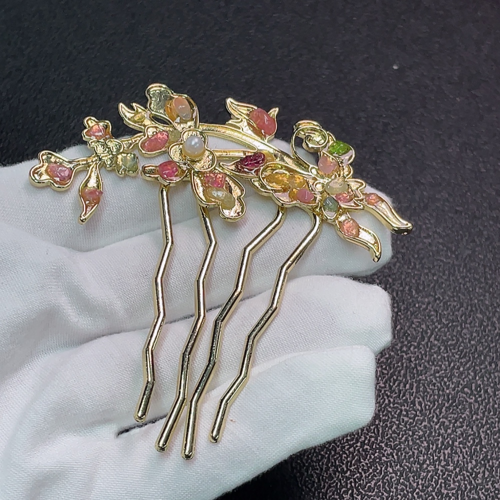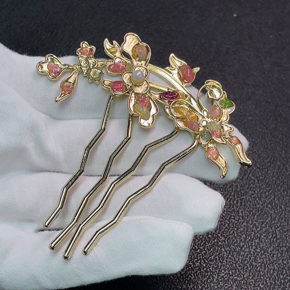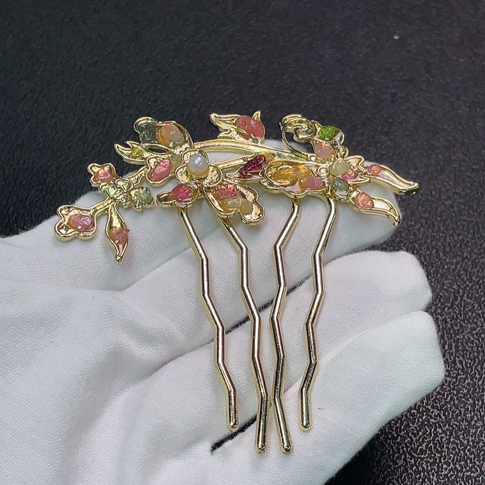 Tourmaline Hairpin (Visible Organic Matter, Consider Non-Natural Accent Stones, Non-Gold, Total Weight Approx. 15.47g)