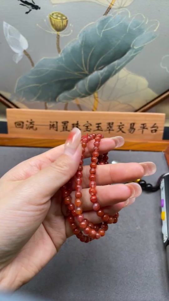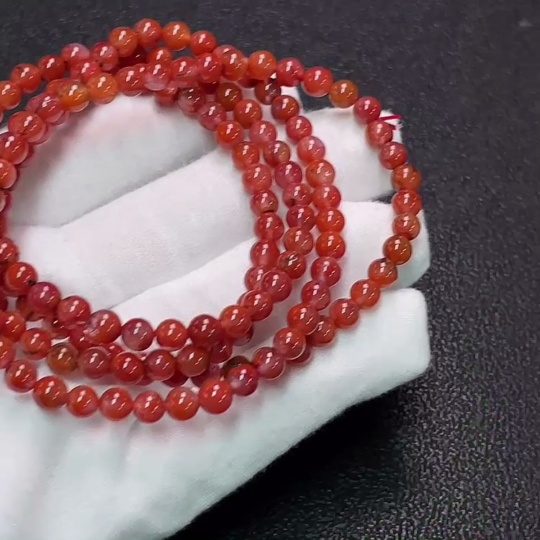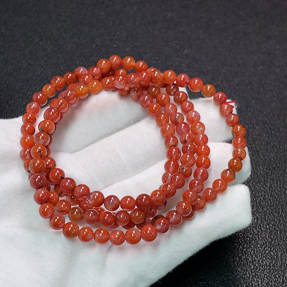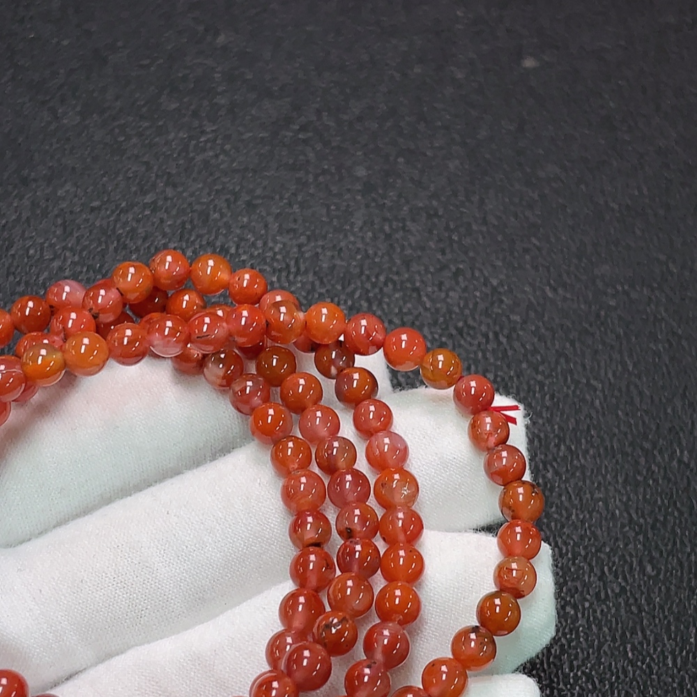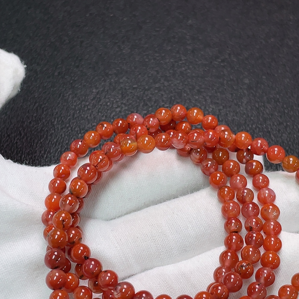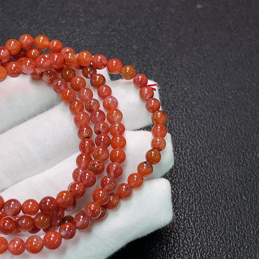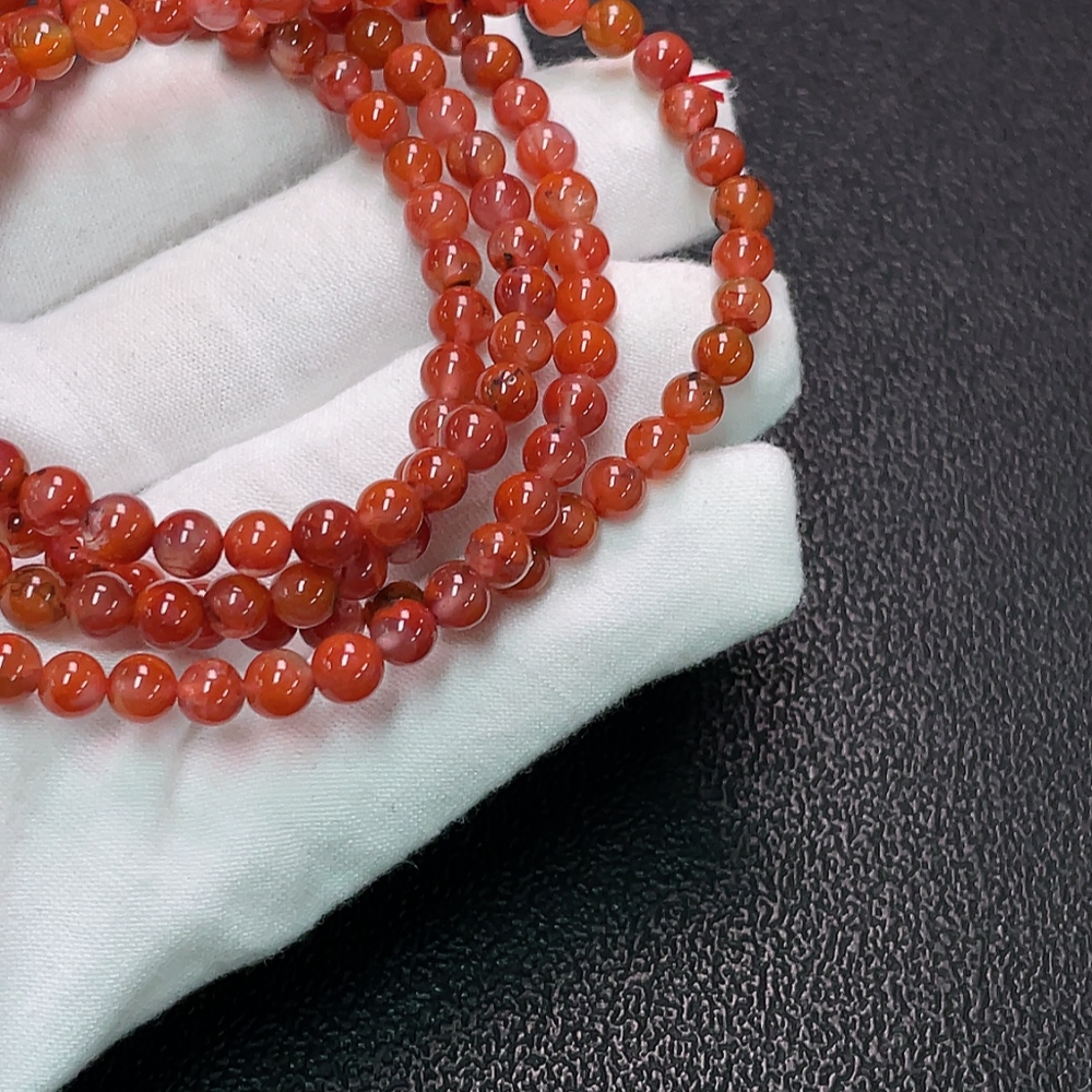 South Red Agate Bead Strand with Visible Organic Matter, Total Weight Approximately 27.93g, Size About 5.2mm