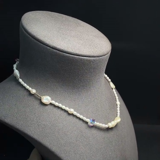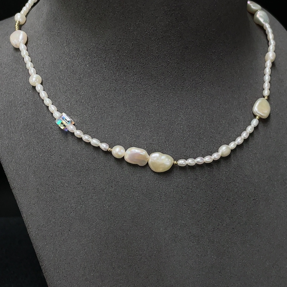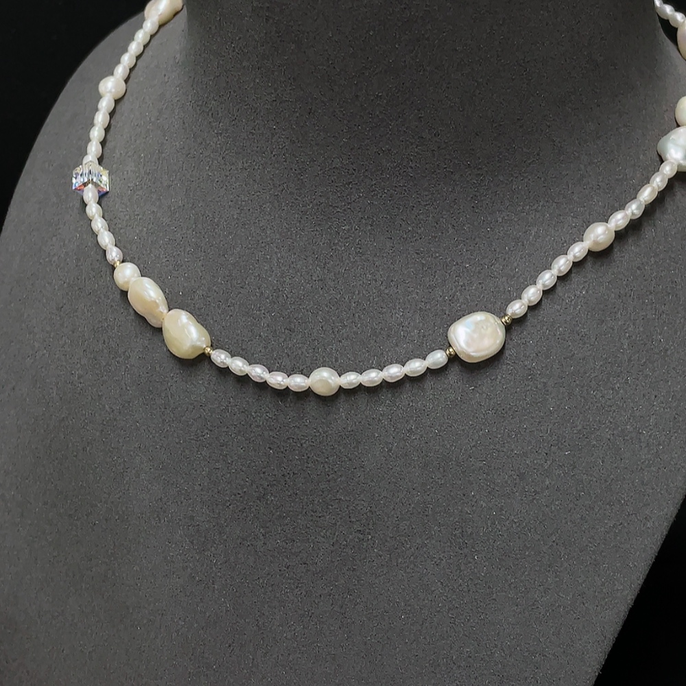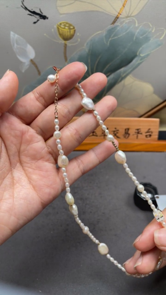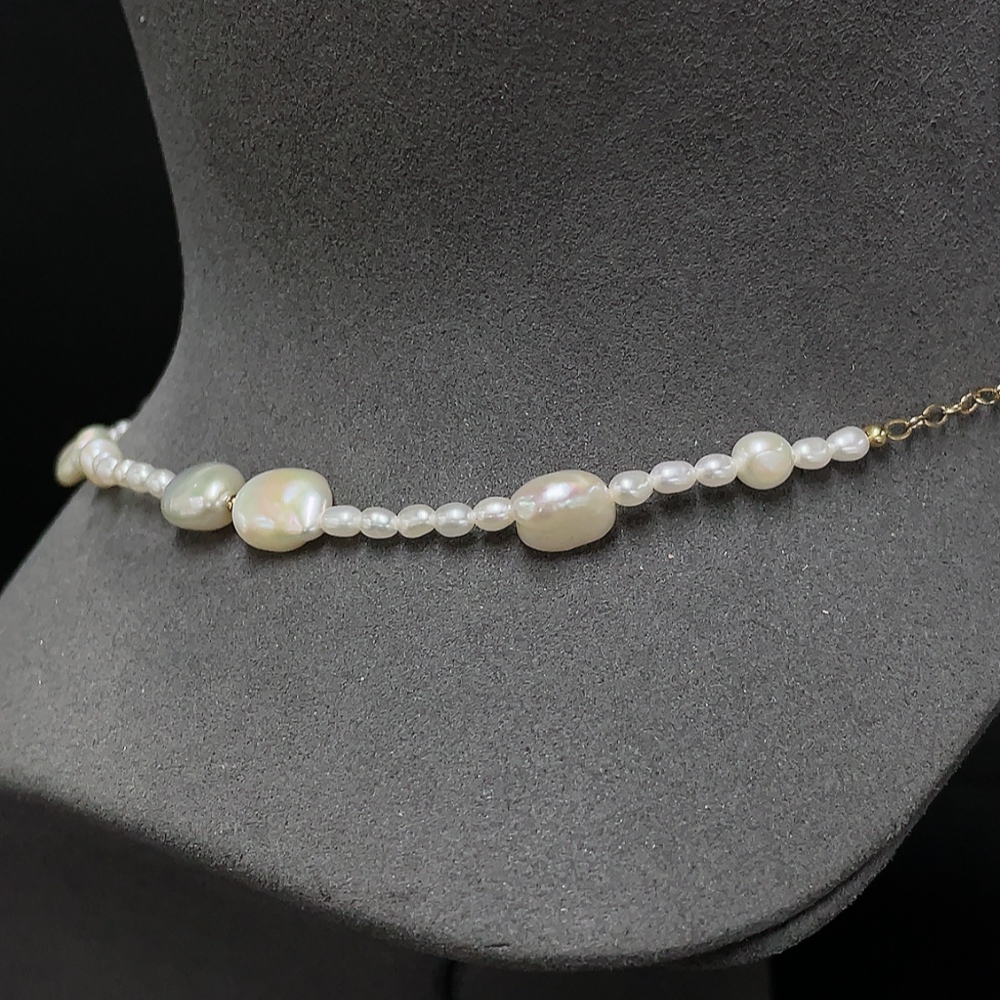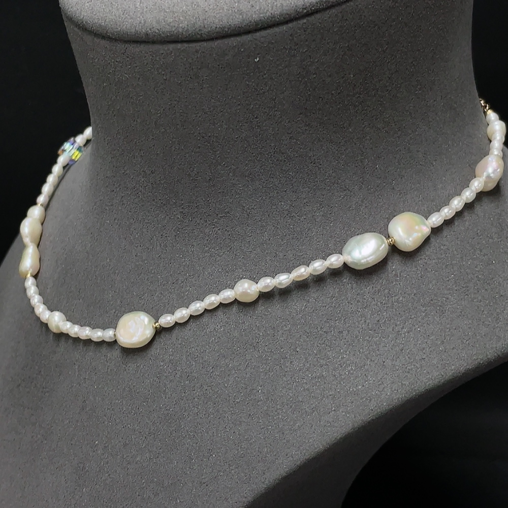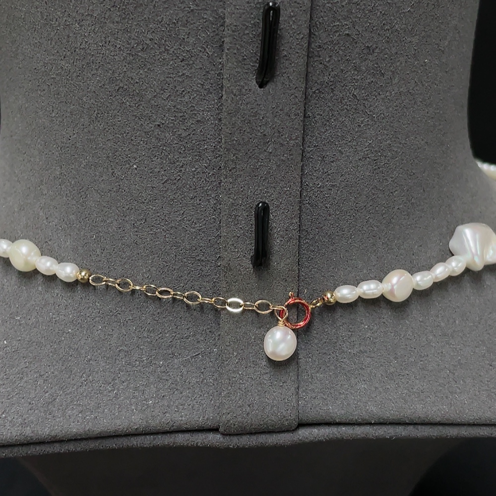 Pearl Necklace No Imprint Gold Content Marked Red Non-Gold Remainder 33% Gold Content String Not Measured Stones Considered Non-Natural Total Weight Approx. 11.57g Size 3-8.5mm