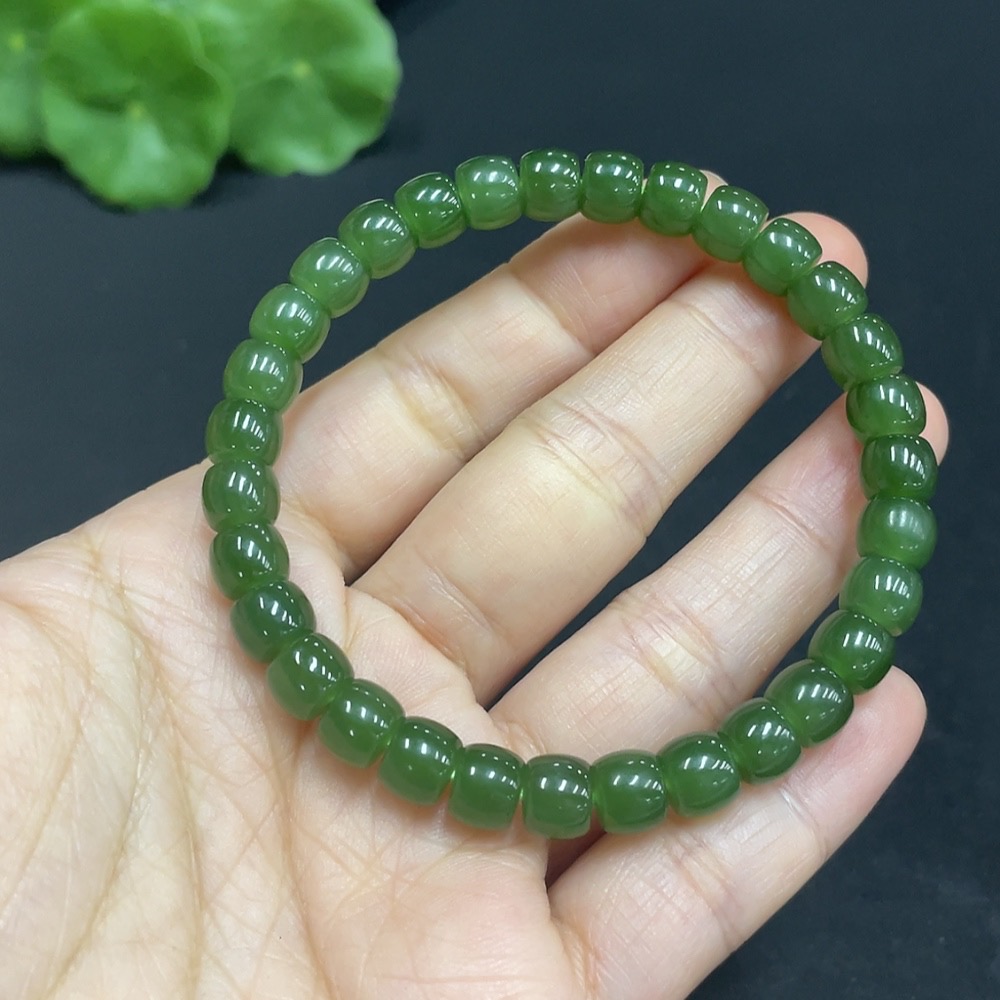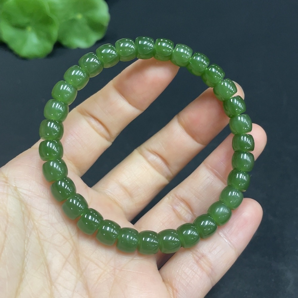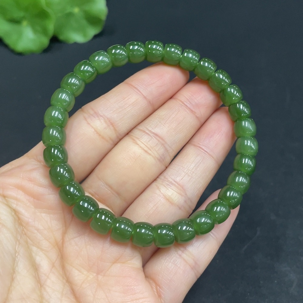 Hetian Jade Jasper Bracelet, approx. 6.9mm beads, total weight about 17.3g