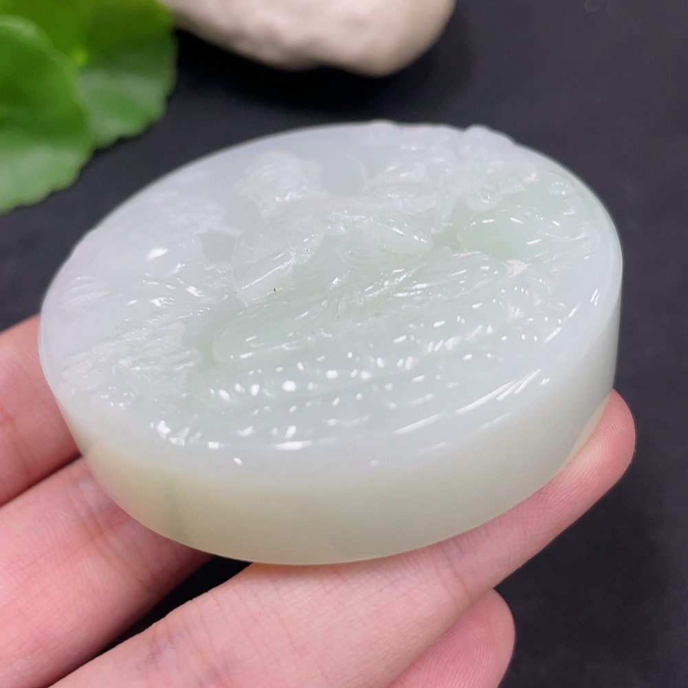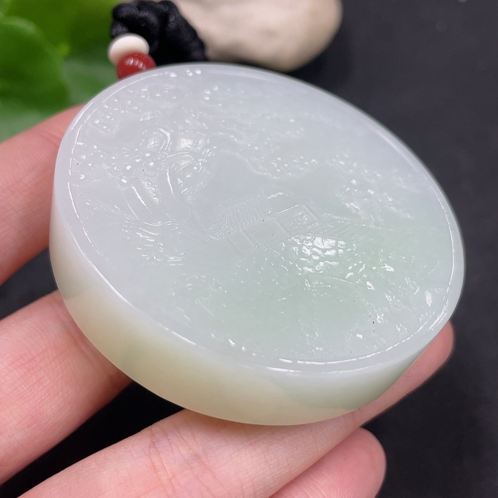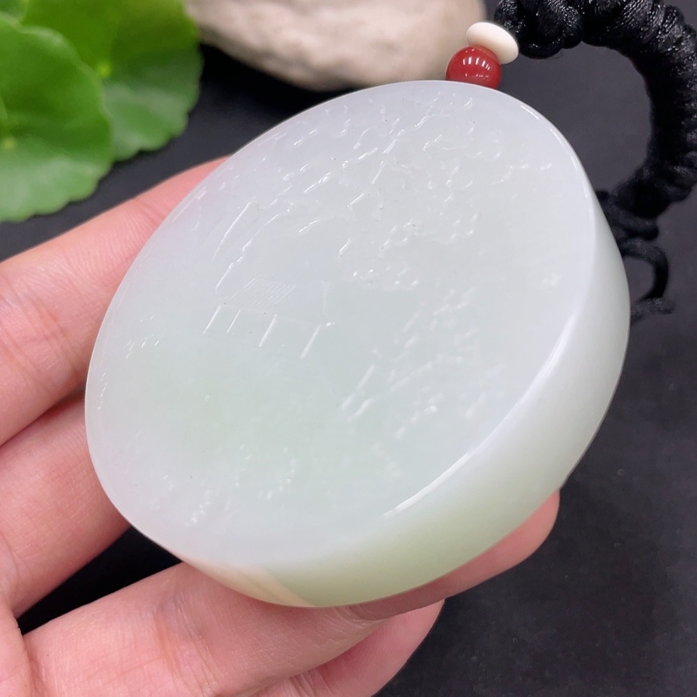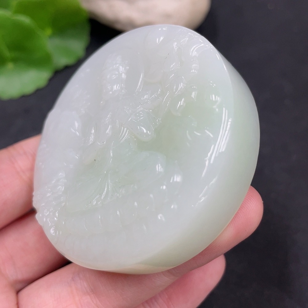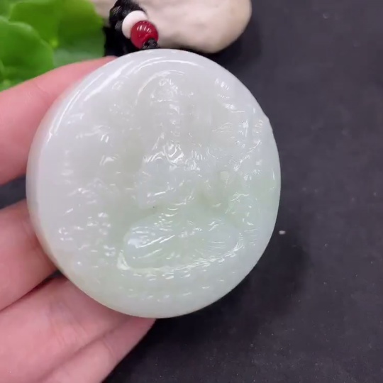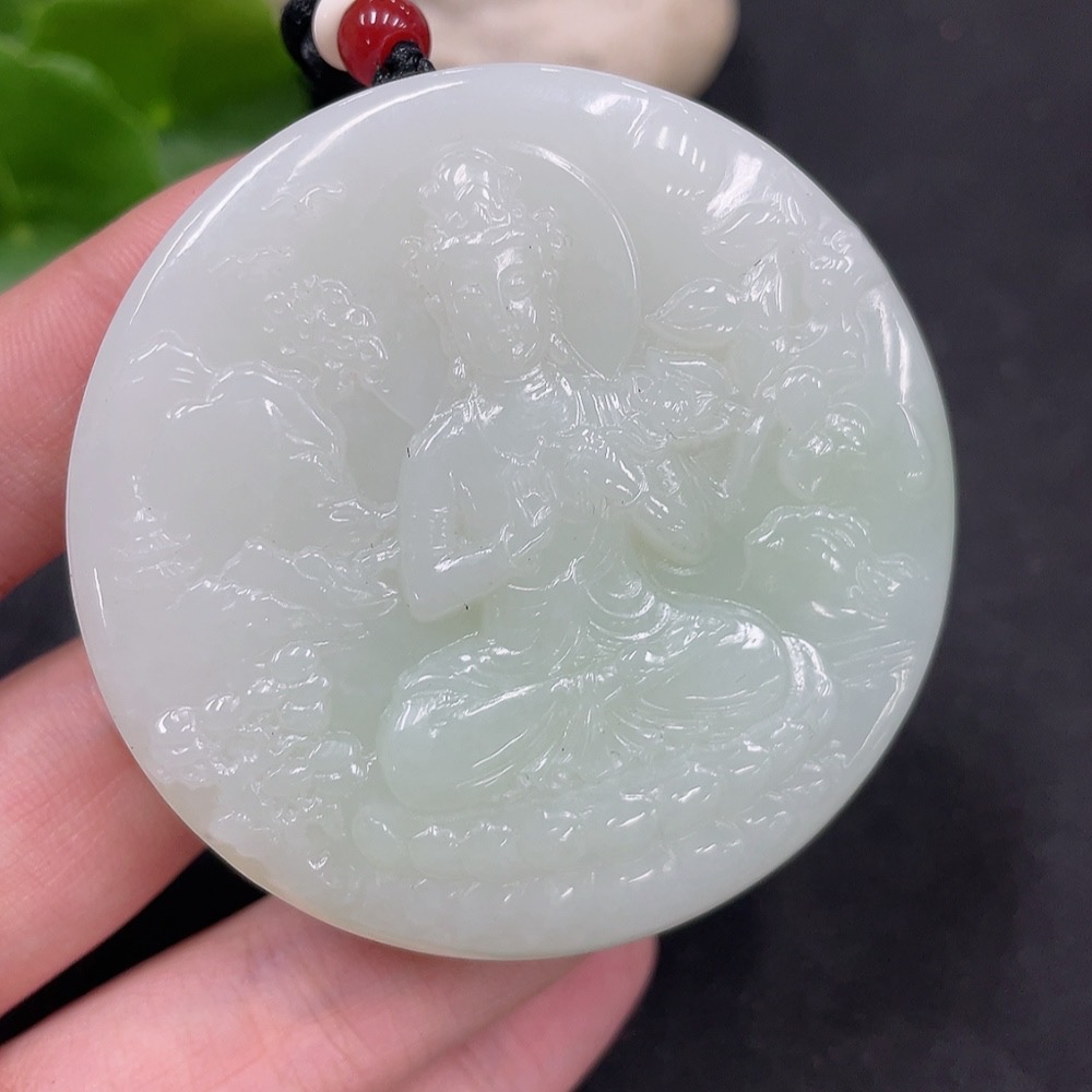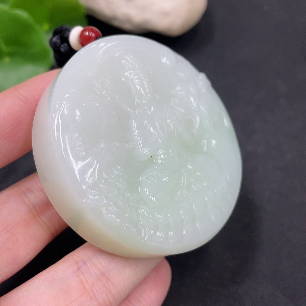 Hetian Jade Handheld Carving - Guanyin with Non-Hetian Jade Beads, Total Weight (Including Cord): 109.5g