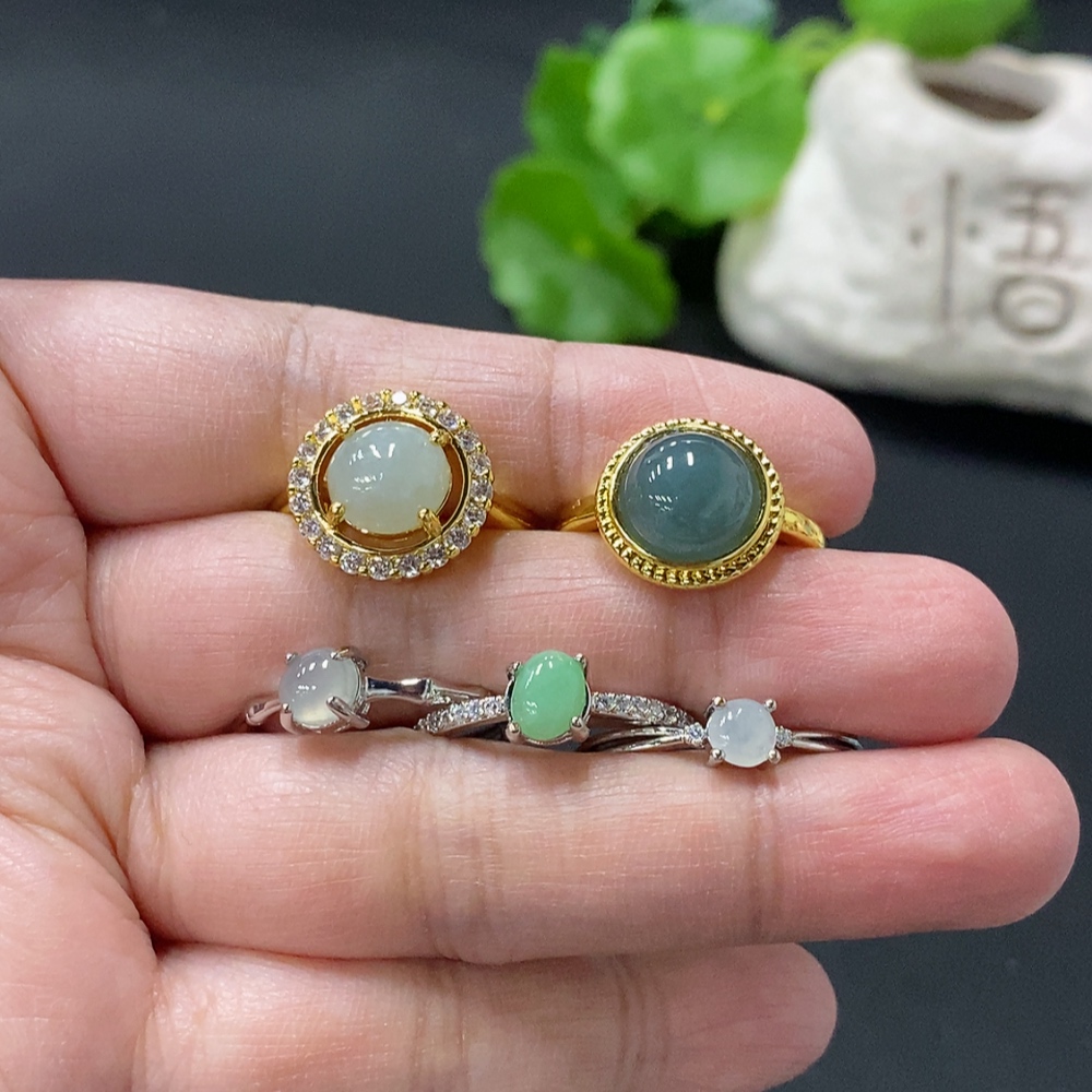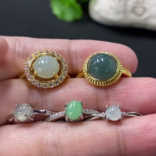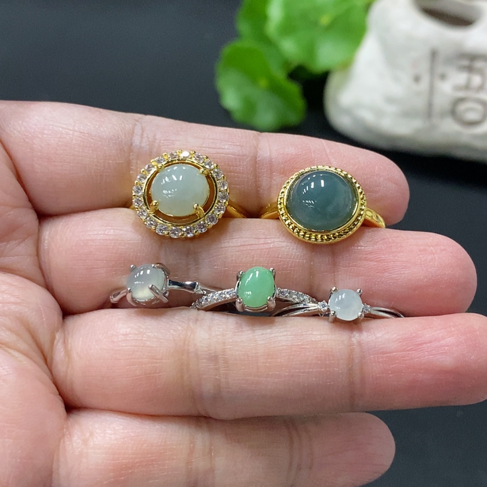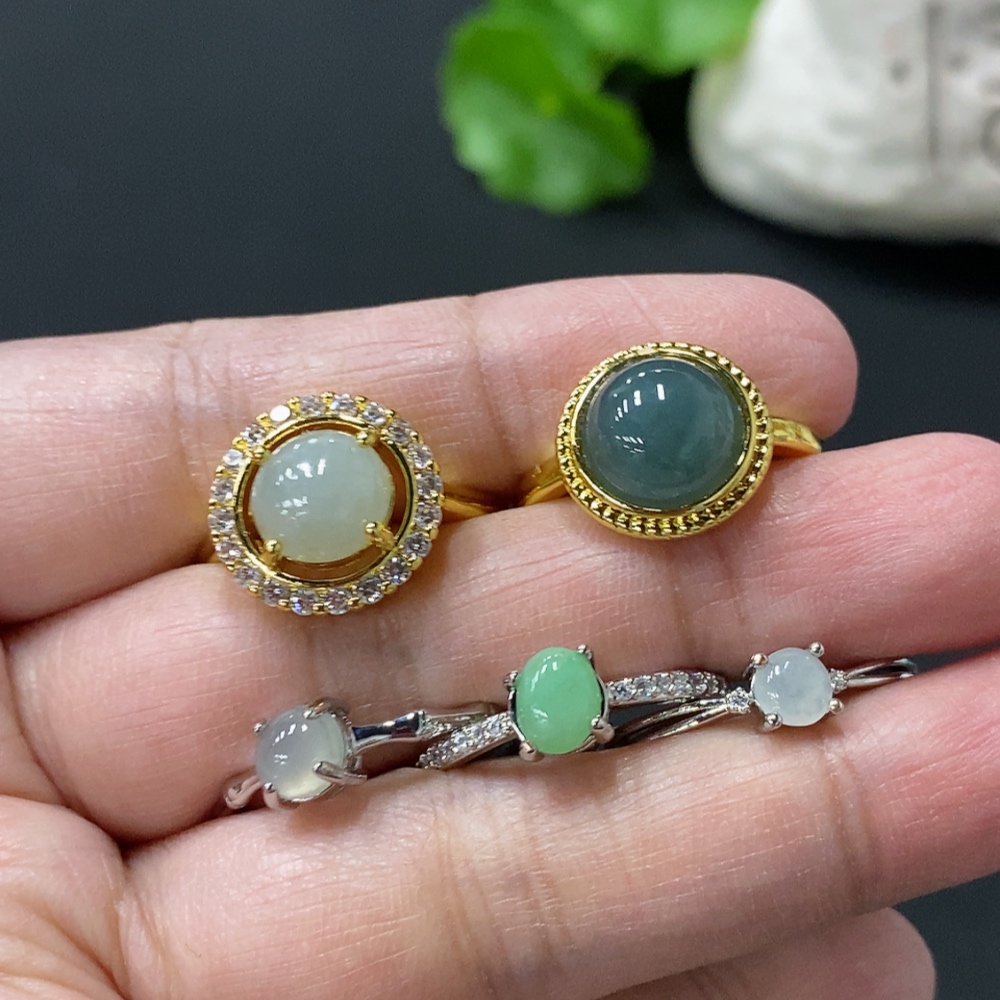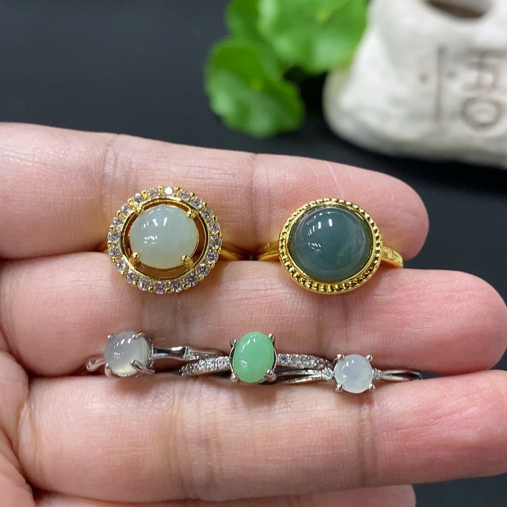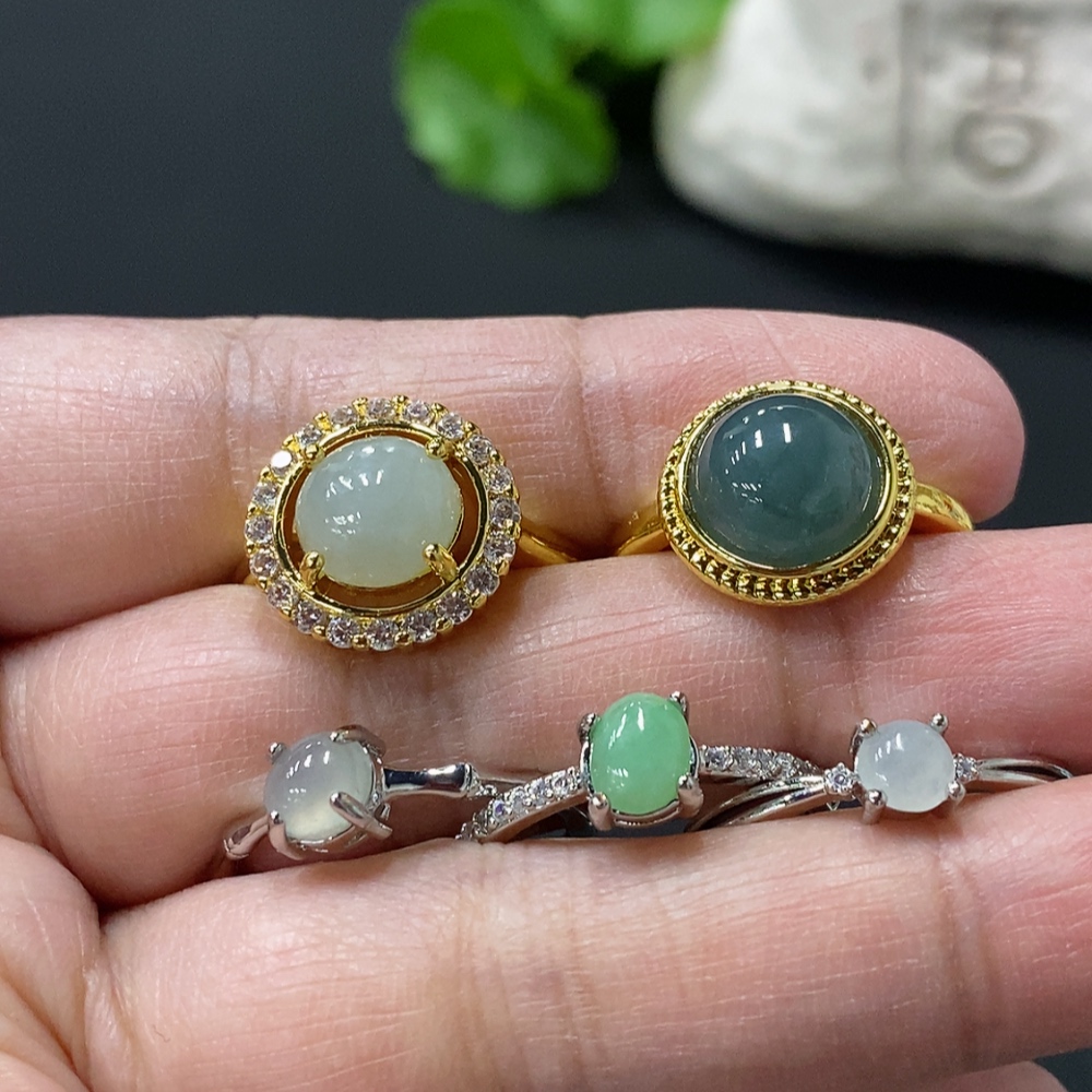 Jadeite Cabochon Inlaid Ring Non-Gold Inlaid Adjustable Size