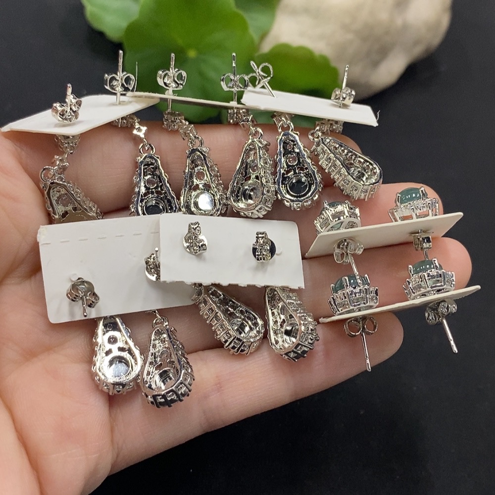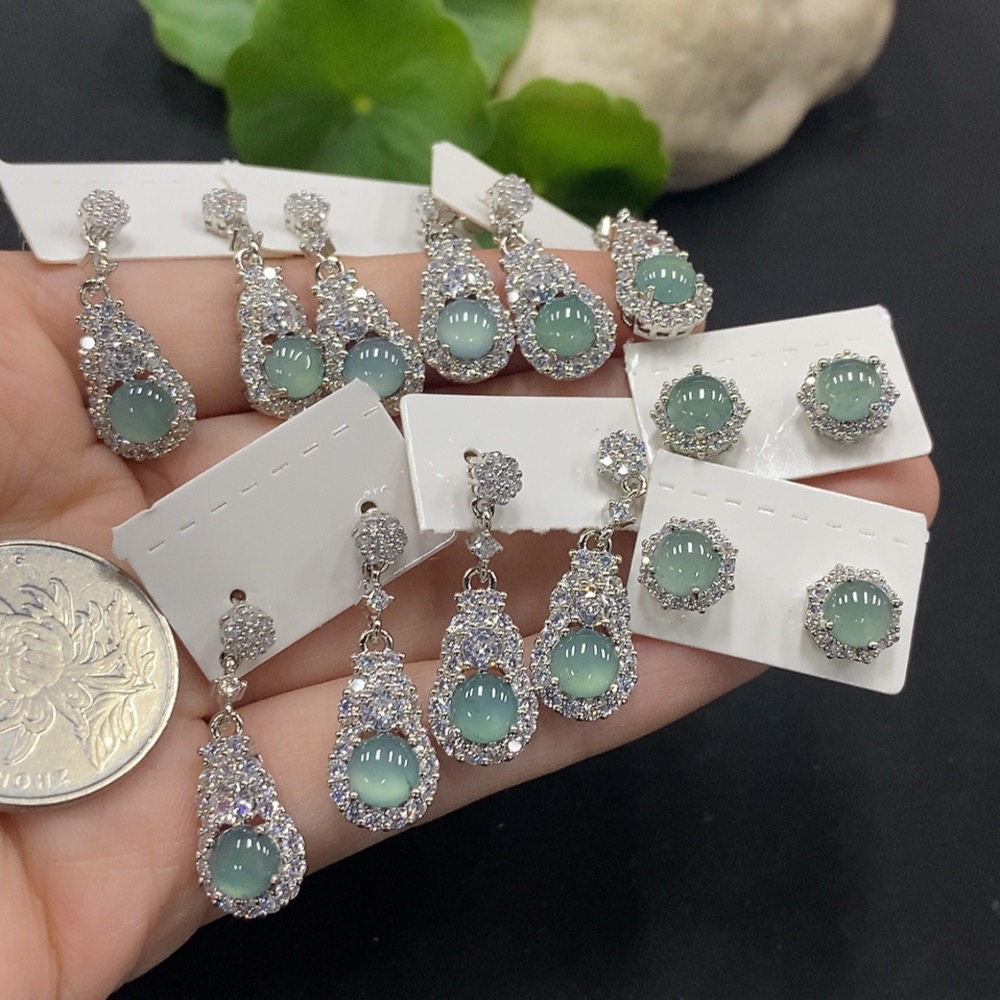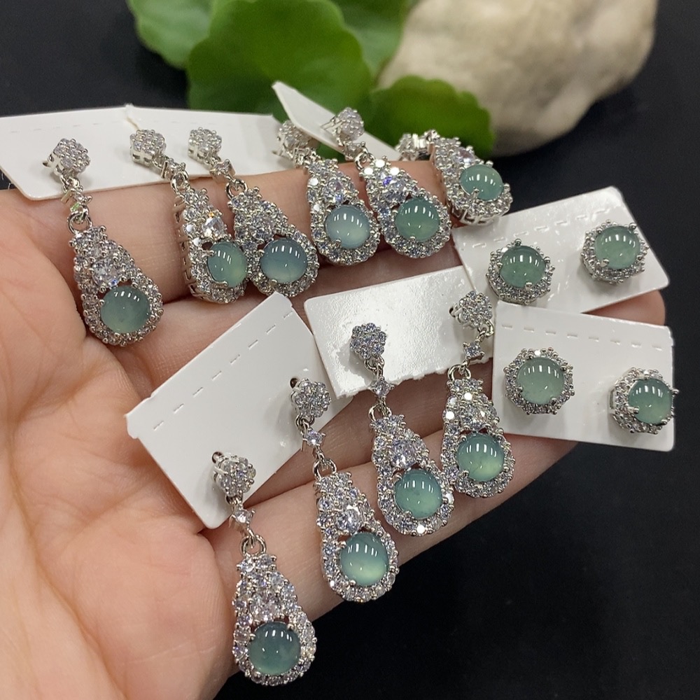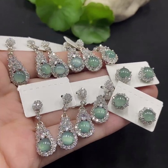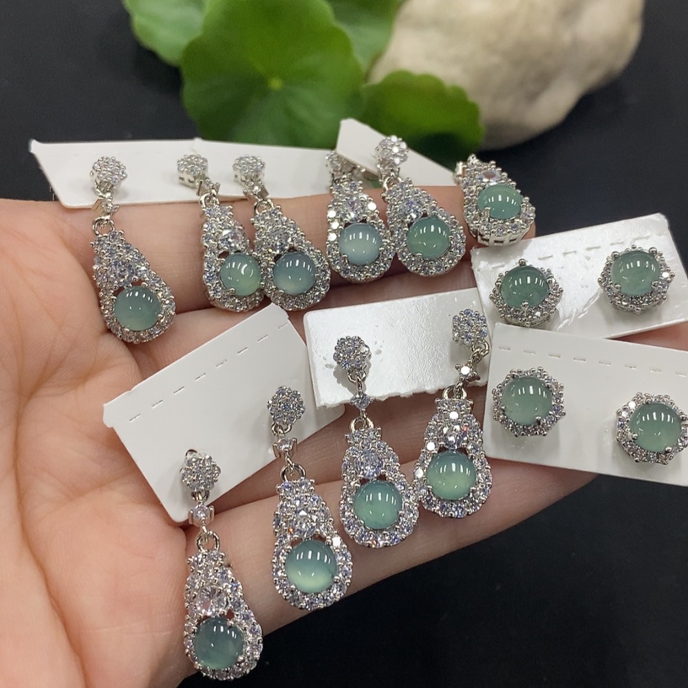 Jadeite Cabochon Inlaid Earrings Non-Gold Inlaid Sell as a Lot