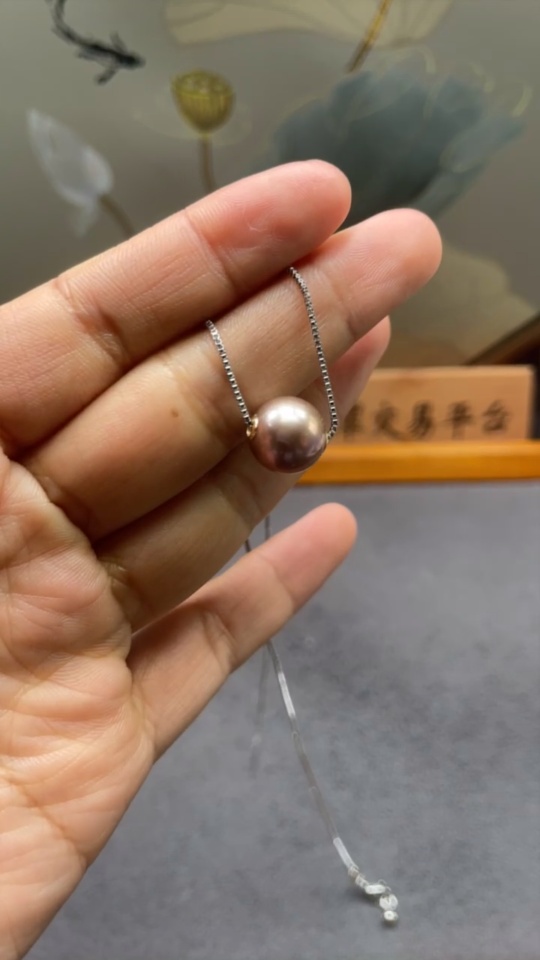 Pearl Pendant with Non-Gold Chain, Pendant 60% Gold Content, Total Weight Approx. 3.67g Including Chain, Card Size About 10.4mm