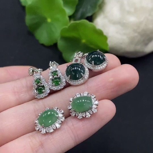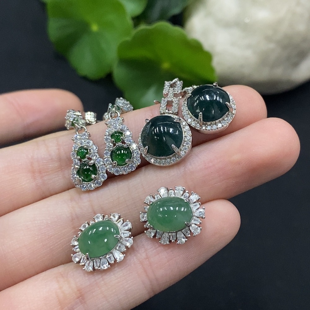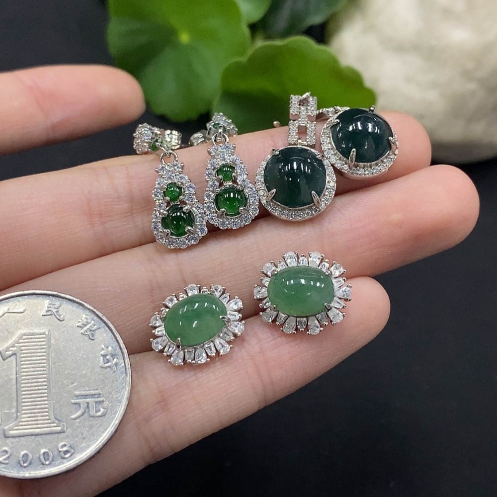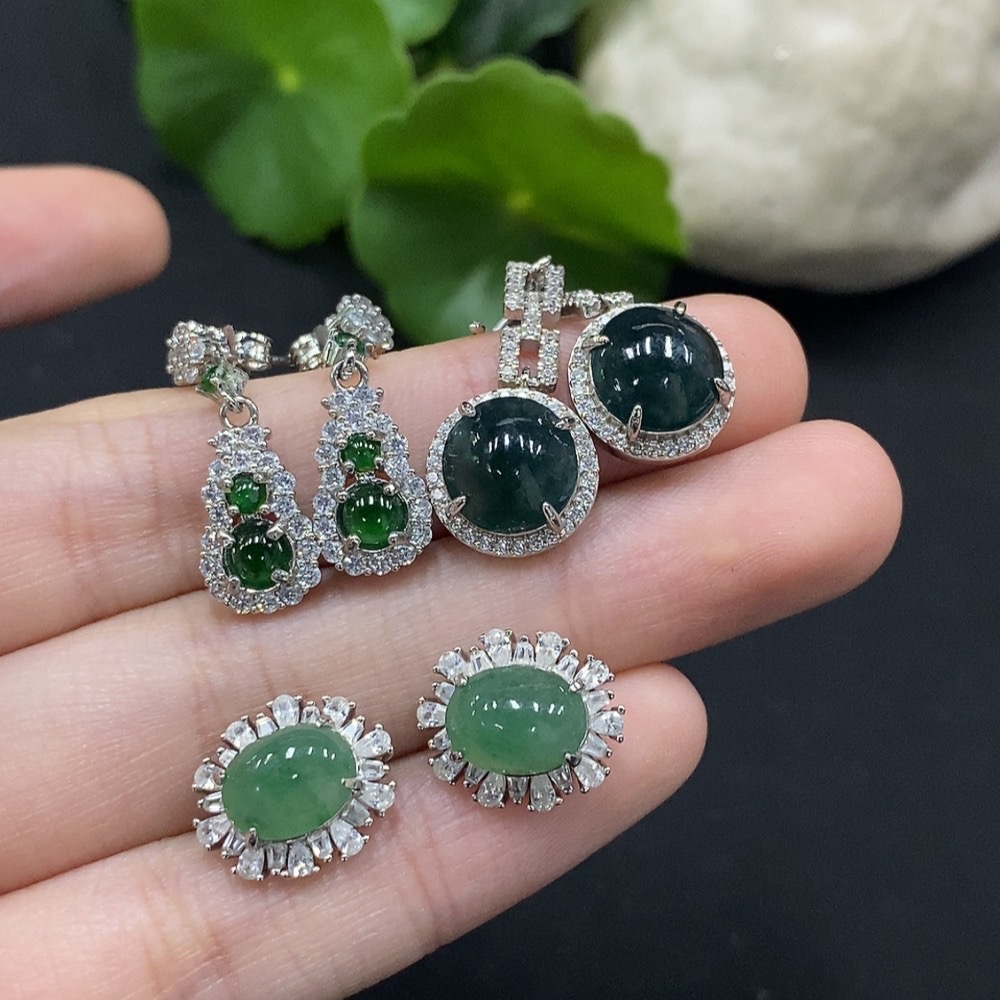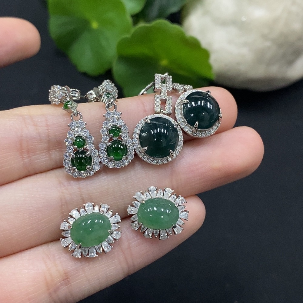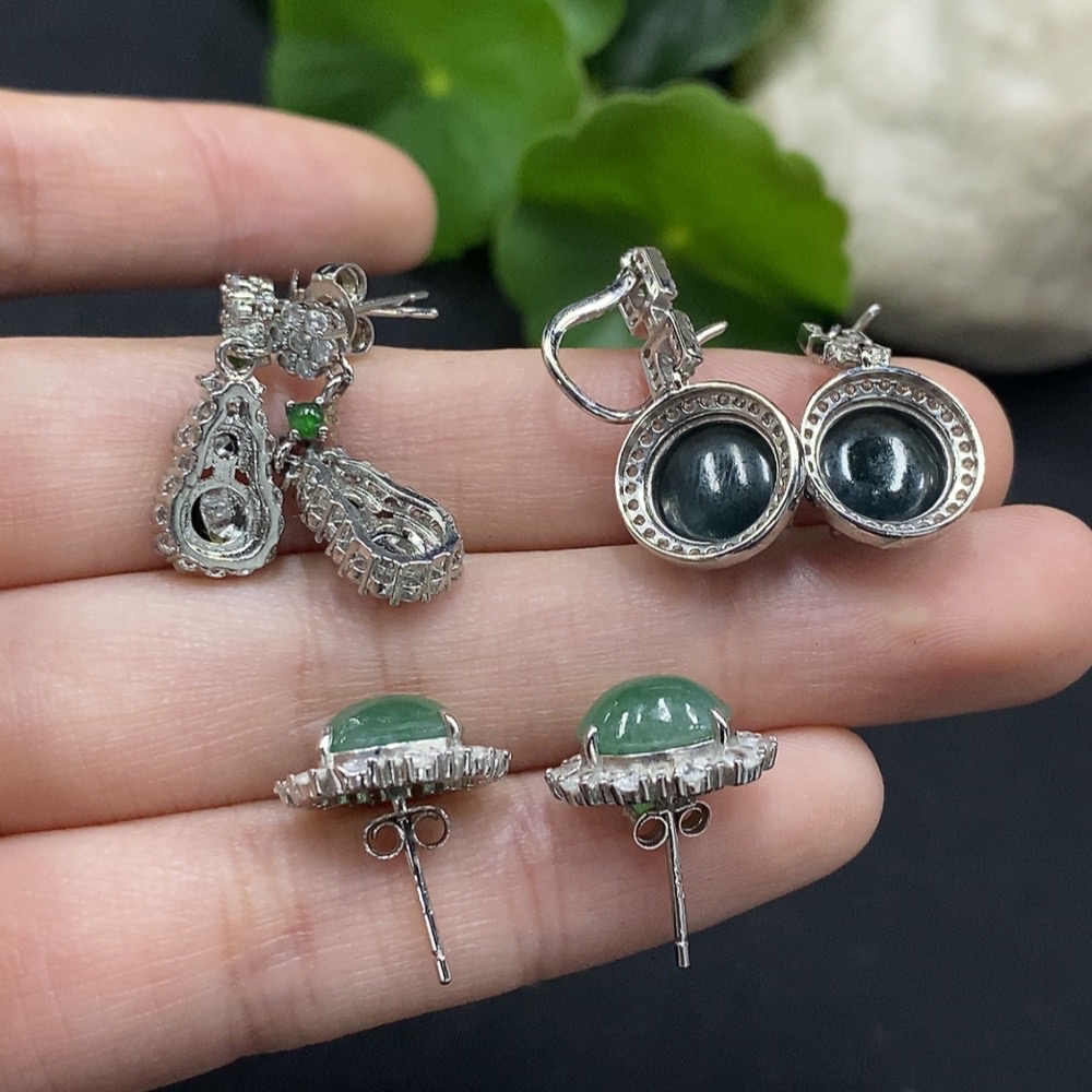 Jadeite cabochon inlaid earrings non-gold inlaid