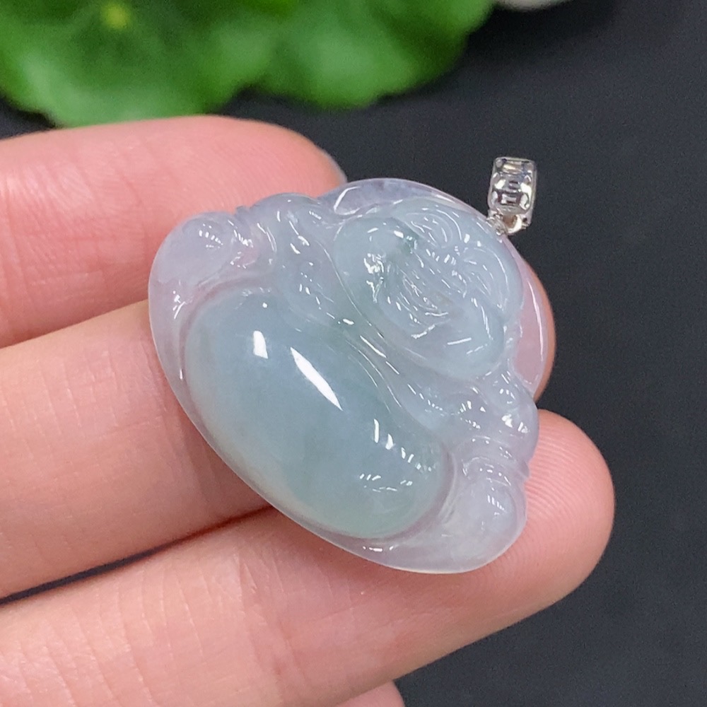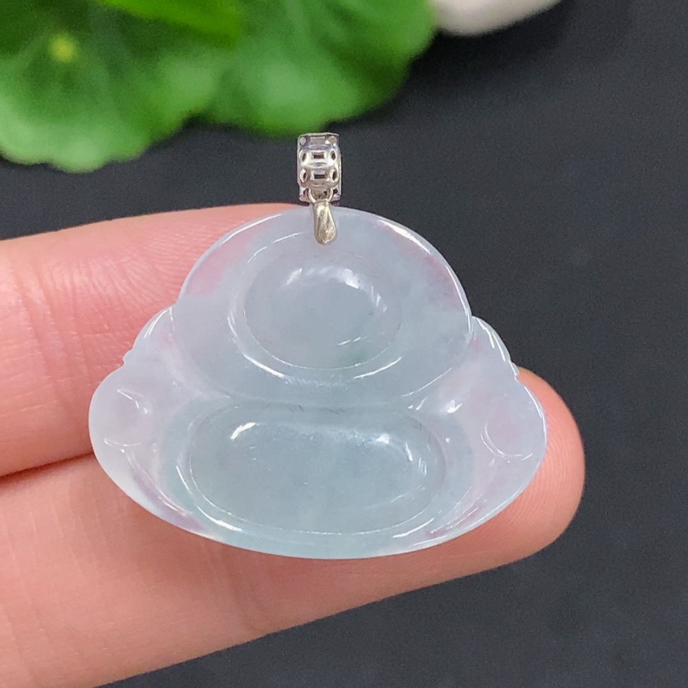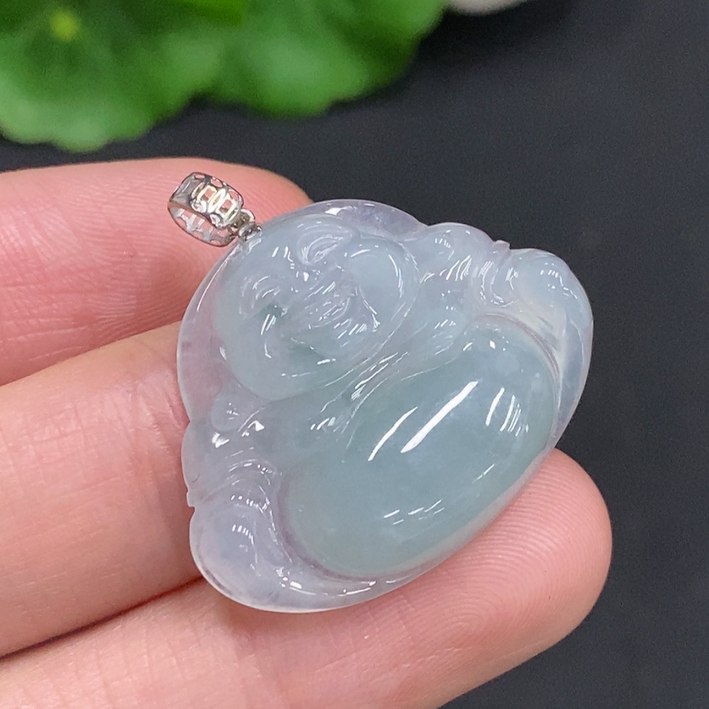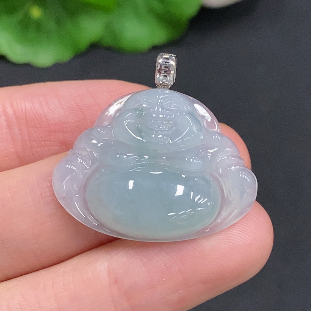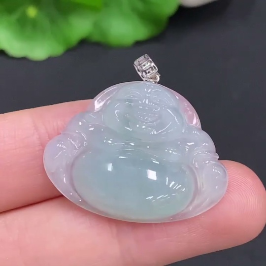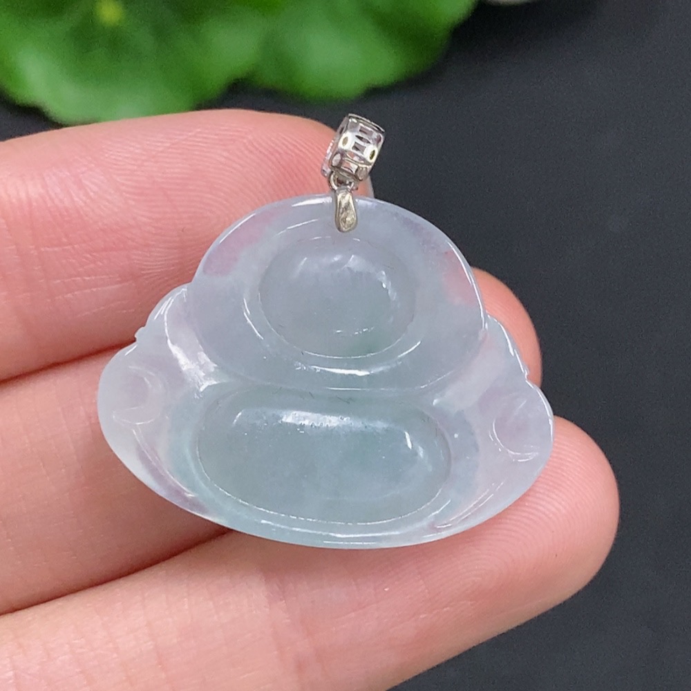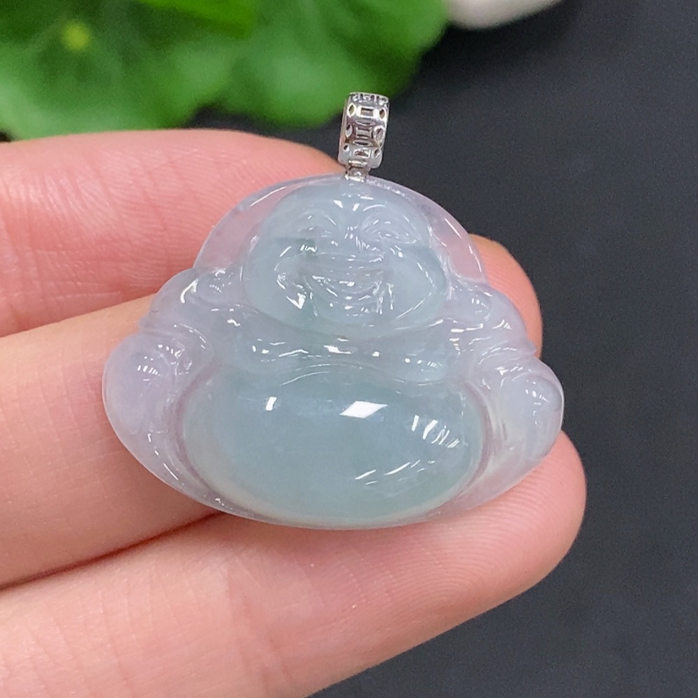 Jadeite Buddha Pendant with 18K Gold Clasp, Total Weight Approximately 5.7g
