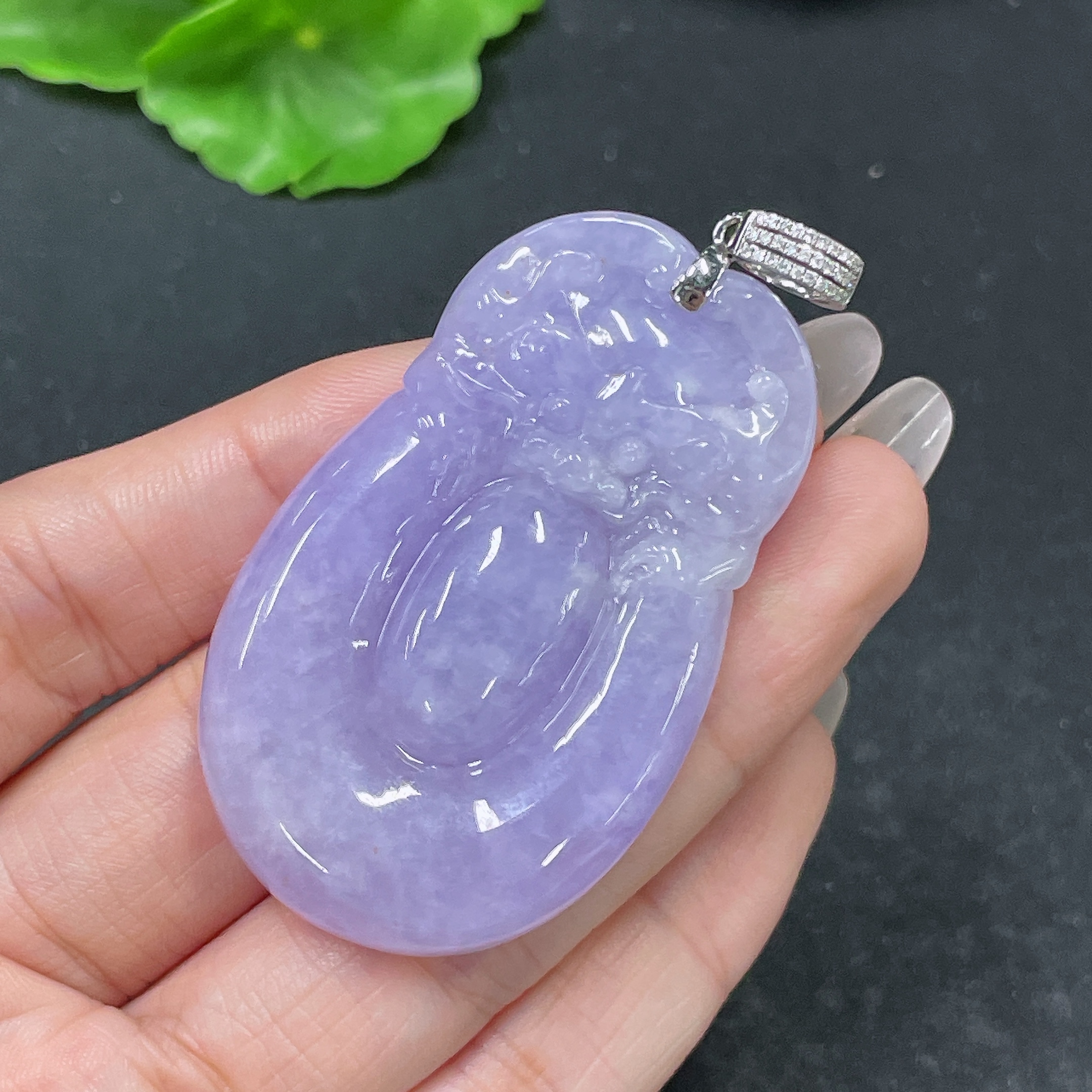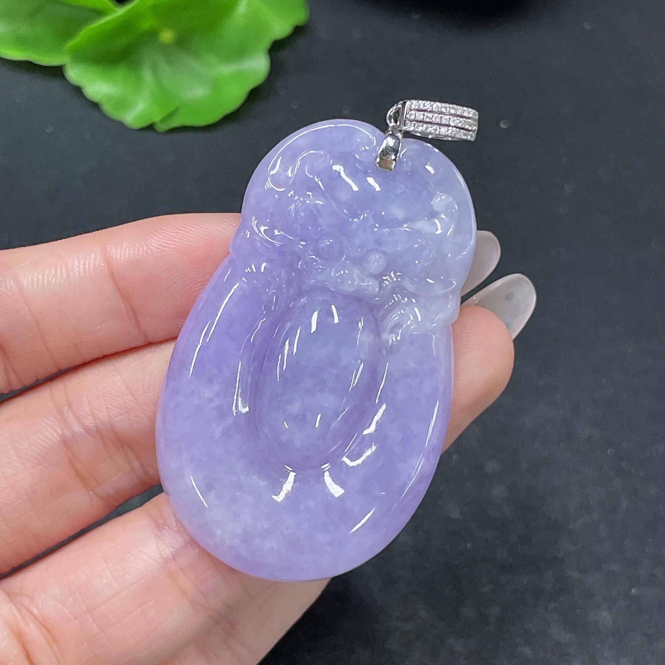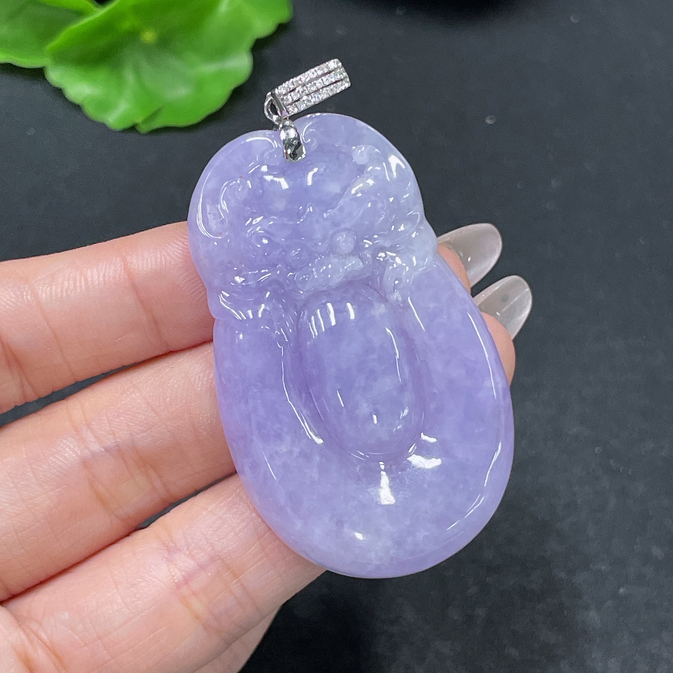 Jadeite Auspicious Shell Pendant with 18K Gold and Diamond Accents, Total Weight Approximately 27.15 Grams