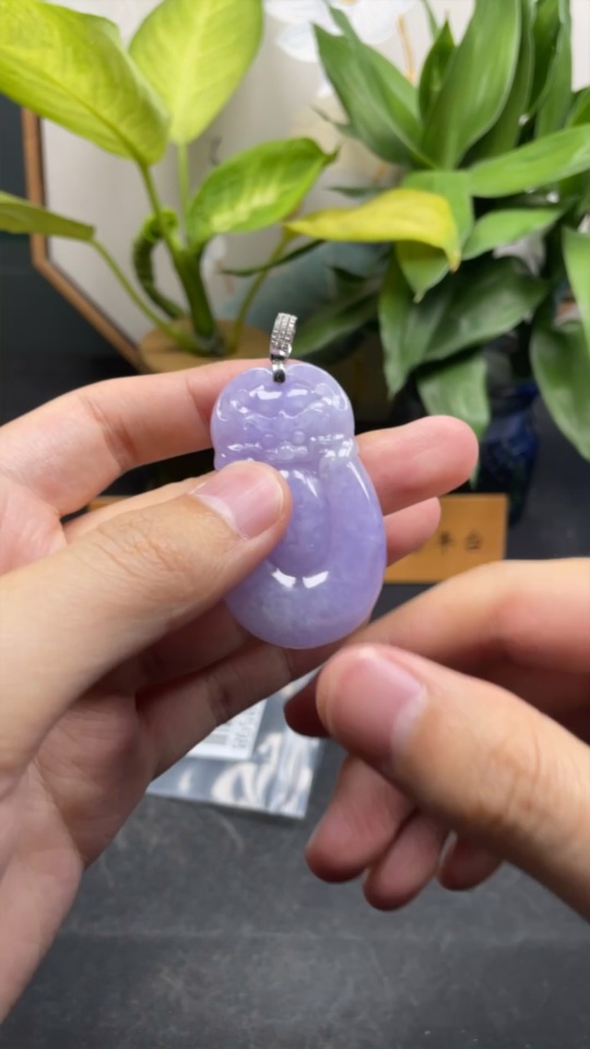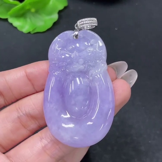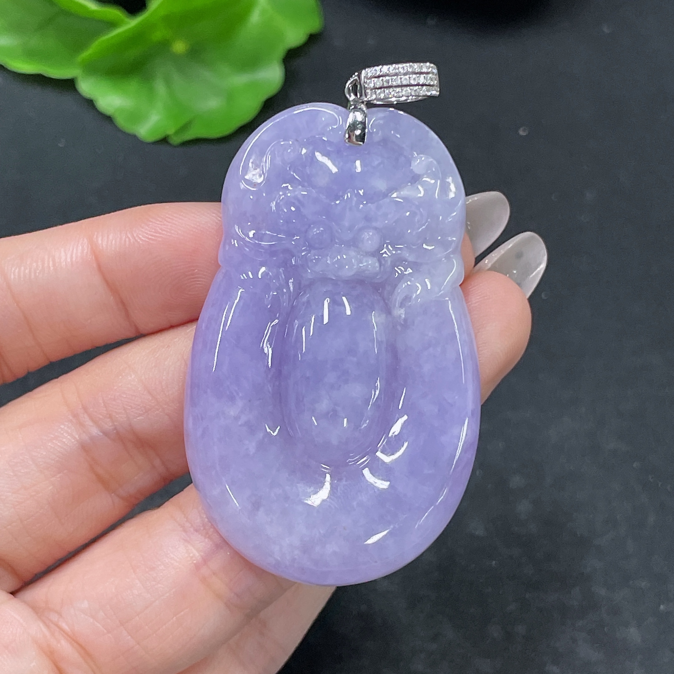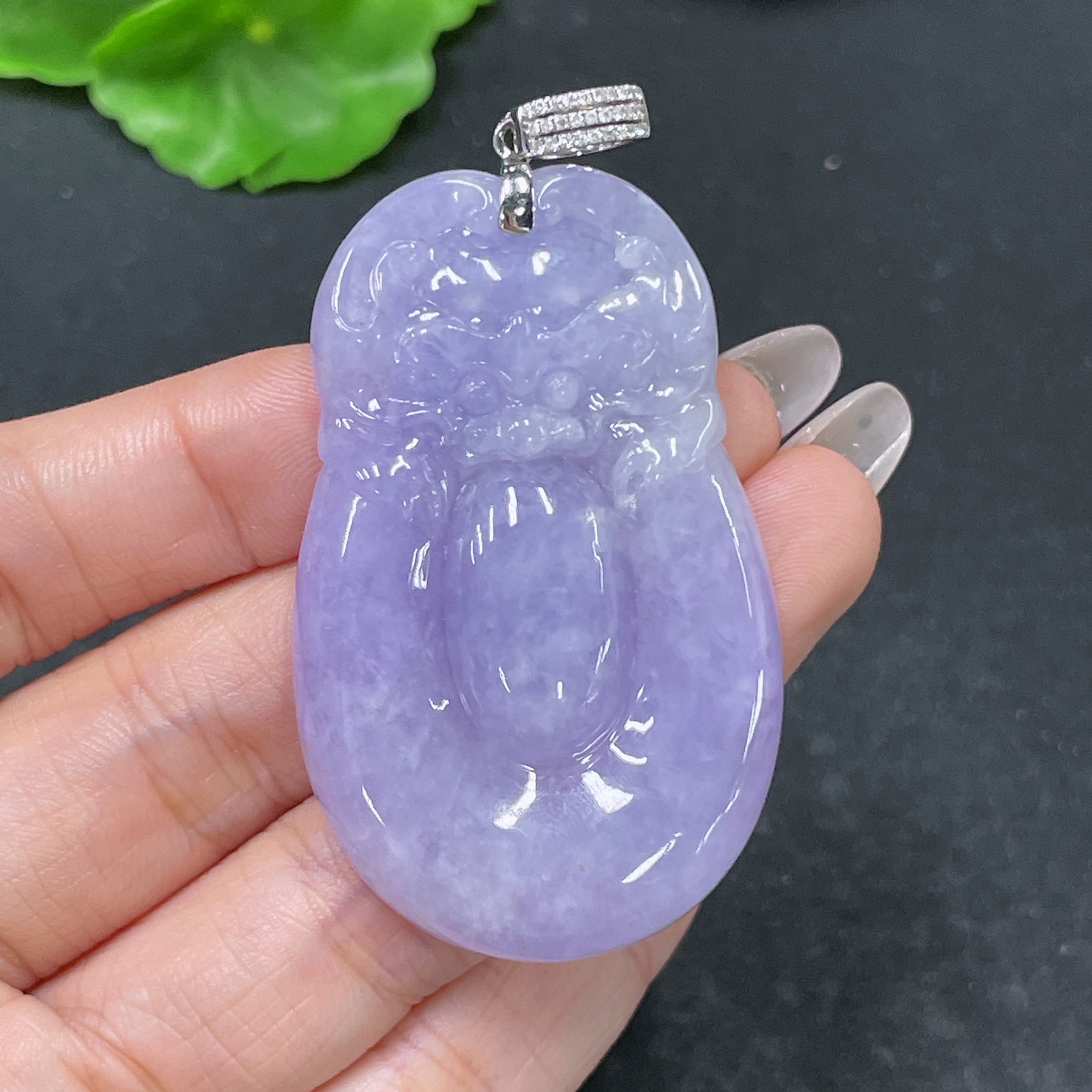 Jadeite Auspicious Shell Pendant with 18K Gold and Diamond Accents, Total Weight Approximately 27.15 Grams