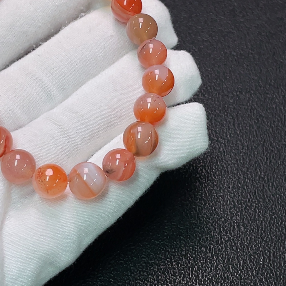 South Red Agate Bracelet with Visible Organic Matter, Total Weight Approx. 22.36g, Size About 9mm