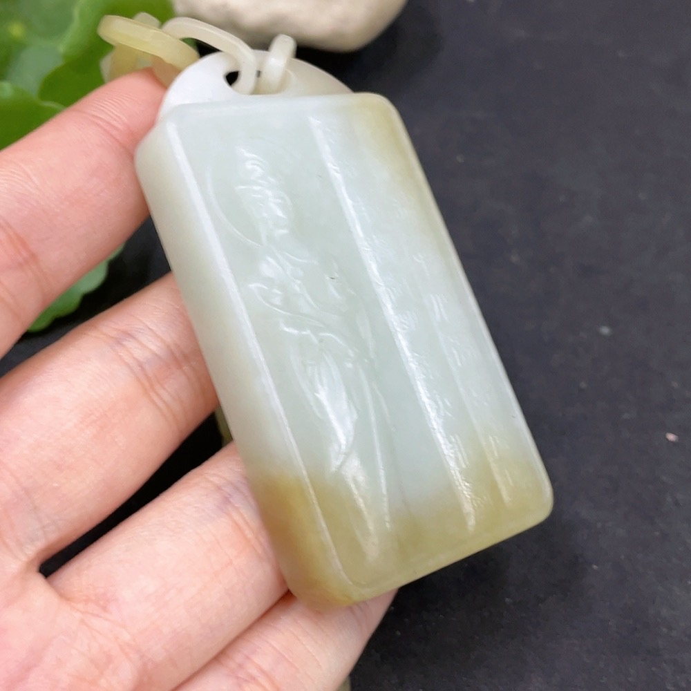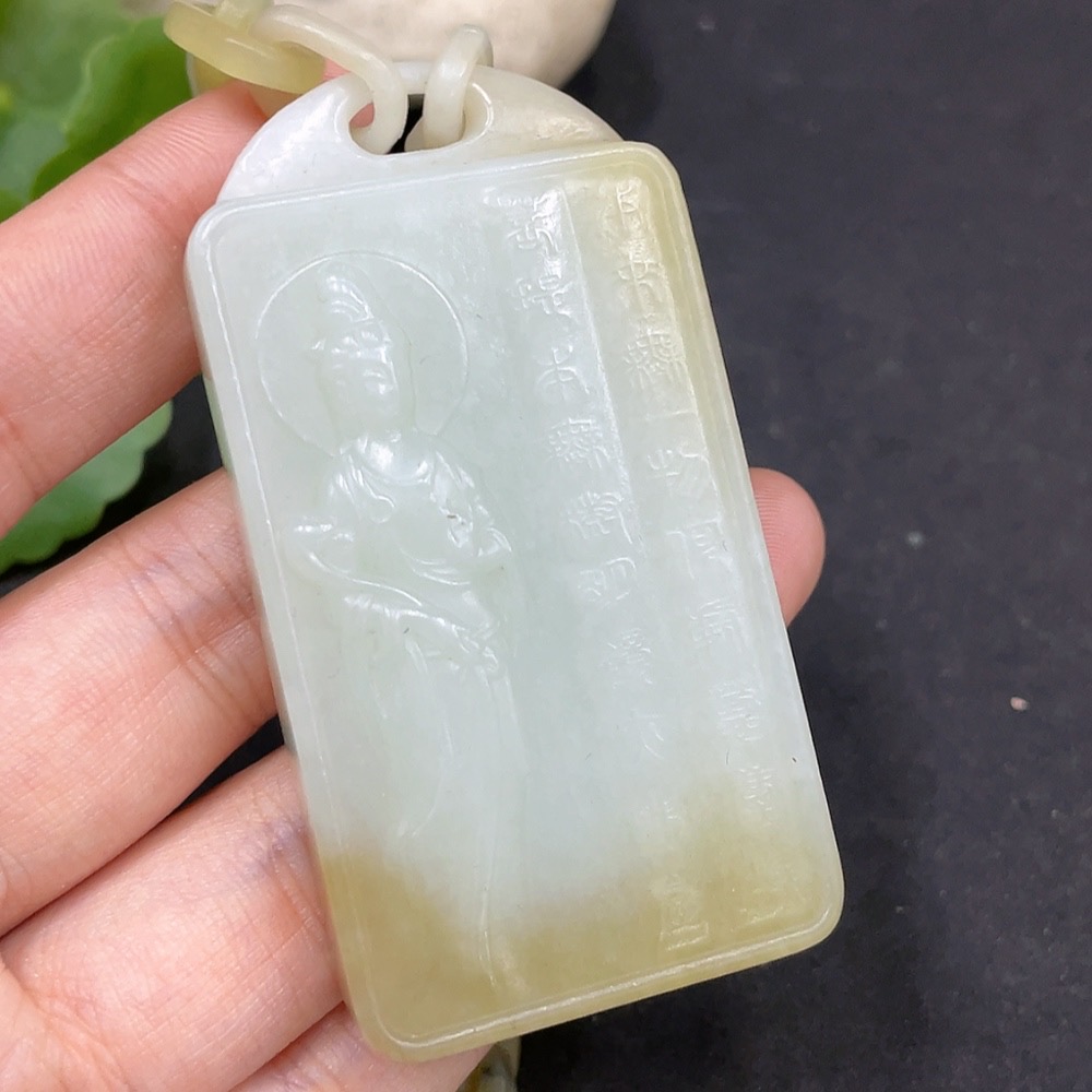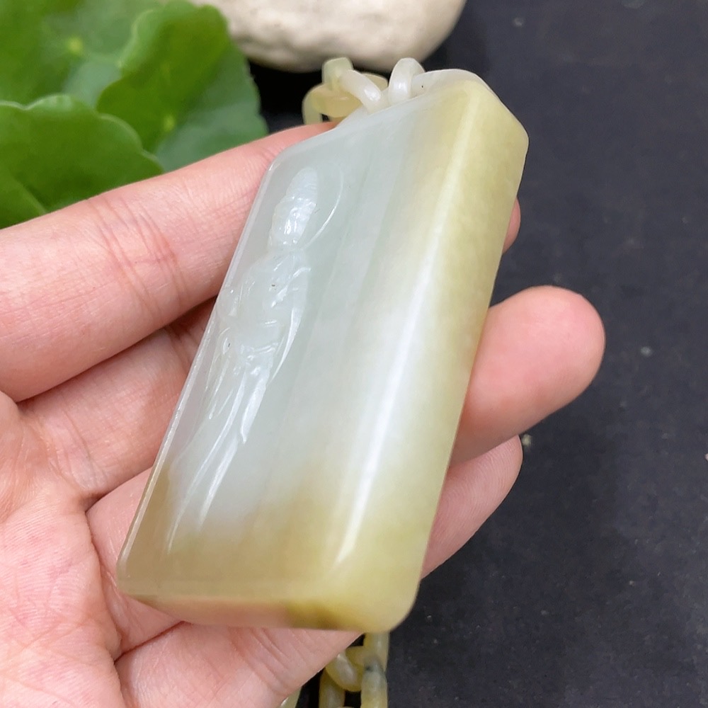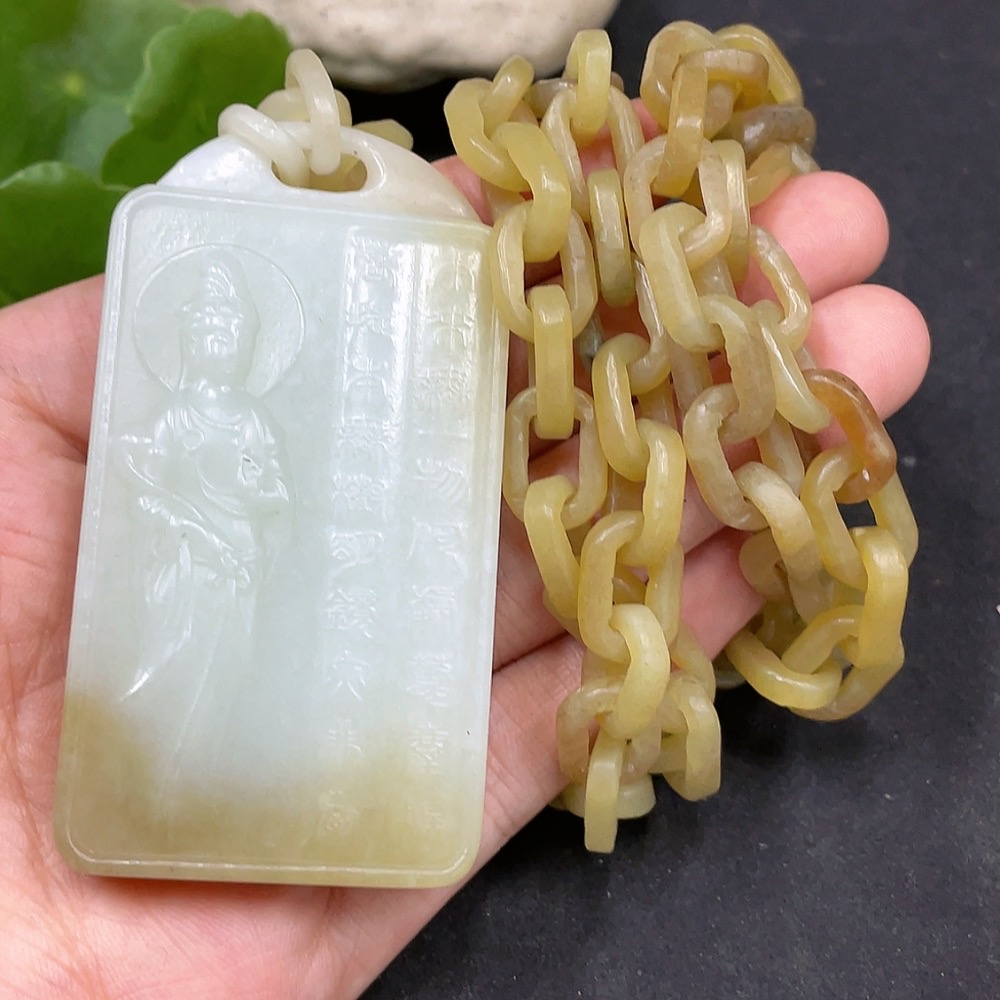 Hetian Jade Pendant Guanyin Bonding Craft Total Weight (Including Chain) Approx. 108.5g