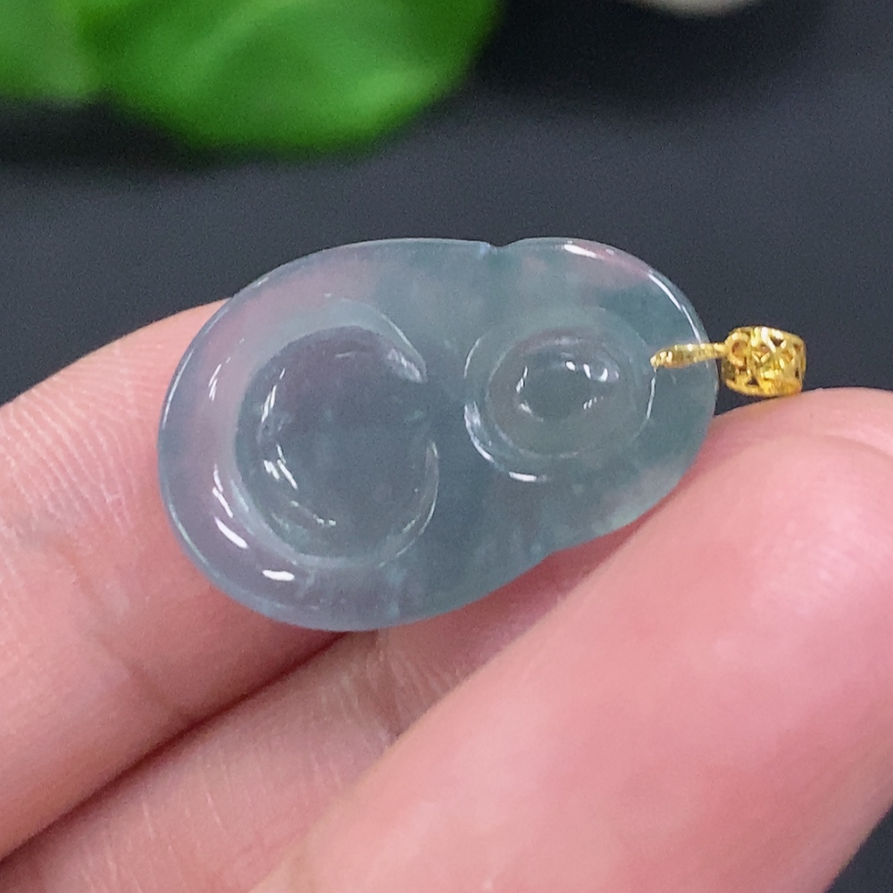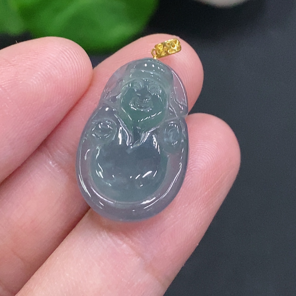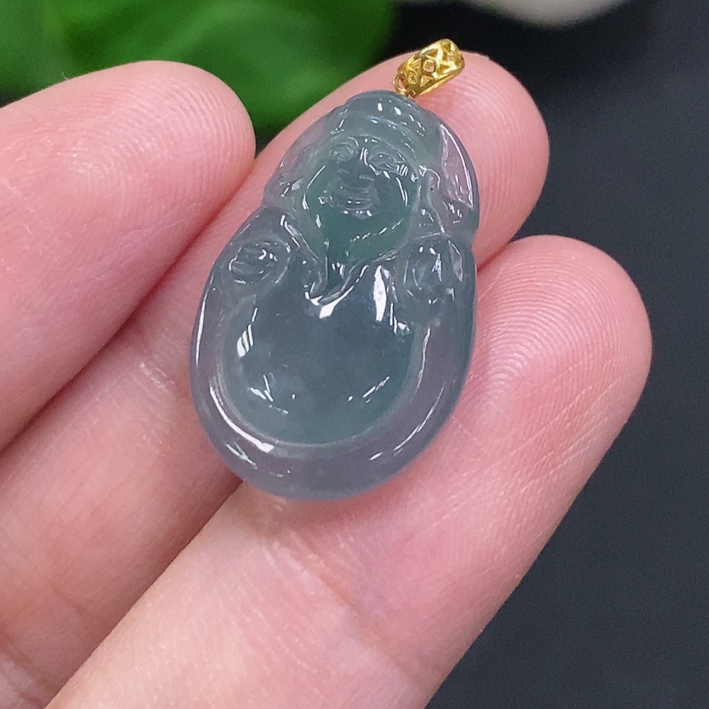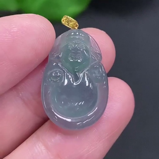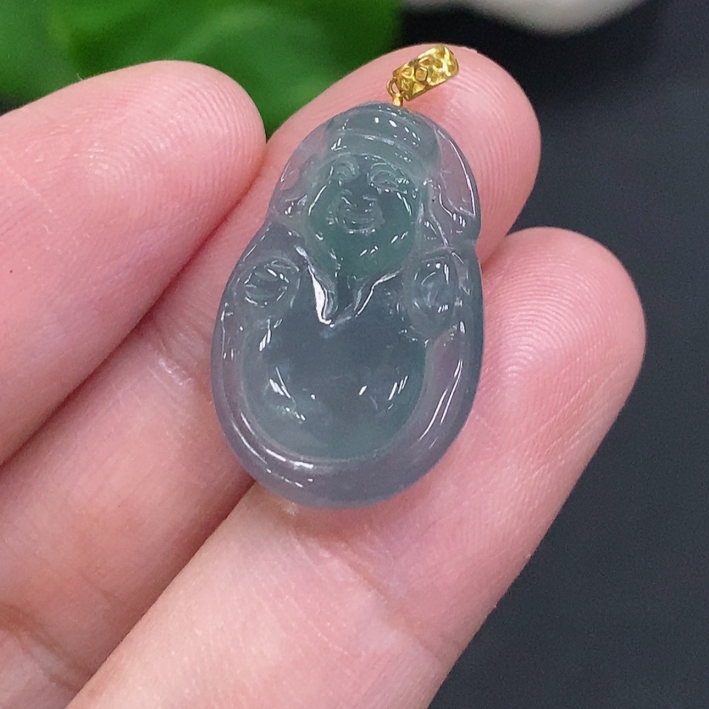 Jadeite God of Wealth Pendant with 18K Gold Clasp, Total Weight Approx. 2.4g