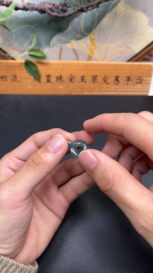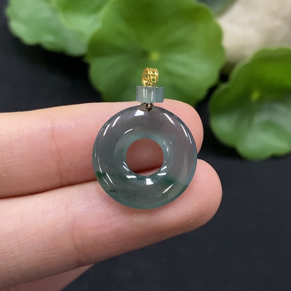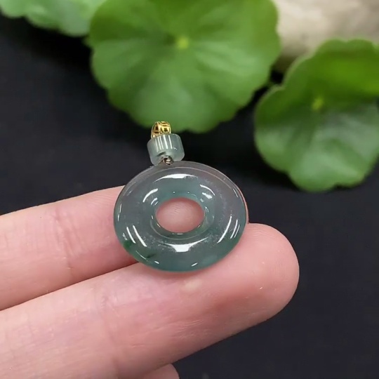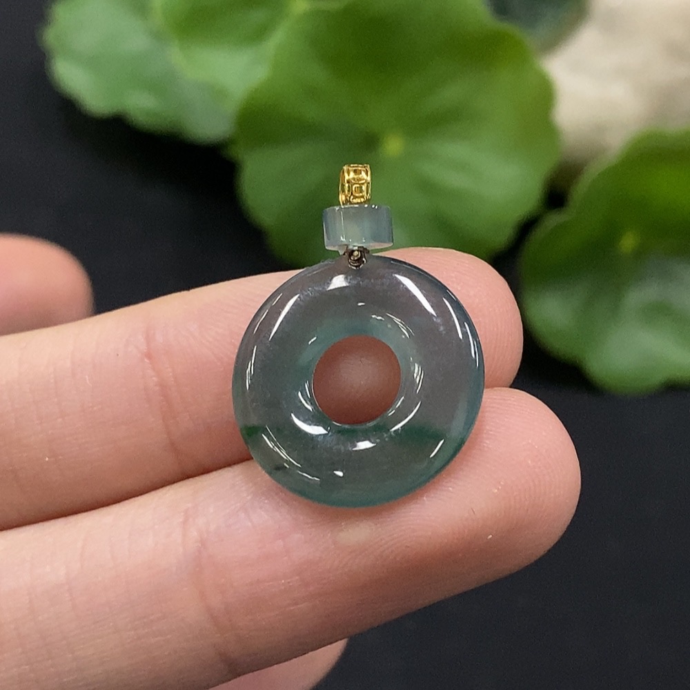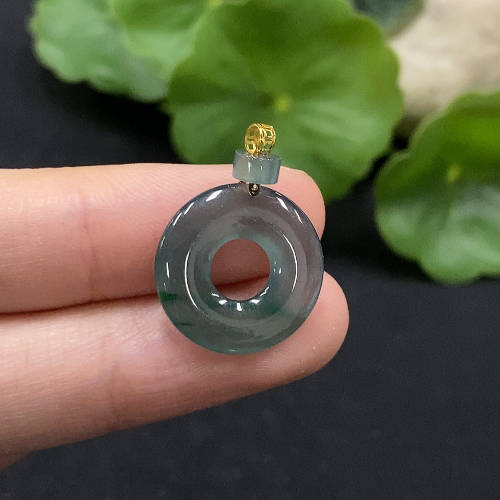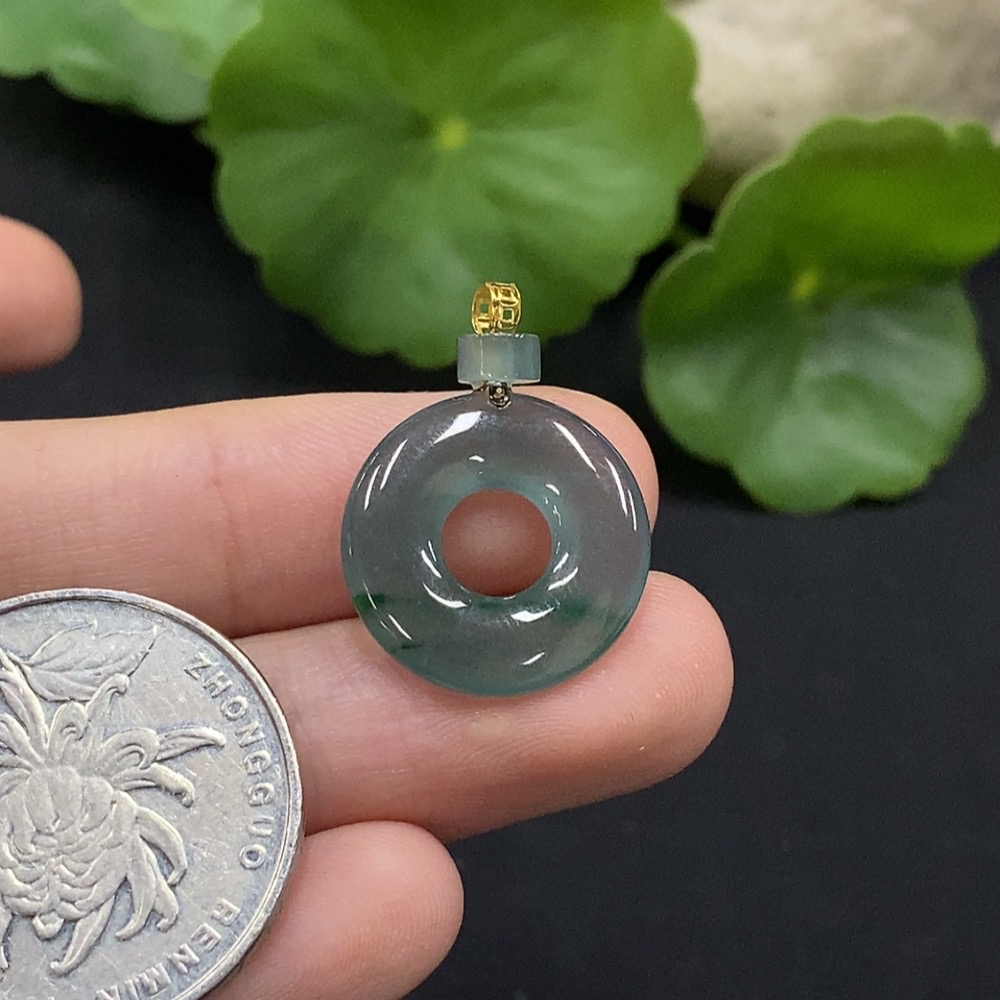Jadeite Donut Pendant 18K Gold Total Weight Approx. 1.6g