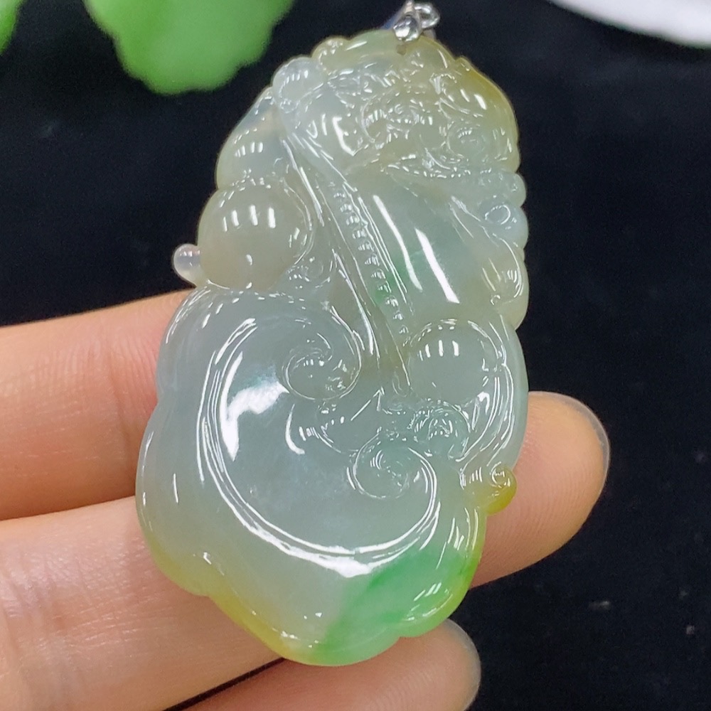 Jadeite Ruyi Pendant Total Weight Approx. 18.6g (Non-Gold Inlaid)