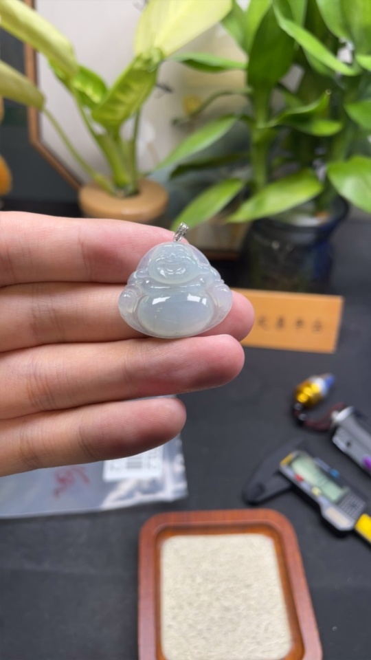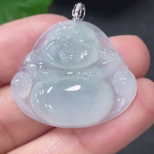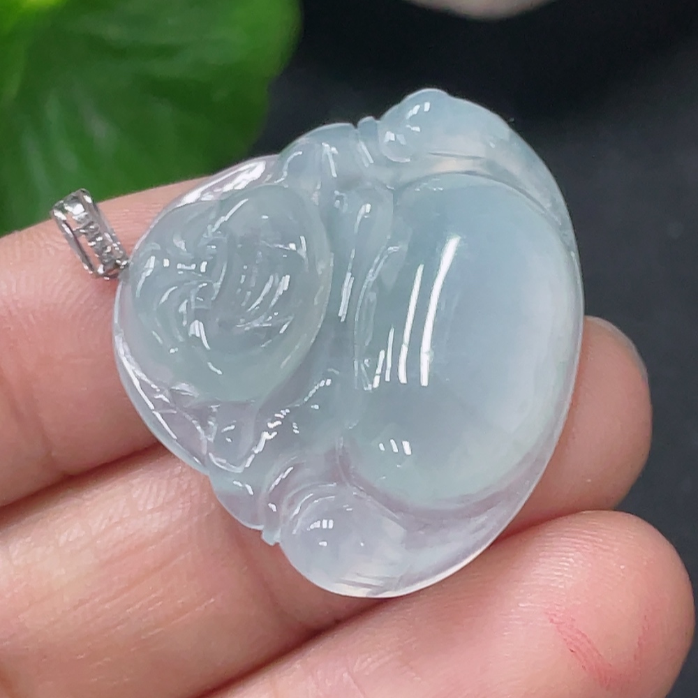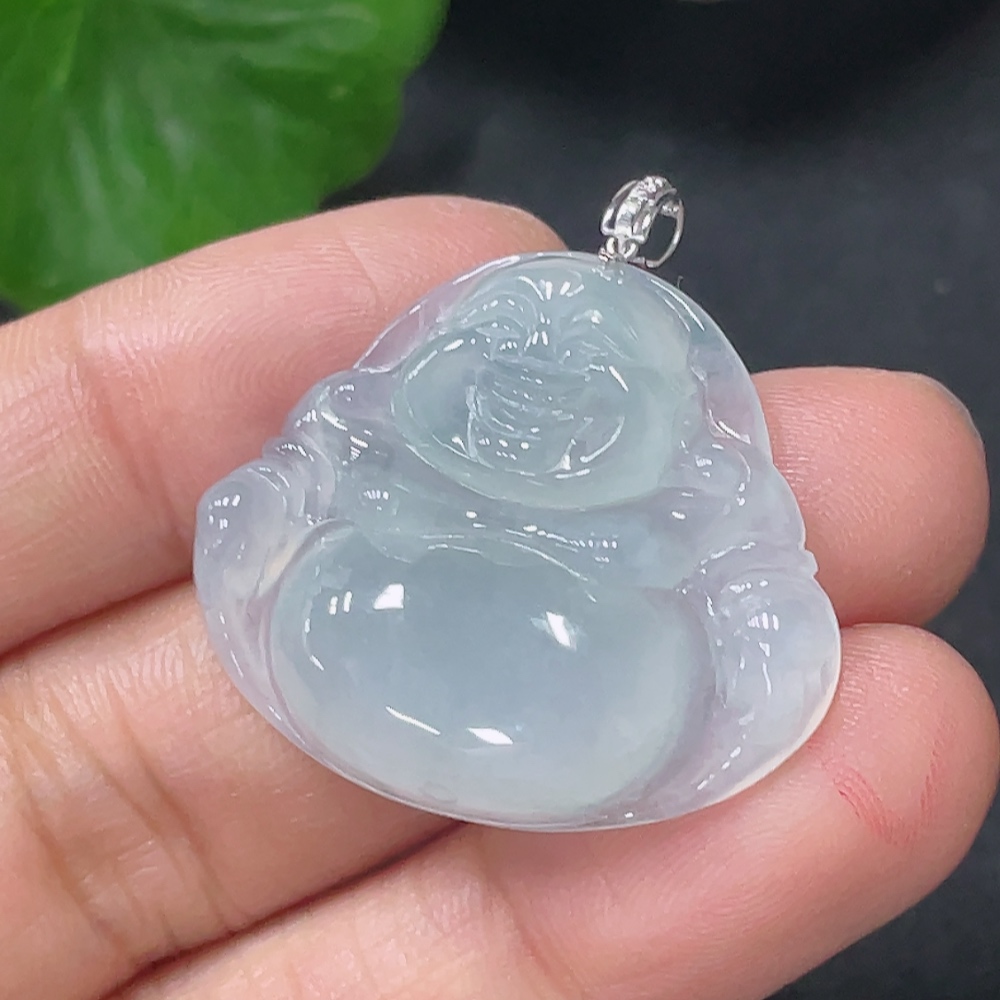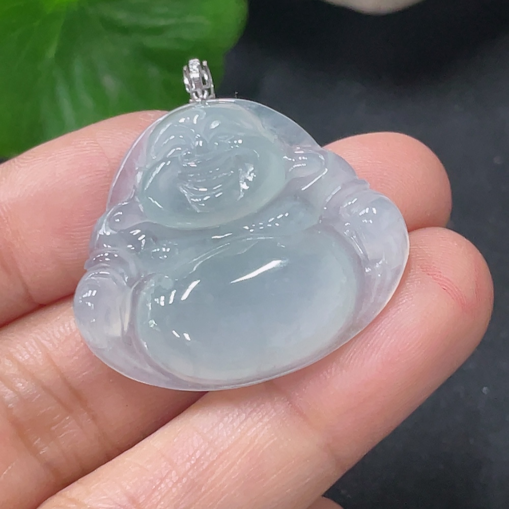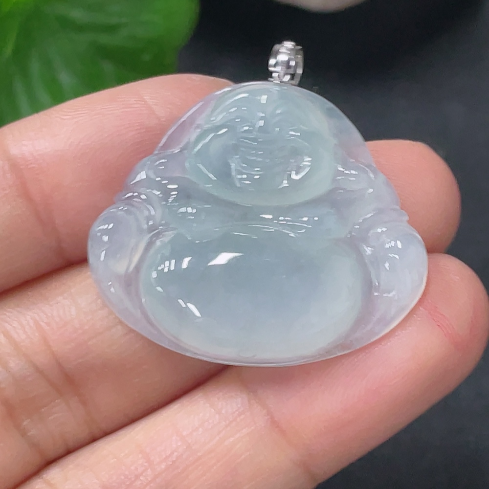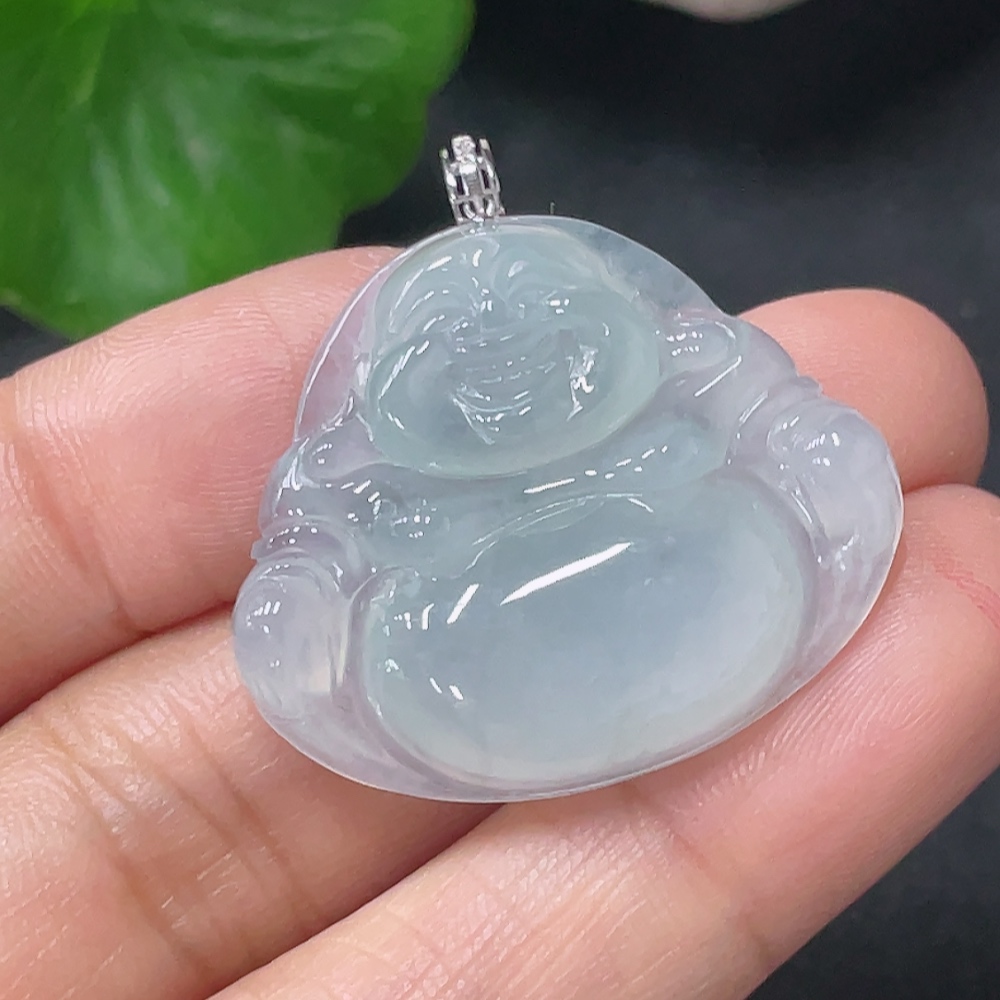 Jadeite Buddha Pendant with 18K Gold Clasp, Total Weight Approx. 5.7g (Diamond Accented)