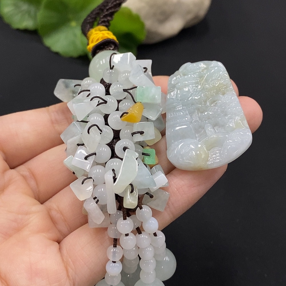 Jadeite pendant with non-A grade beads and impurities