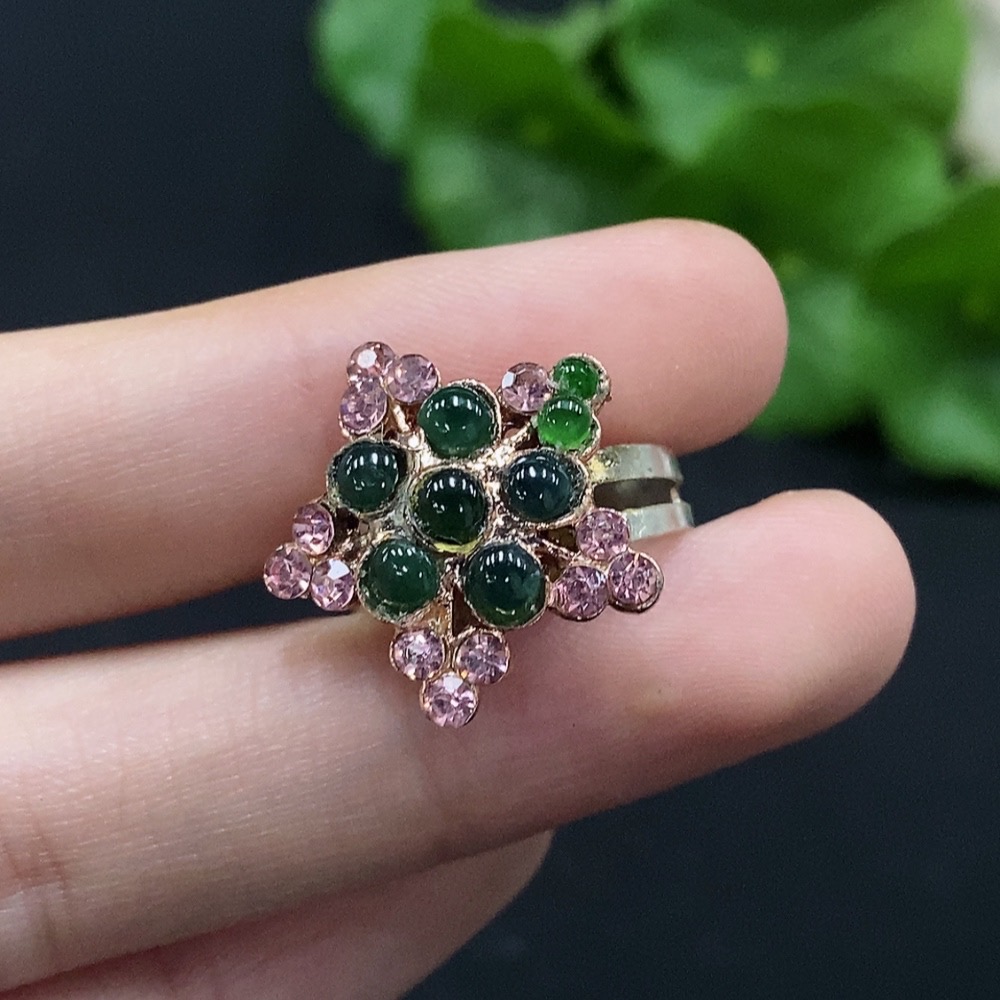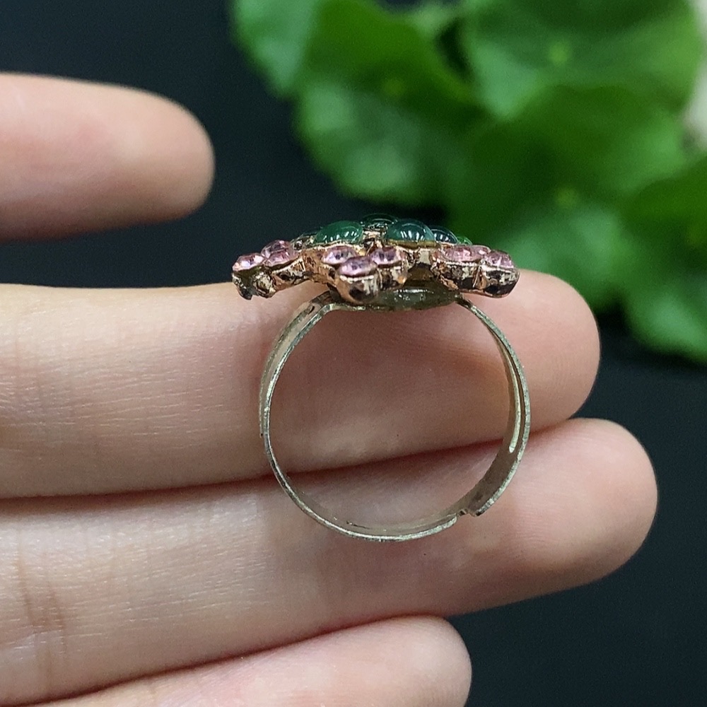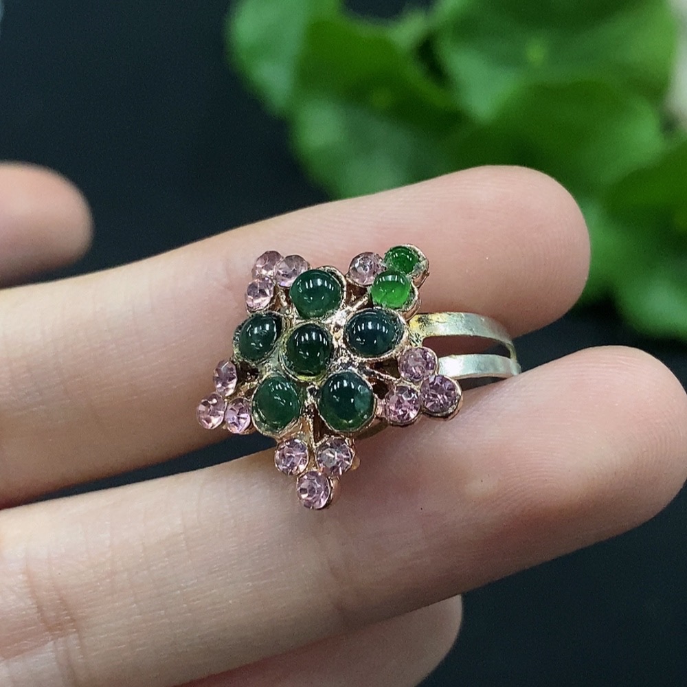 Jadeite Cabochon Ring, Non-Gold Setting, Adjustable Size, Total Weight Approx. 3g
