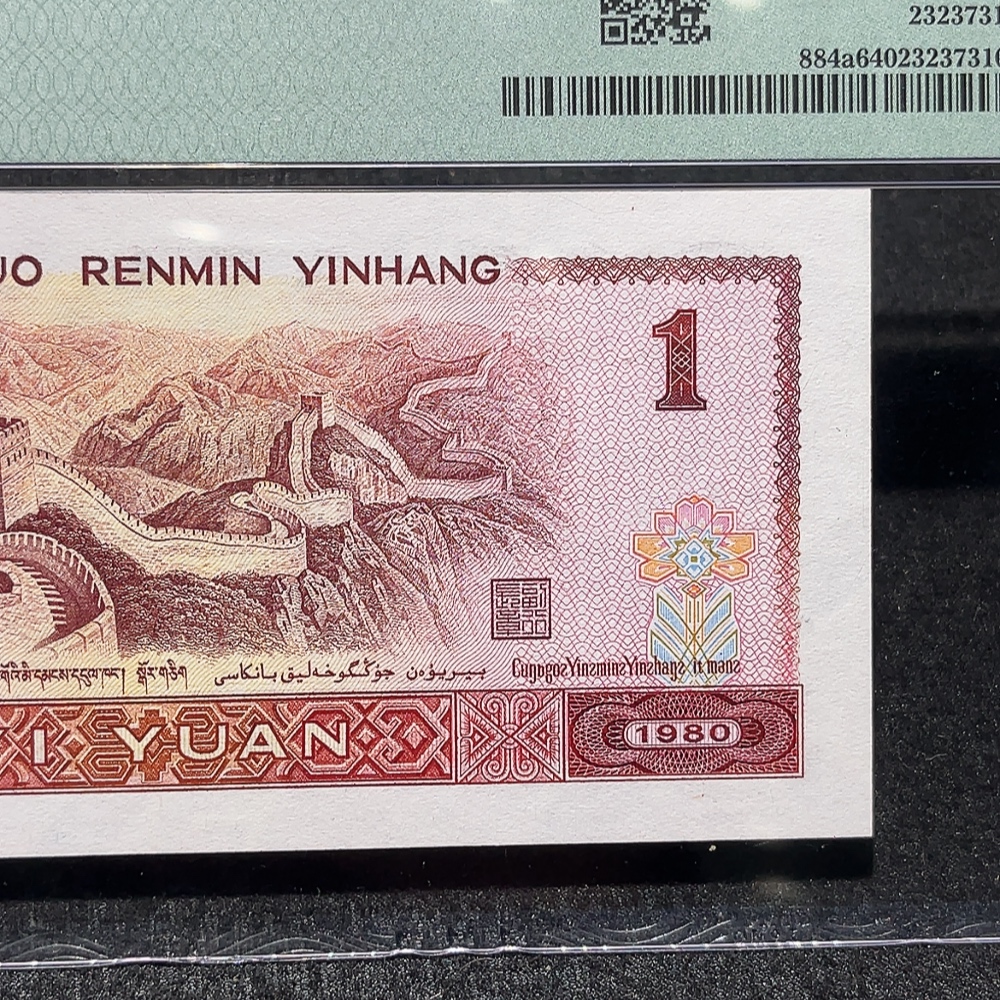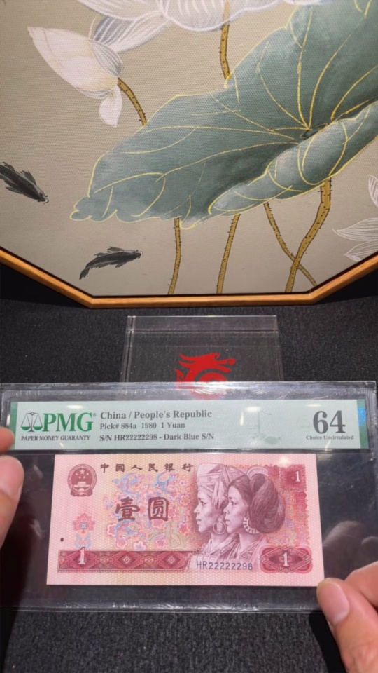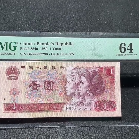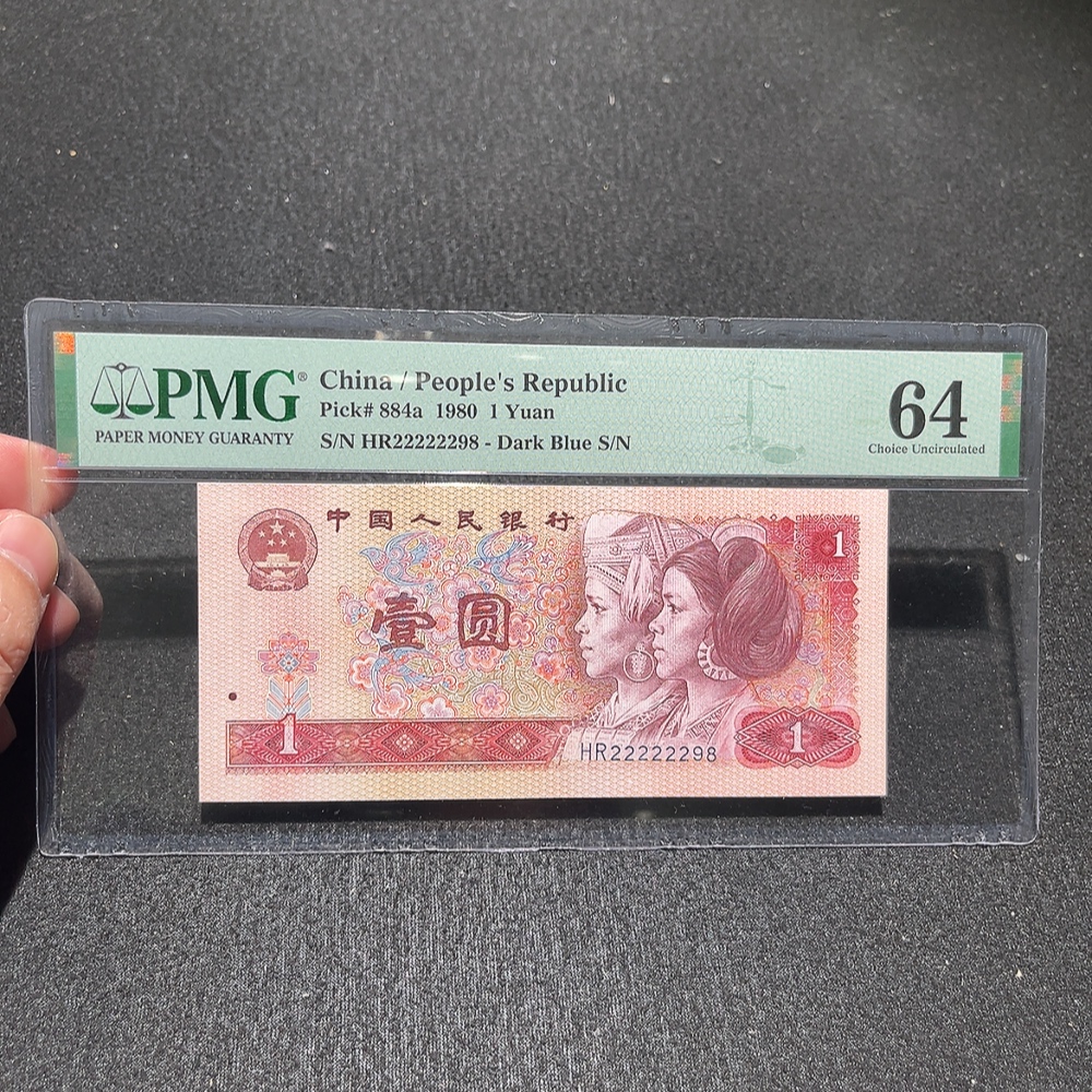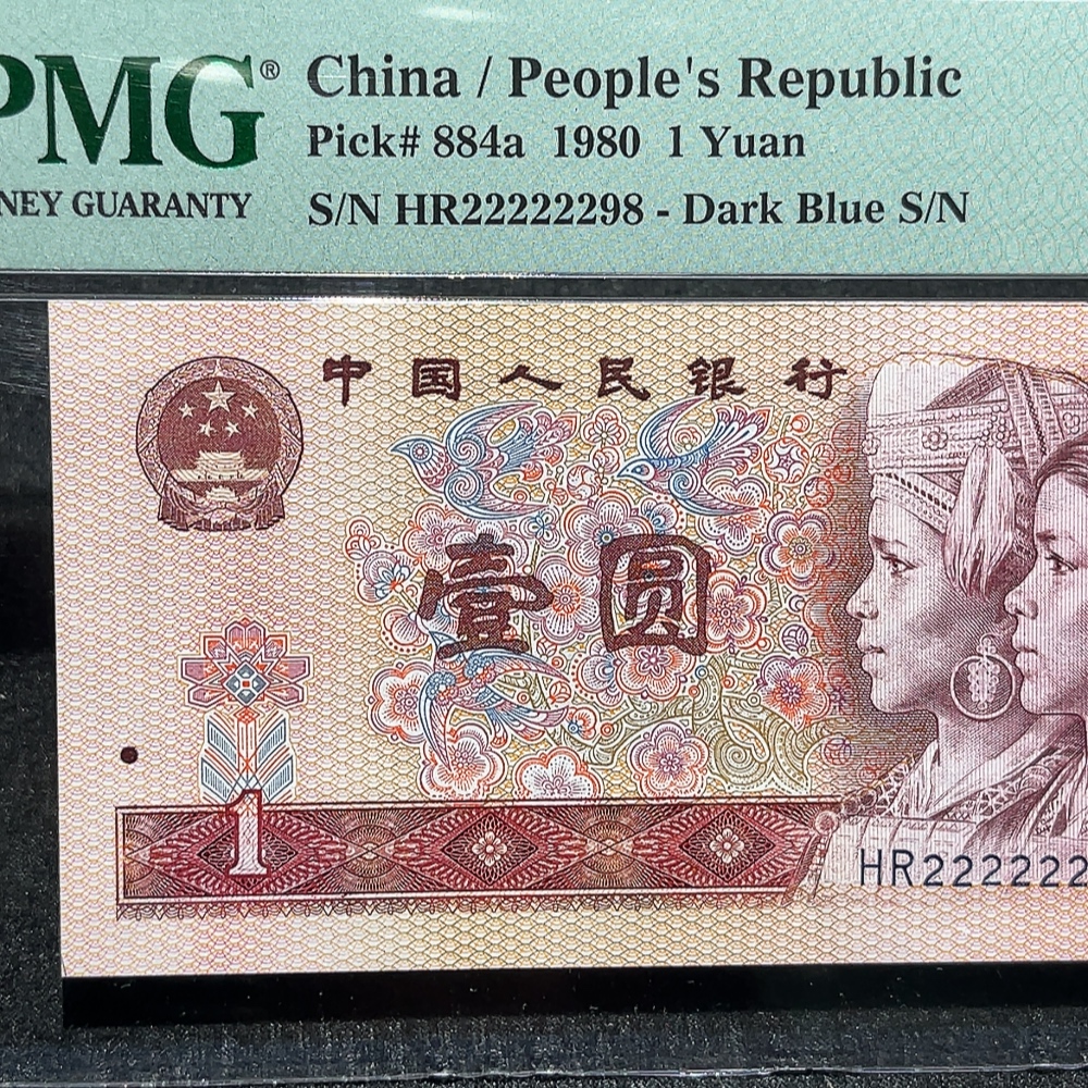 The Fourth Set 1980 Edition One Yuan Note HR22222298 Sky-reaching Subsidiary Number Elephant Head Number Two Dragon Pearl Number PMG Graded Premium Number Banknote