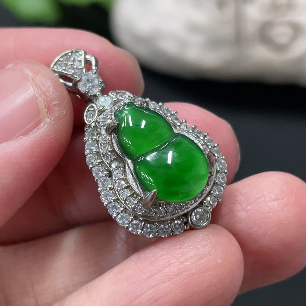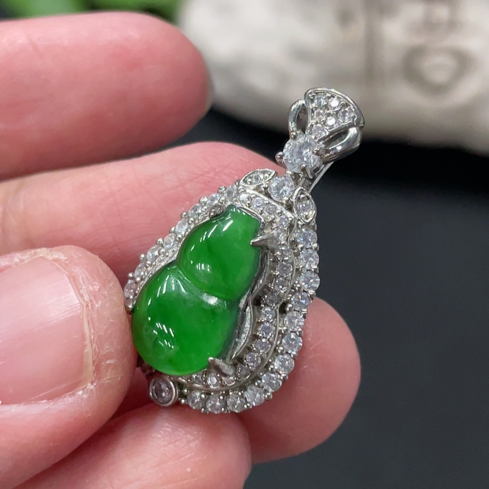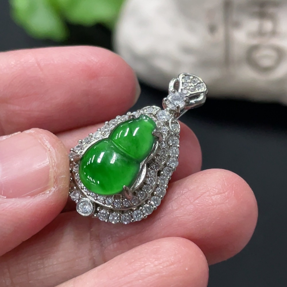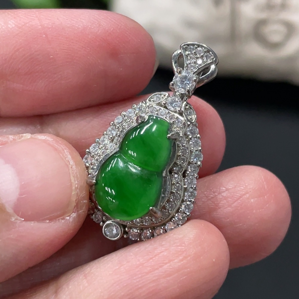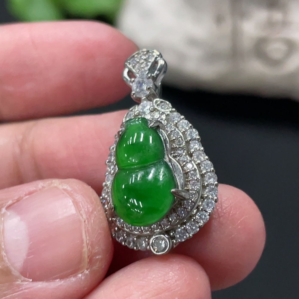 Jadeite Inlaid Gourd Pendant Non-Gold Total Weight Approx. 4.06g