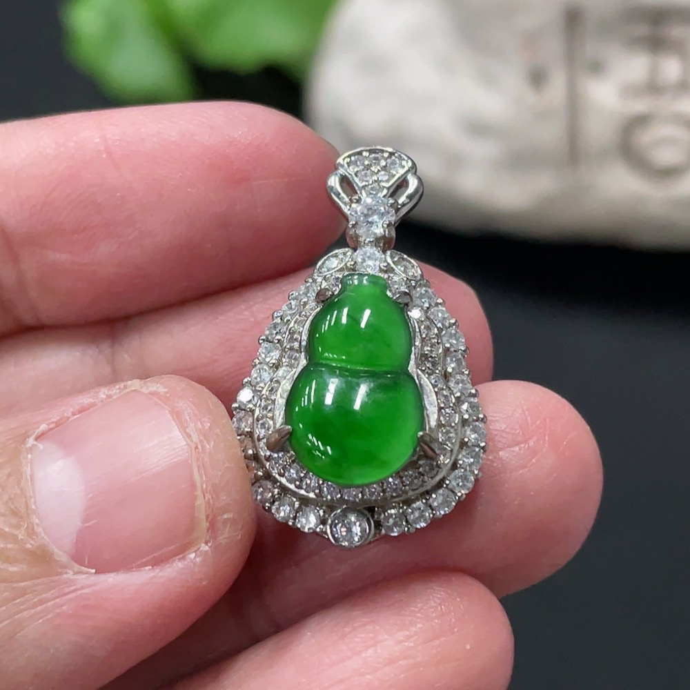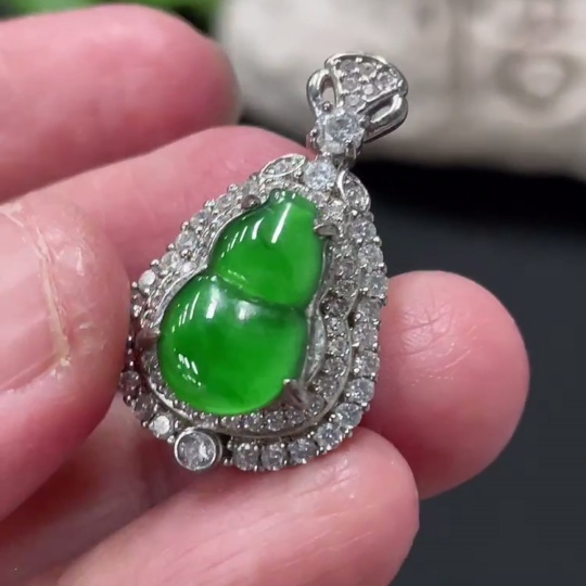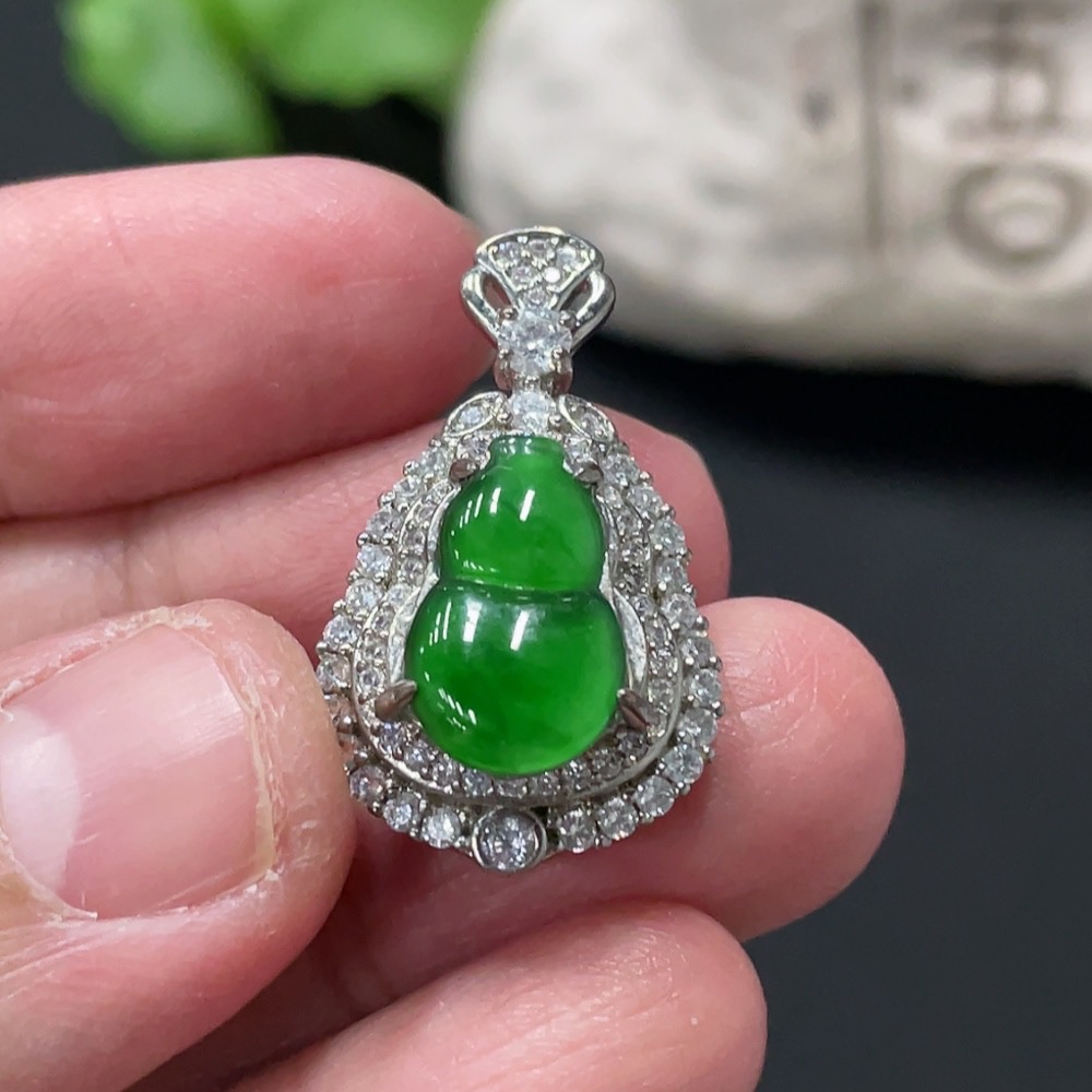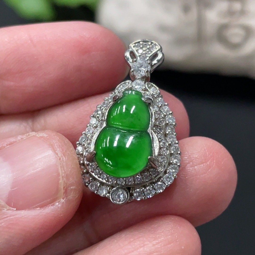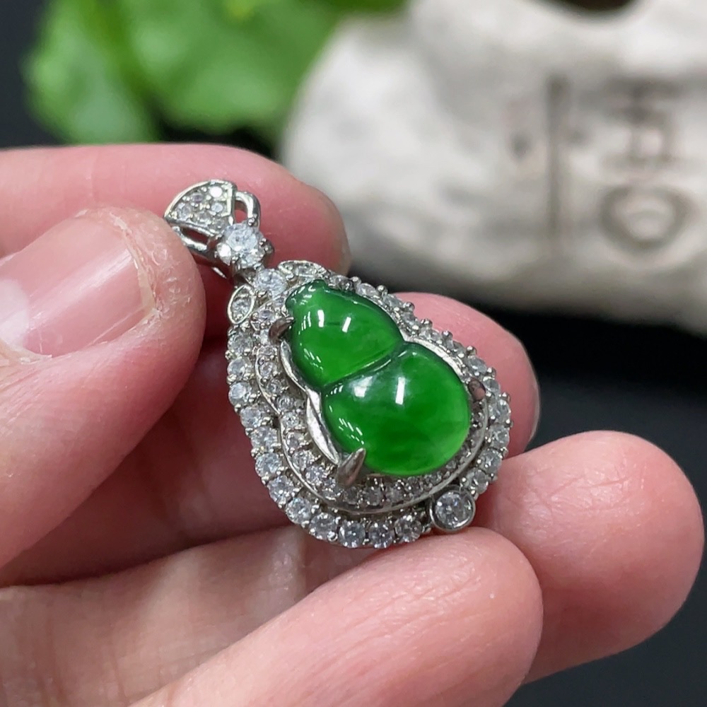Jadeite Inlaid Gourd Pendant Non-Gold Total Weight Approx. 4.06g