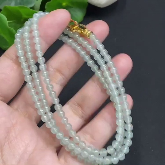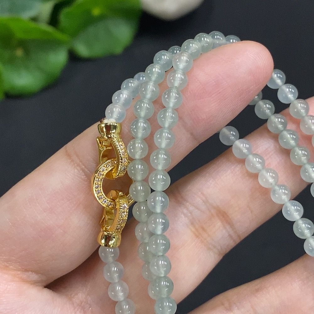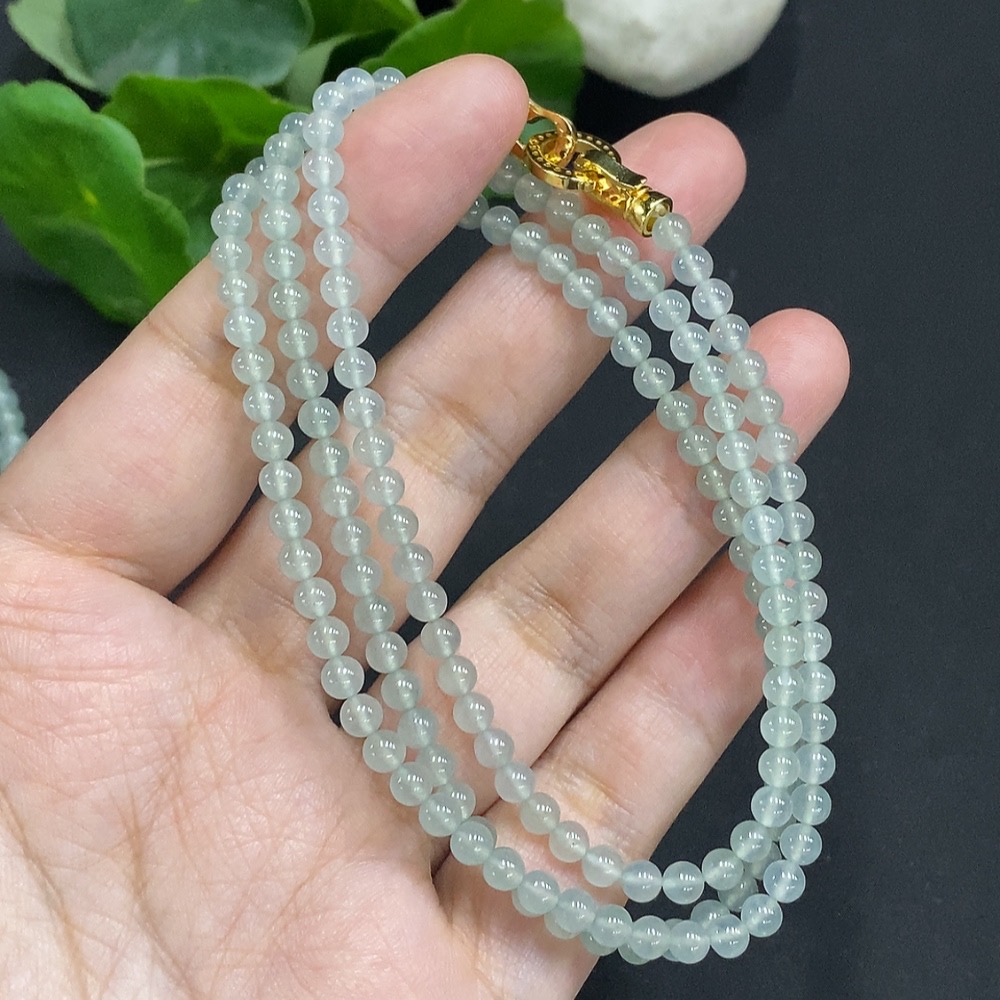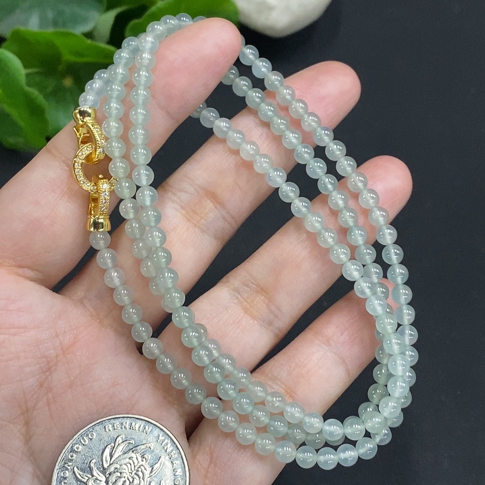 Jadeite Bead Necklace Approx. 4mm Non-Gold Total Weight About 19.2g