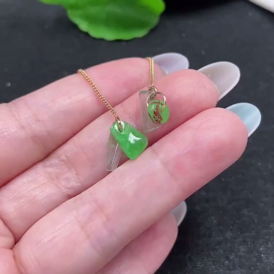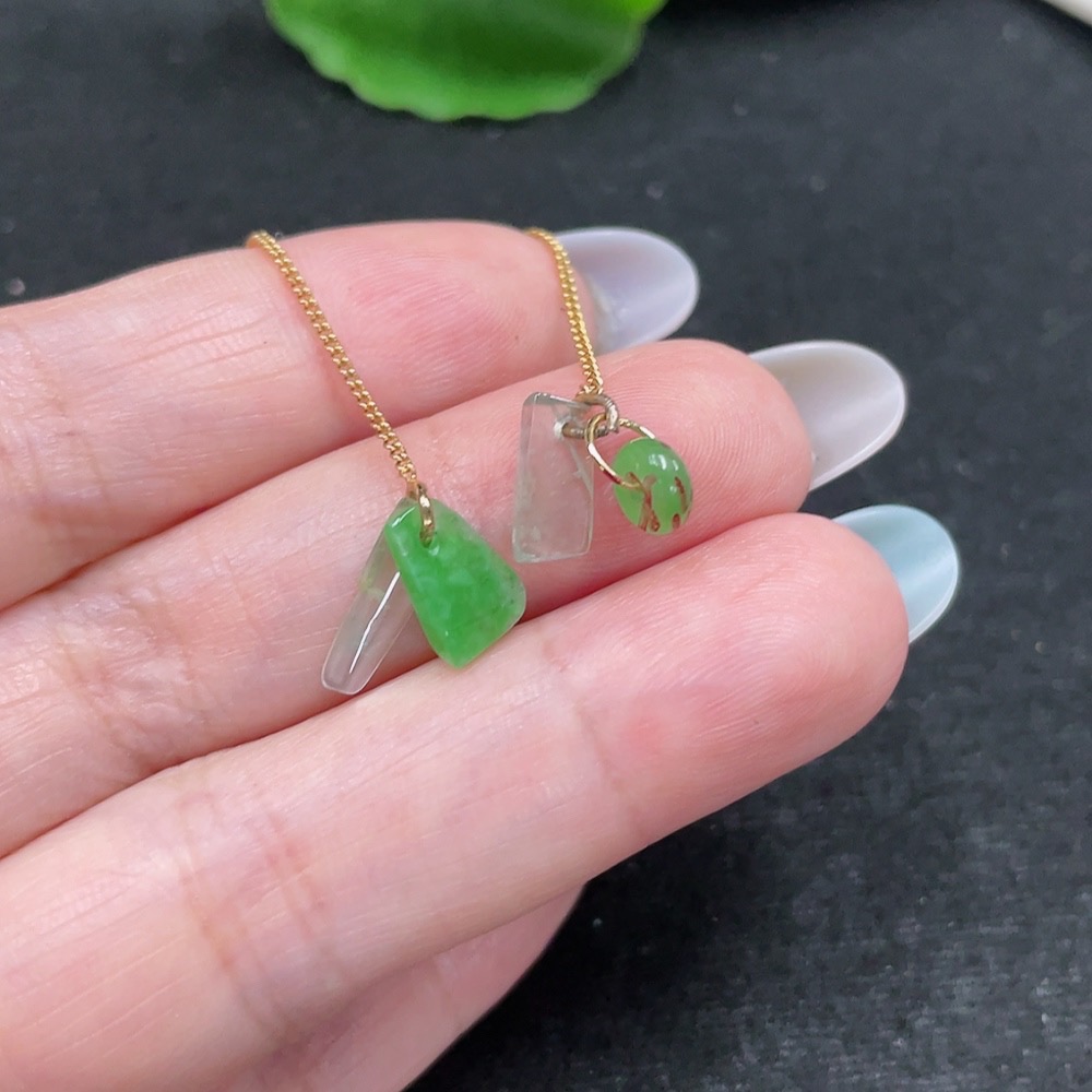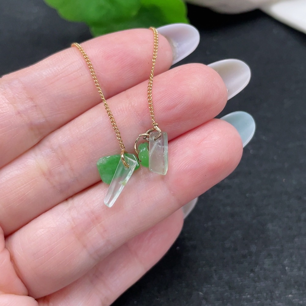 Jadeite inlaid earrings pair total weight approx. 1.1g (non-gold inlay) (beads non-A)