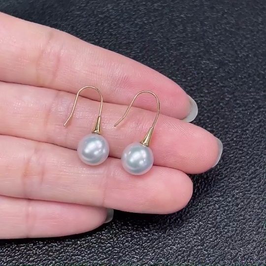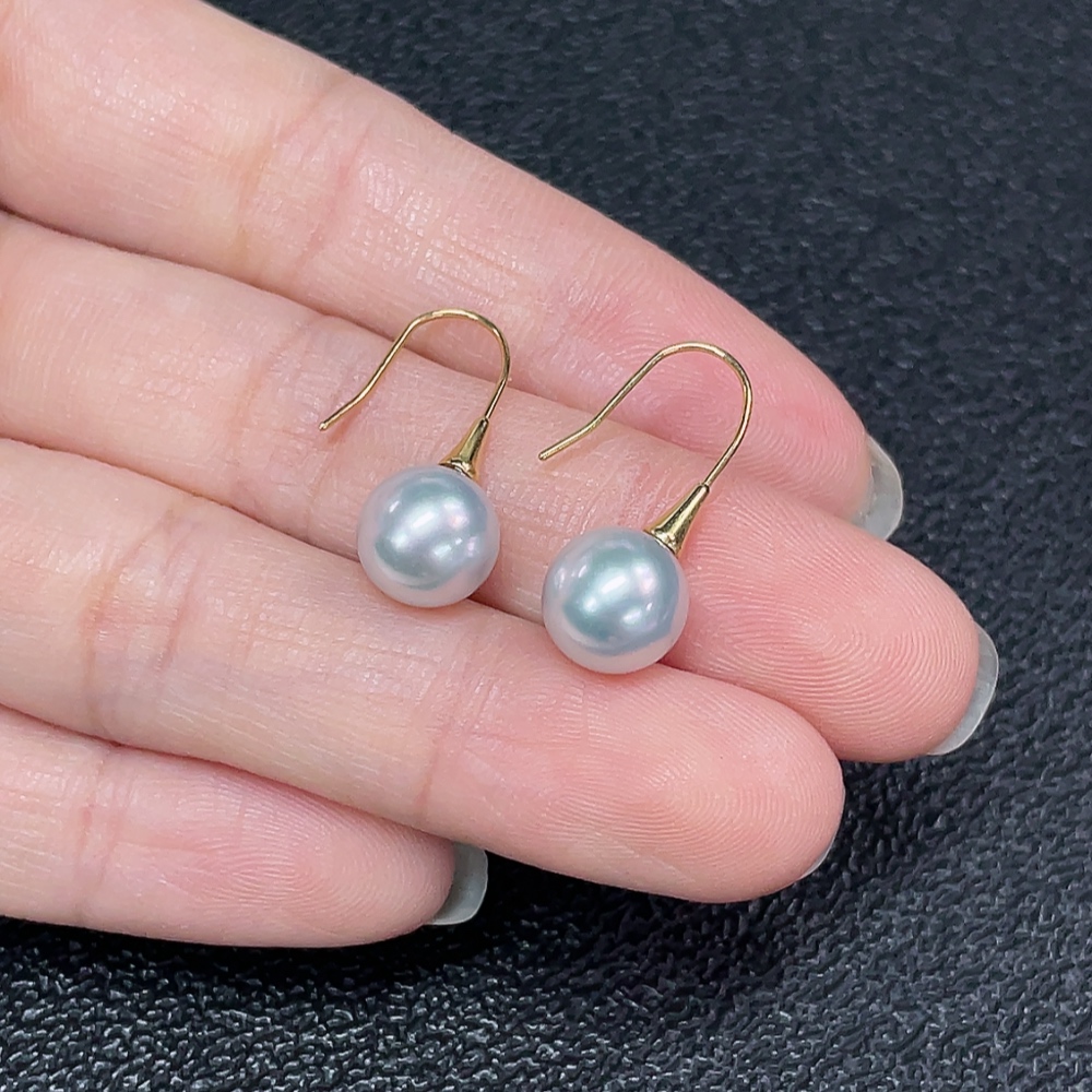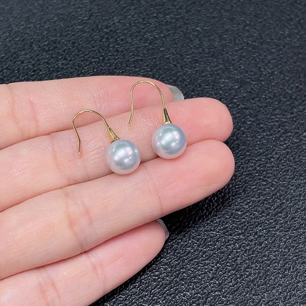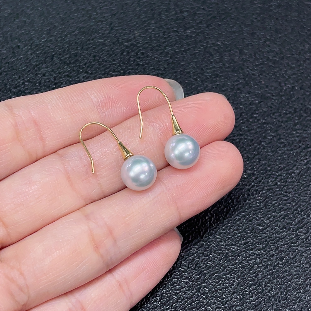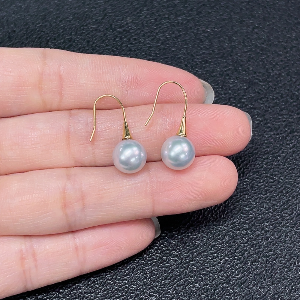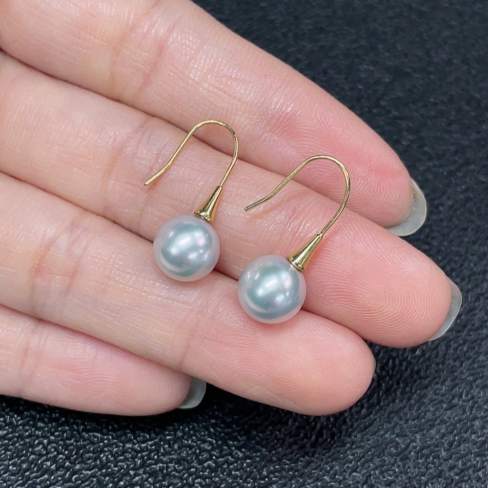 Seawater pearl earrings, color origin undetermined, no imprint, tested gold content 18k gold, total item weight approximately 1.94g, size about 8mm