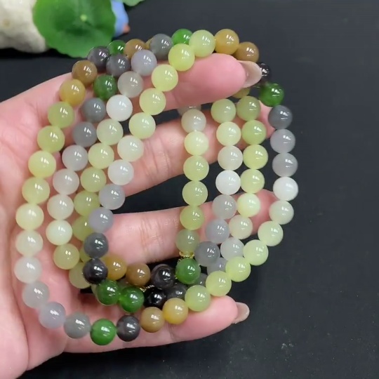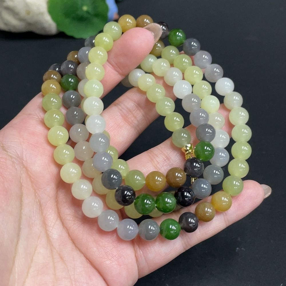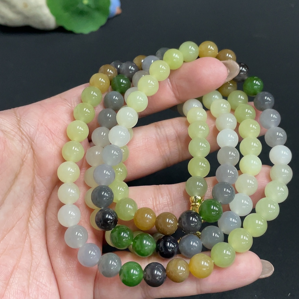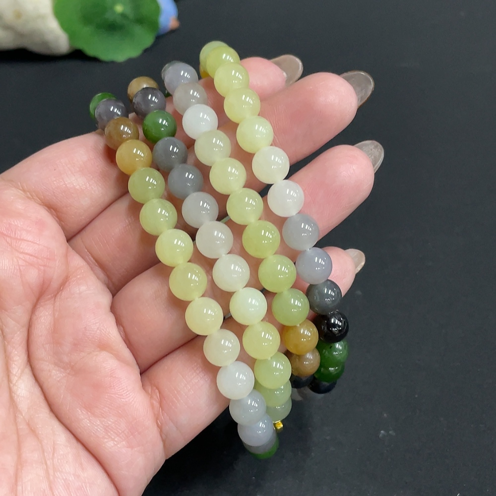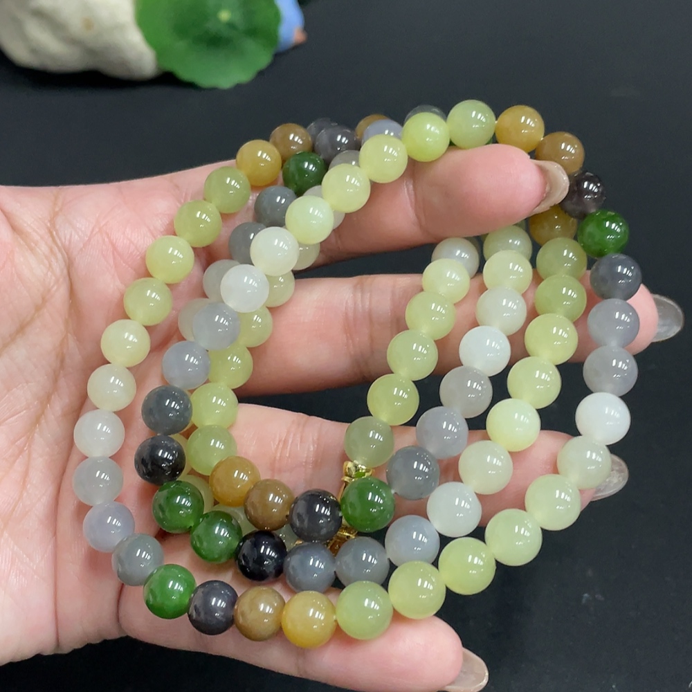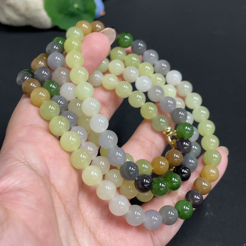 Hetian Jade Bead Necklace, Approx. 7.8mm, Non-Gold, Total Weight Approx. 85.4g