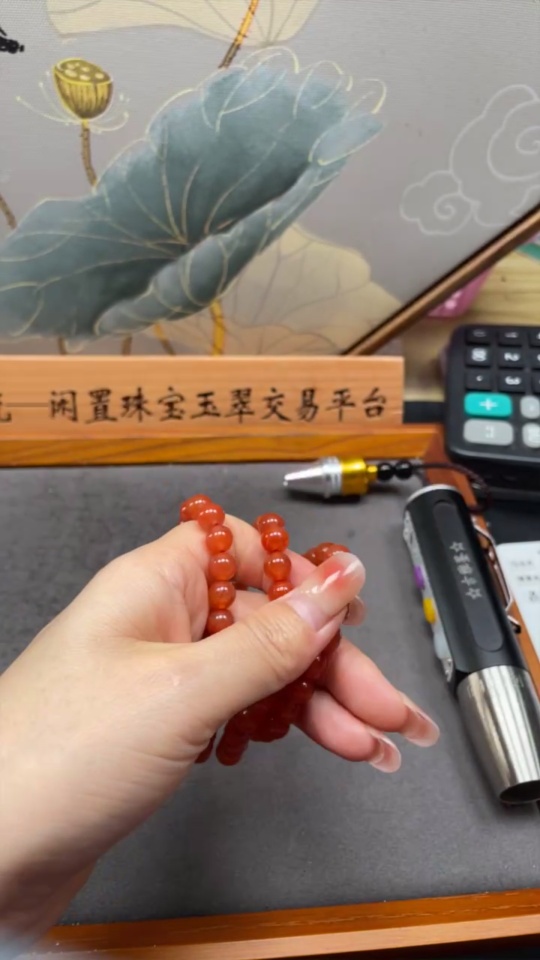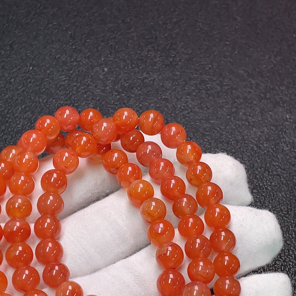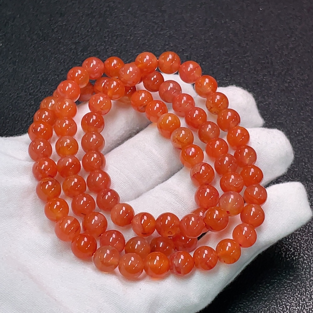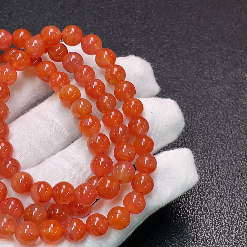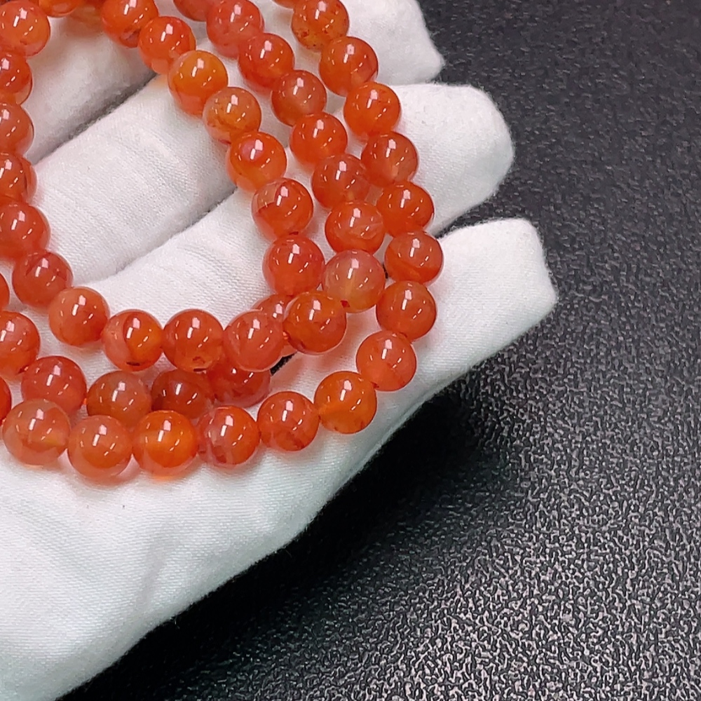 Red Agate Bead Strand with Visible Organic Matter, Total Weight Approx. 48.03g, Size About 7.8mm