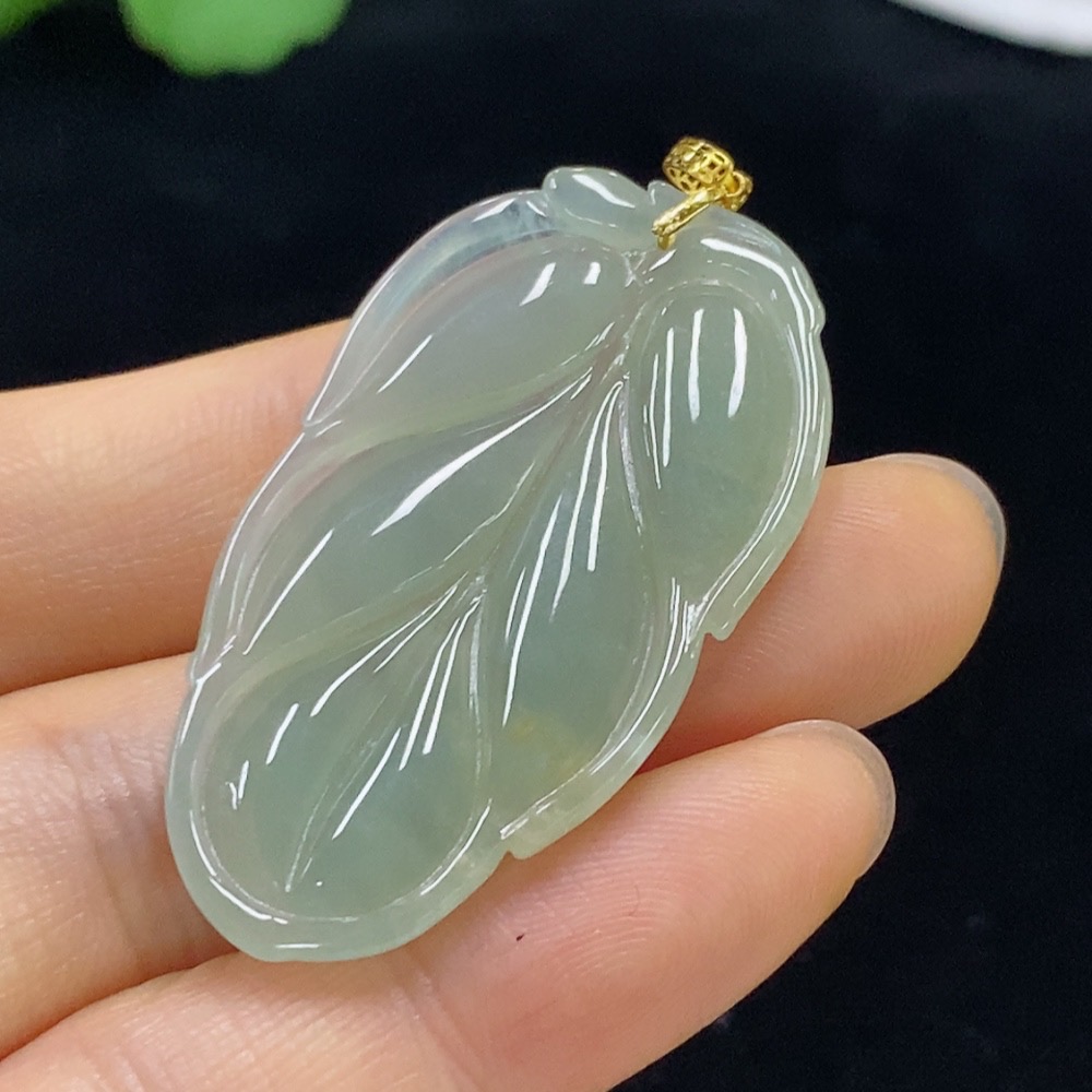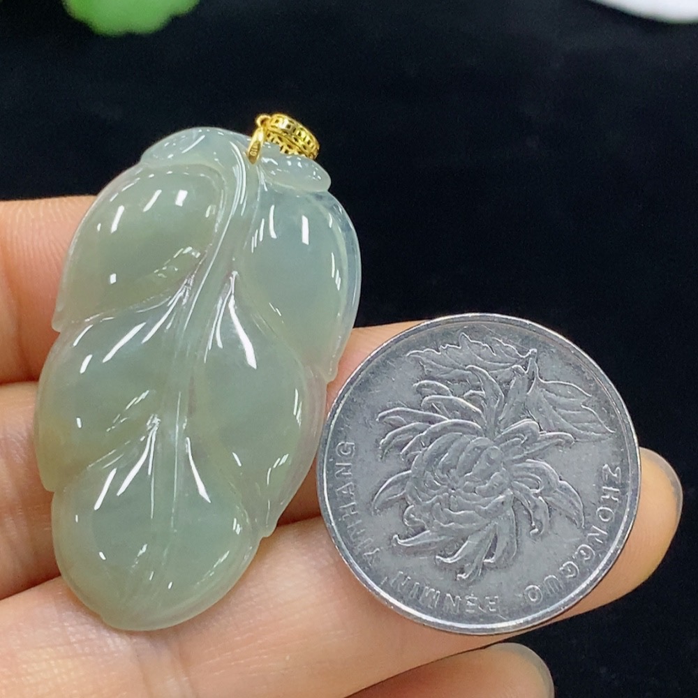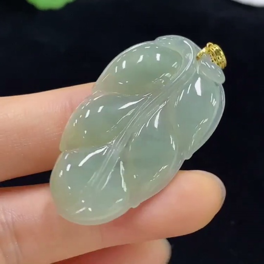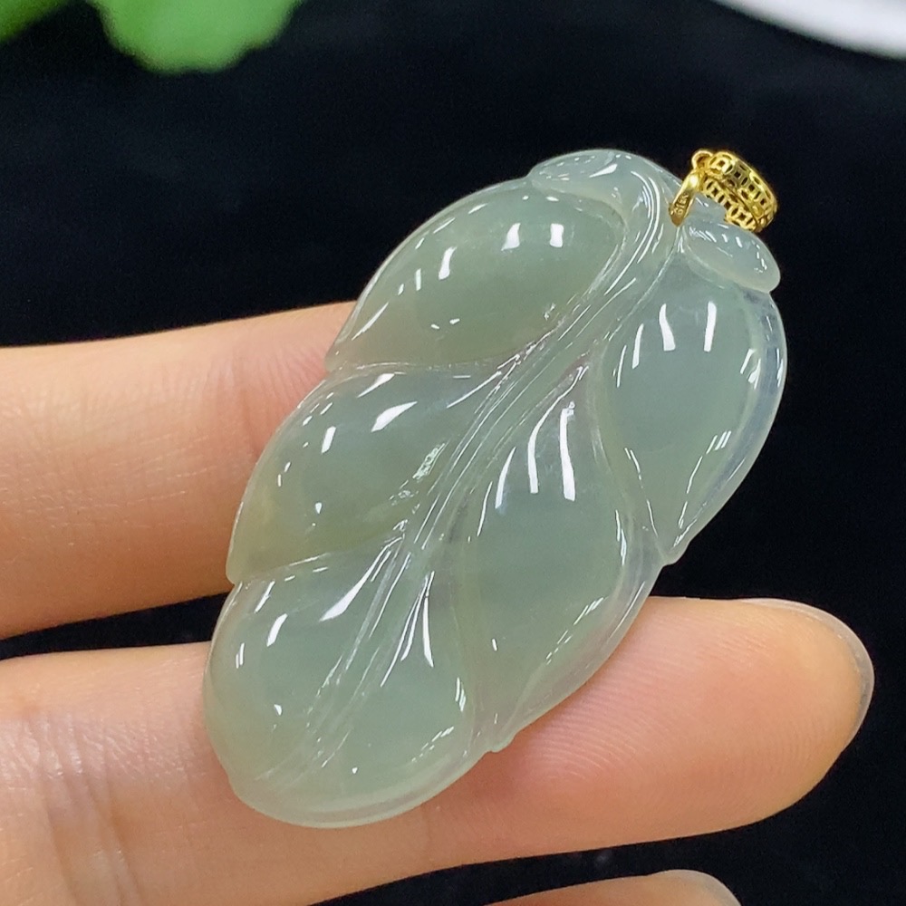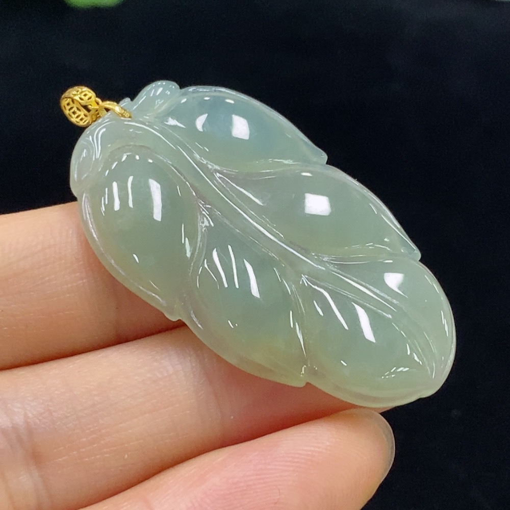 Jadeite Pendant Leaf with 18k Bail Total Weight Approx. 7.04g