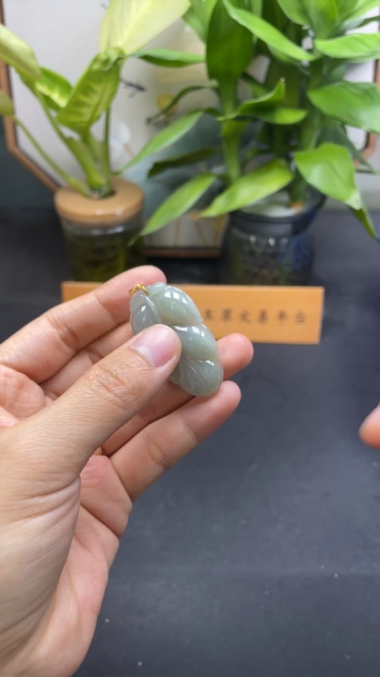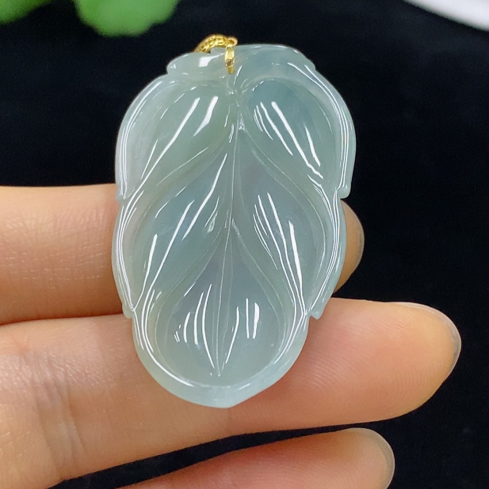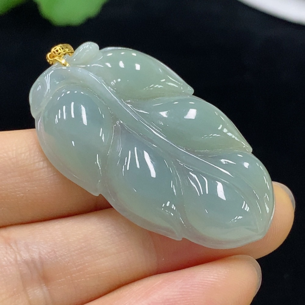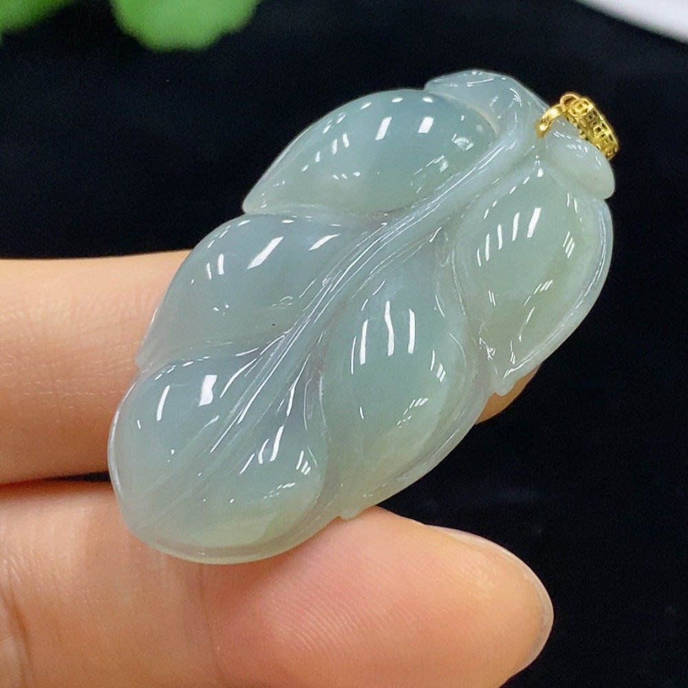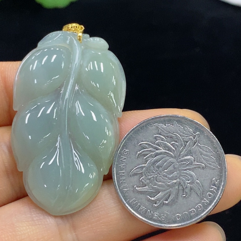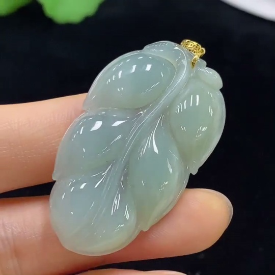 Jadeite Pendant Leaf with 18k Bezel Total Weight Approx. 10.86g