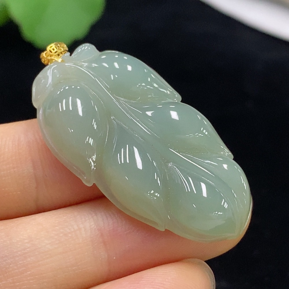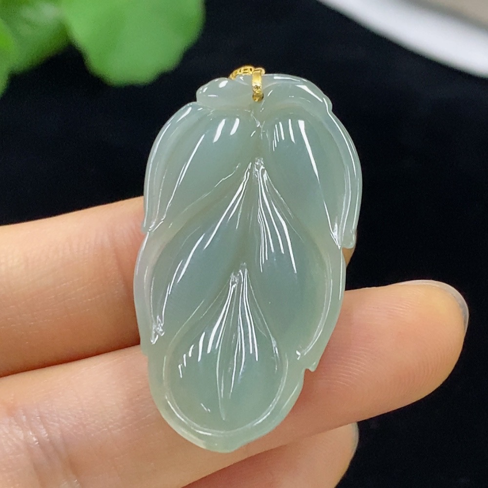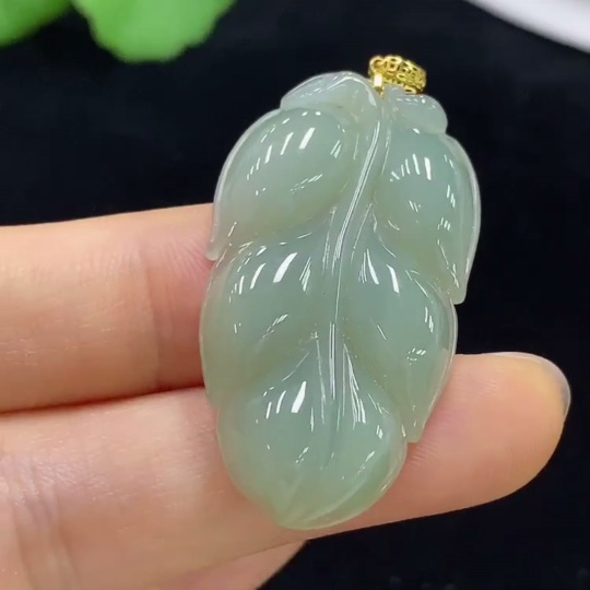 Jadeite Pendant Leaf with 18k Bezel Total Weight Approx. 8g