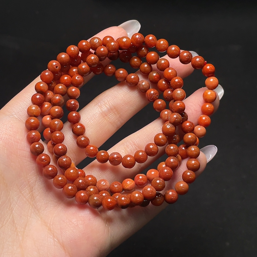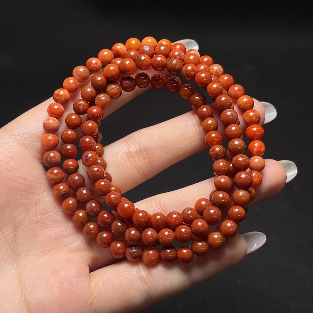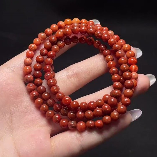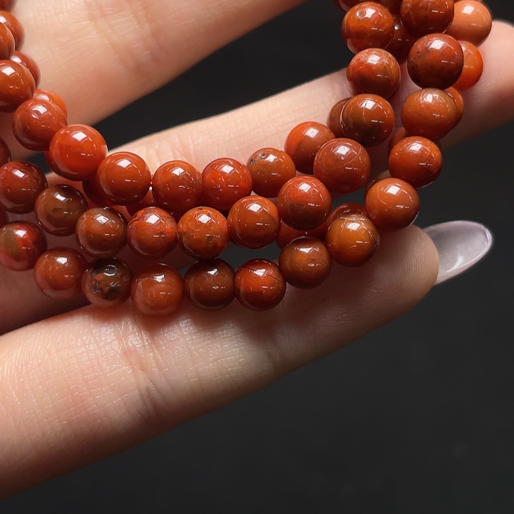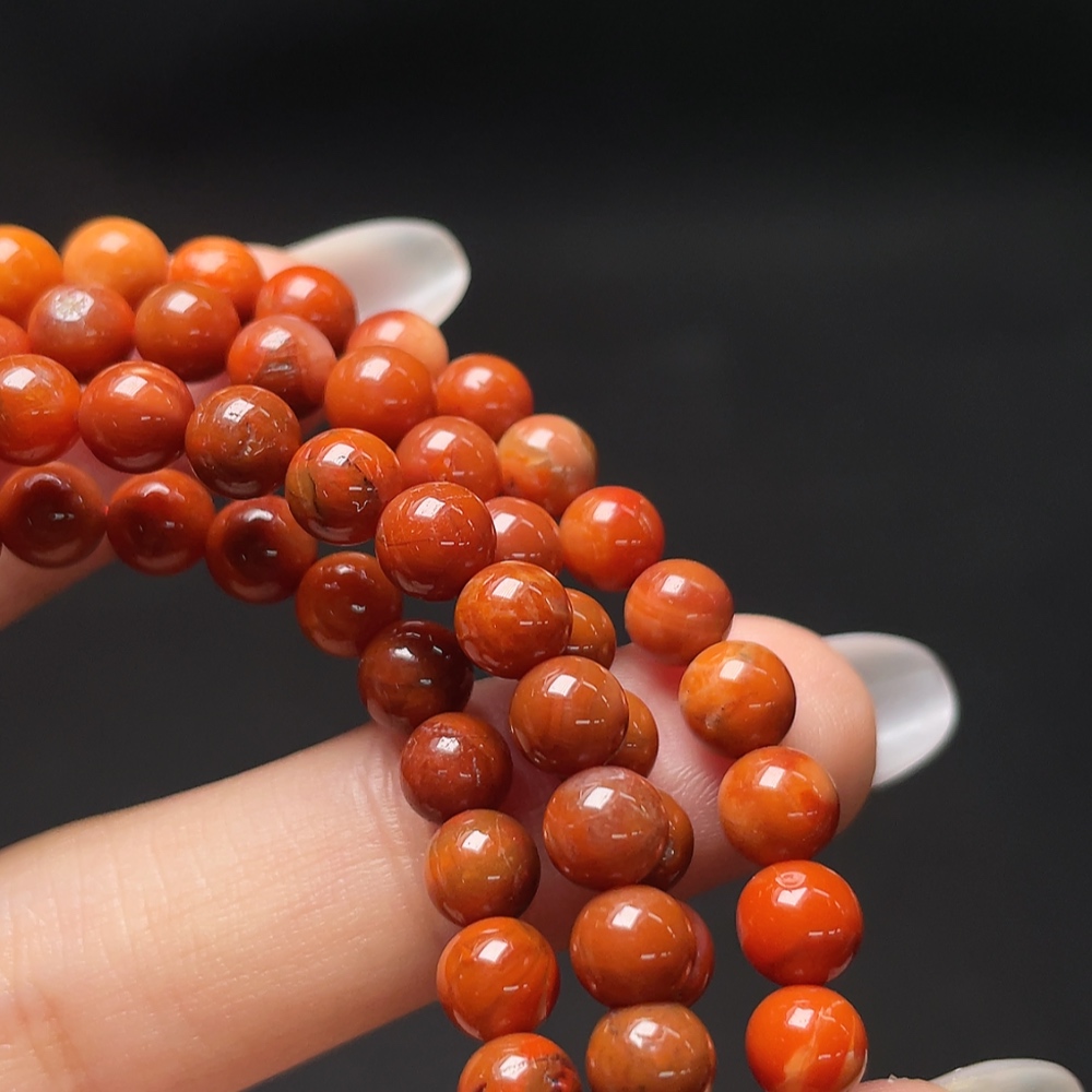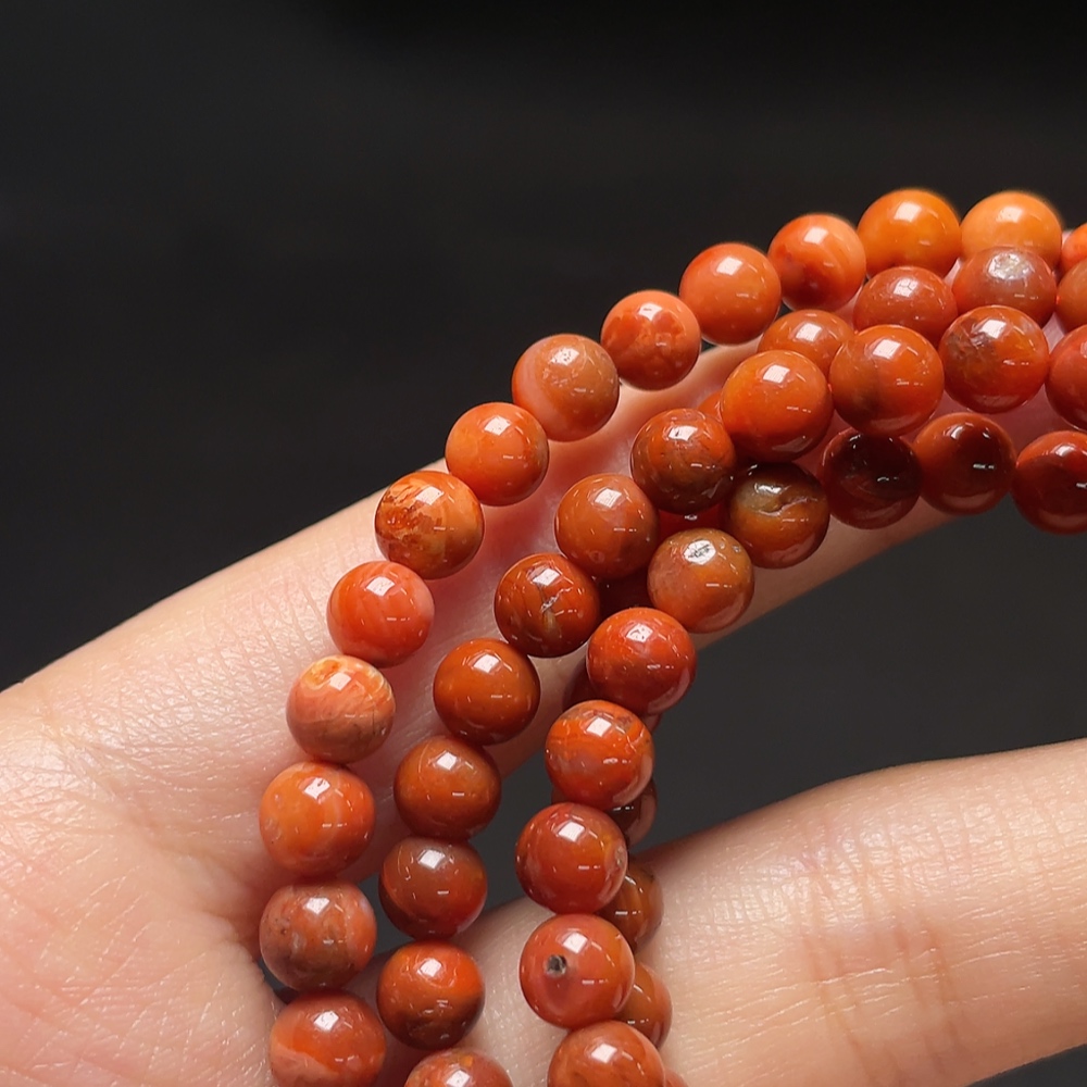Red Agate Bead Strand with Visible Organic Matter, Total Weight Approx. 31.72g, Size ~5.4mm