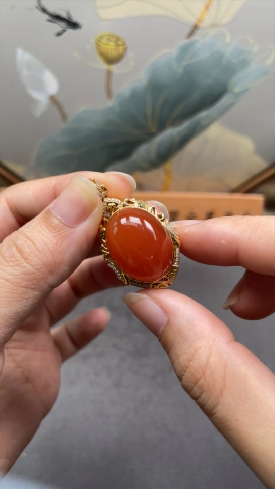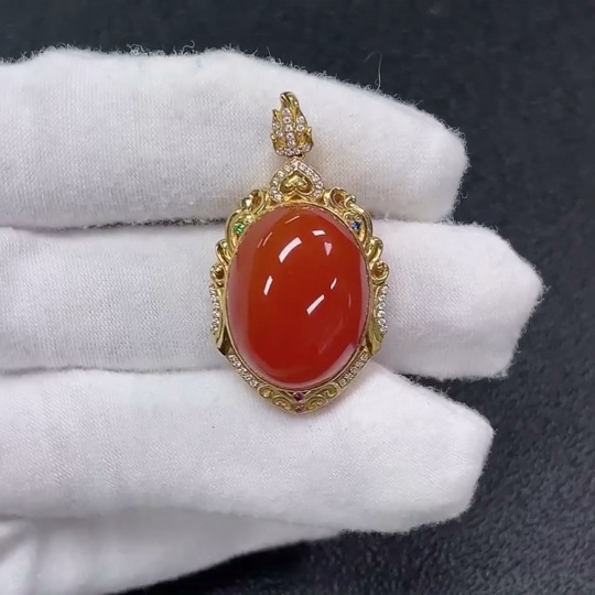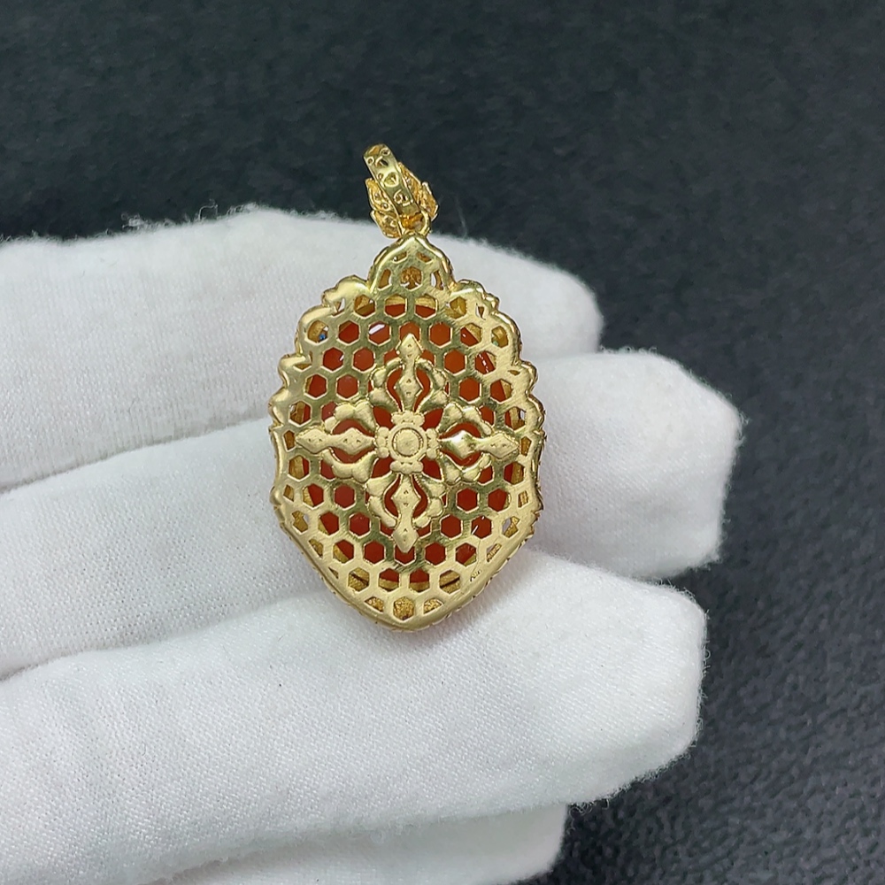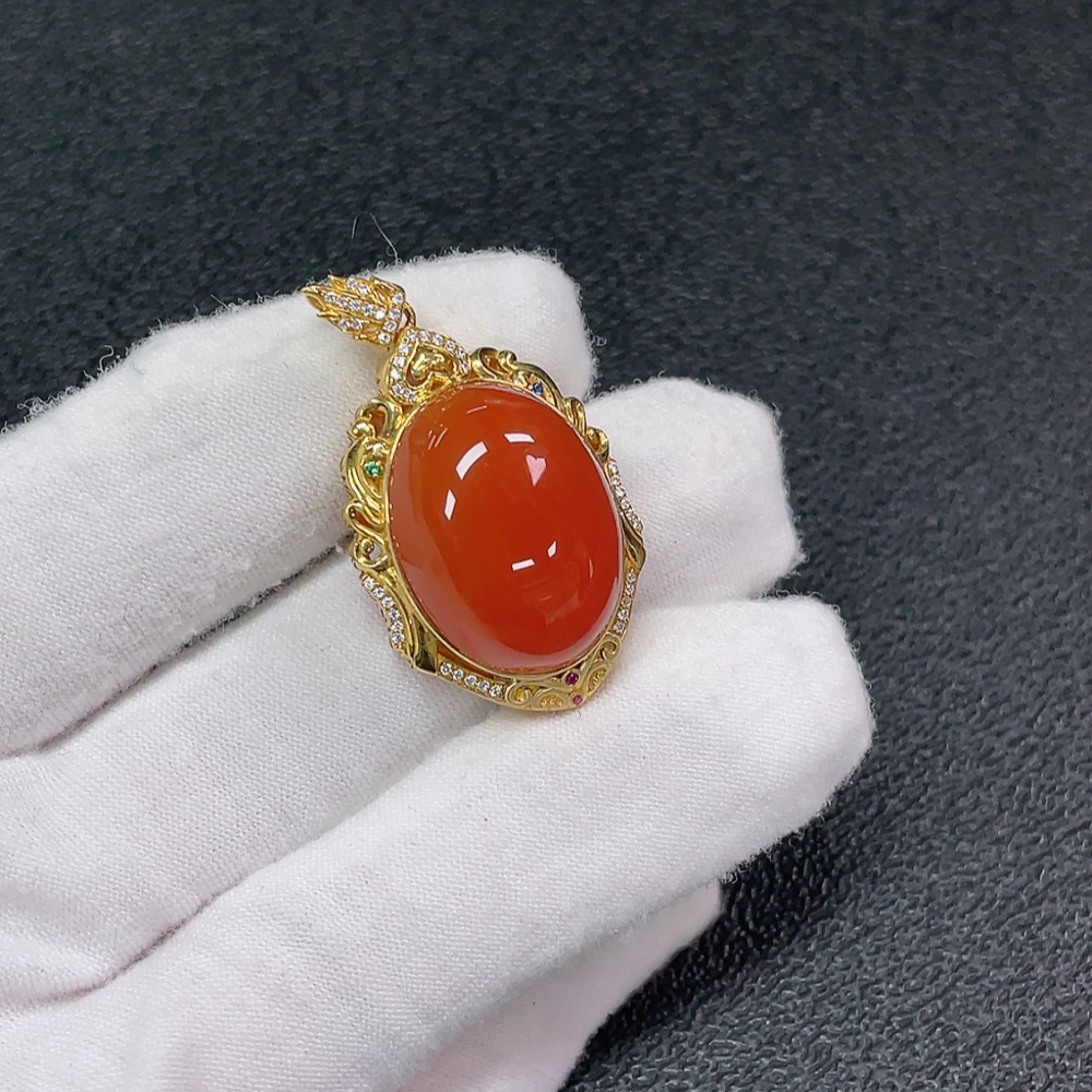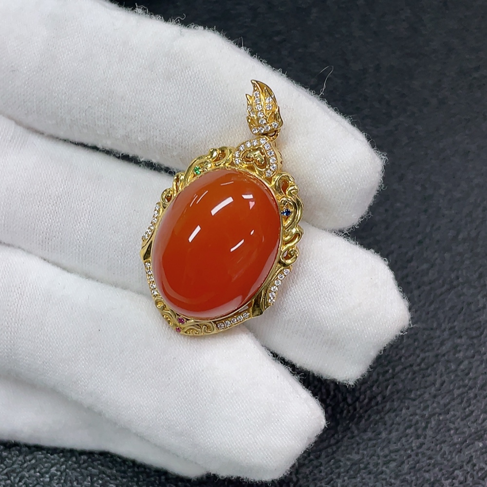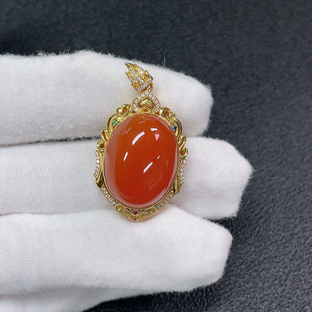 18K Red Agate Pendant Non-Diamond Total Weight Approx. 9.27g