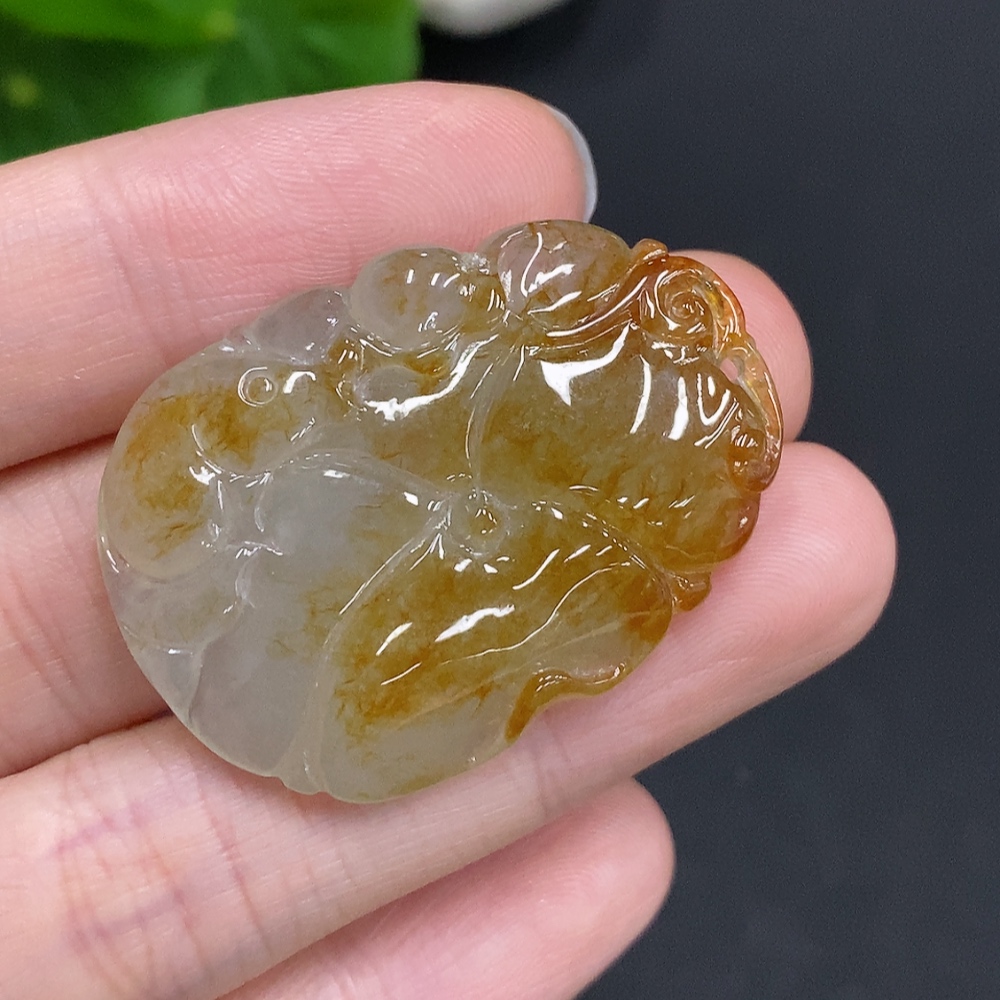Jadeite Auspicious Fish Pendant, Total Weight Approx. 11.7g