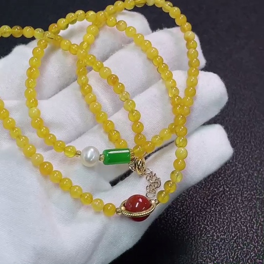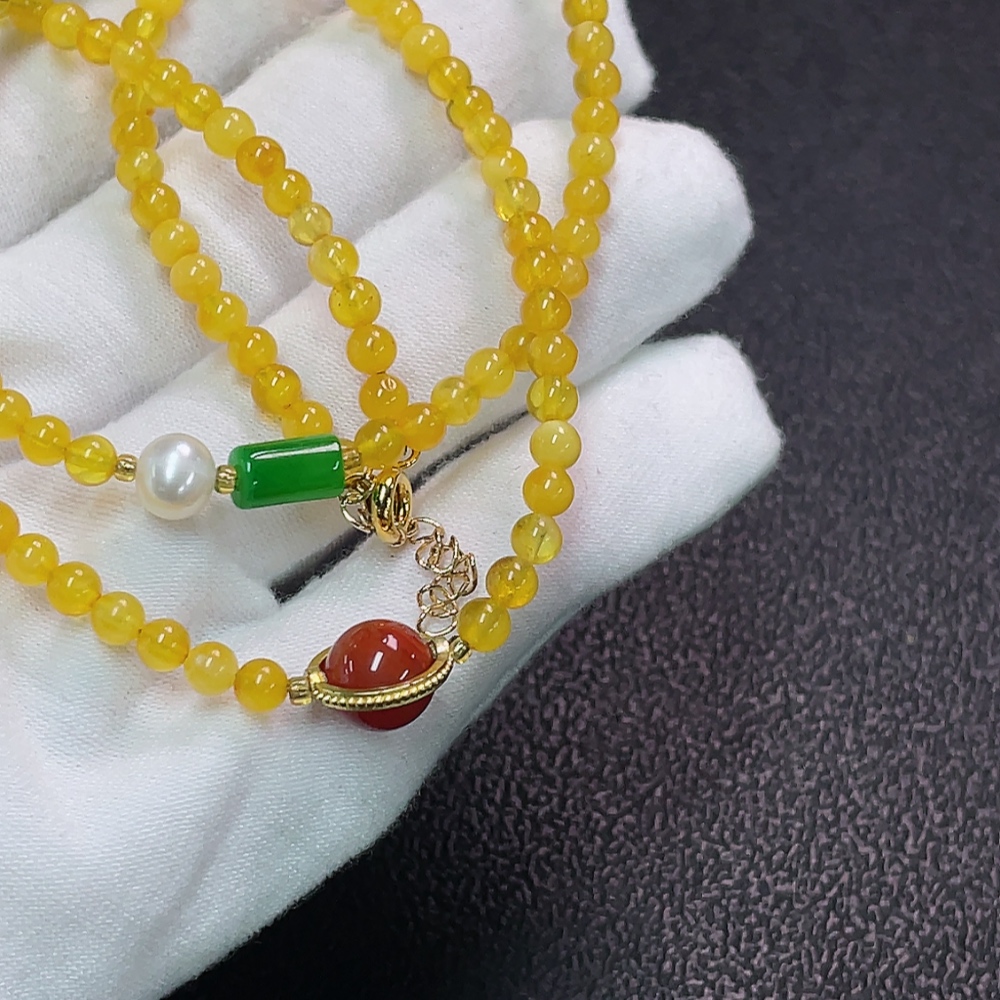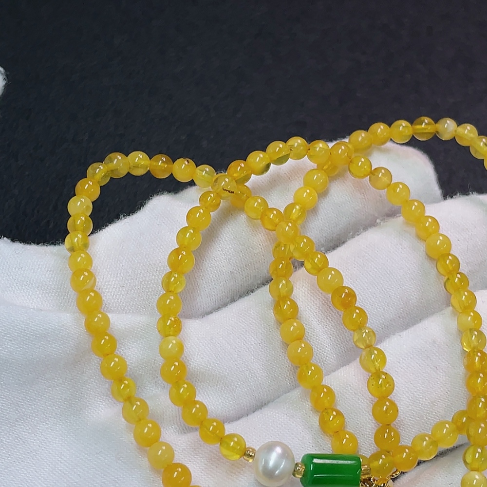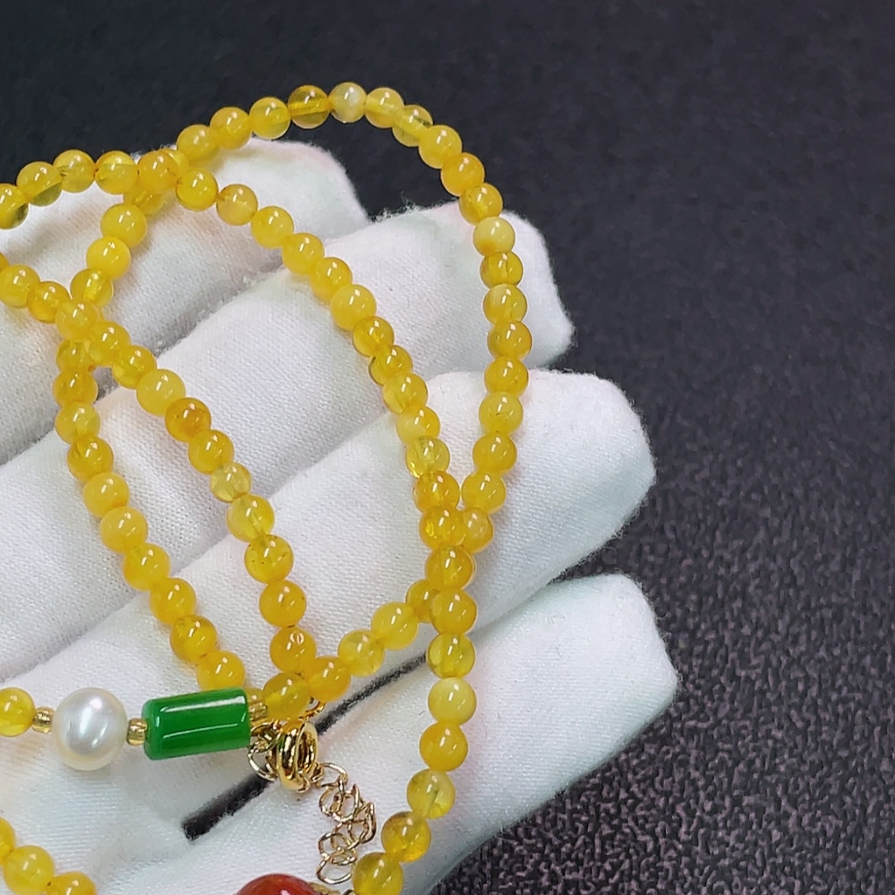 Amber and Beeswax Bead Strand with Non-Natural Accent Stones, Non-Gold, Total Weight Approx. 6.77g, Size About 4.1mm