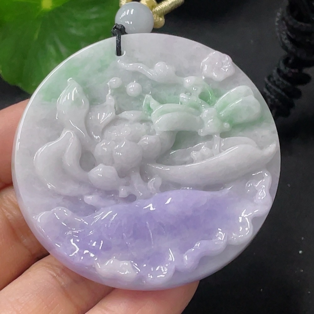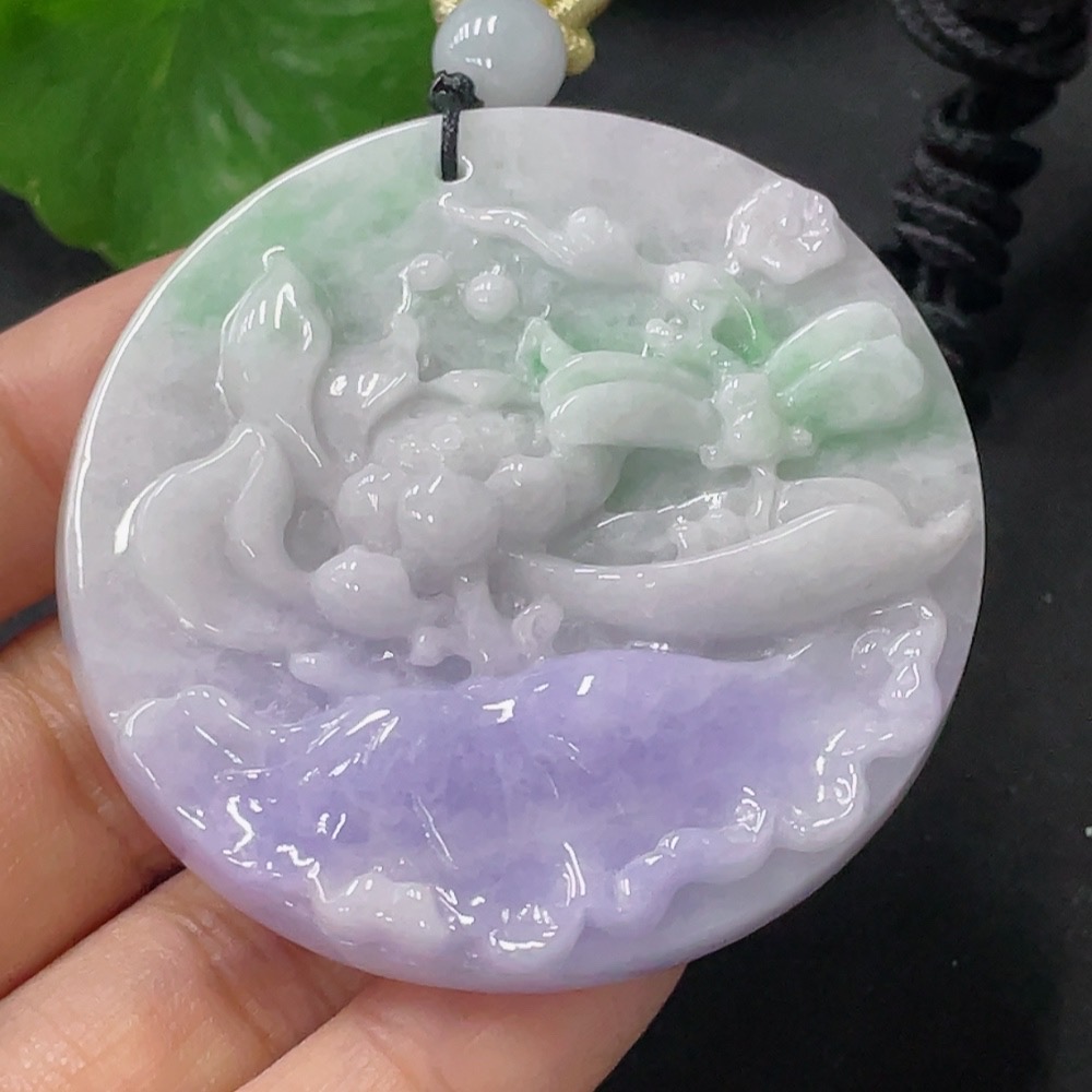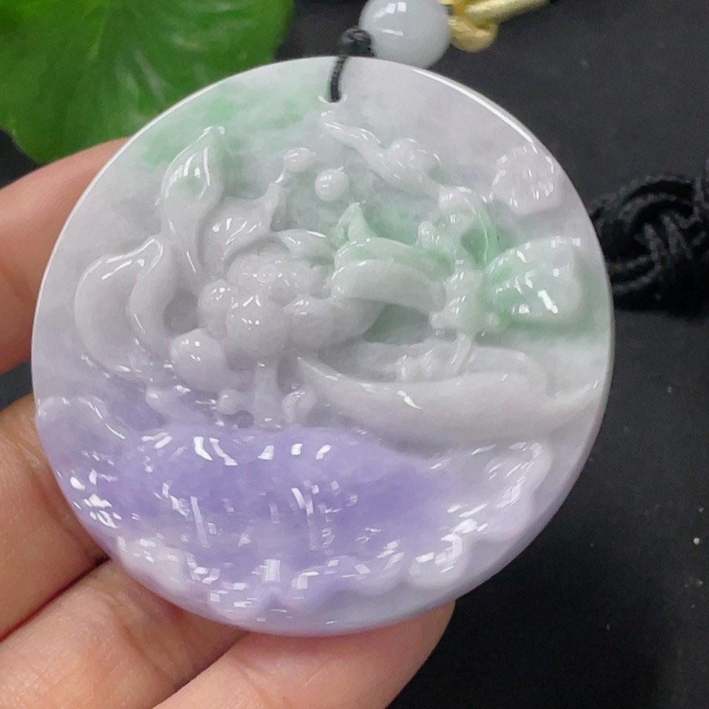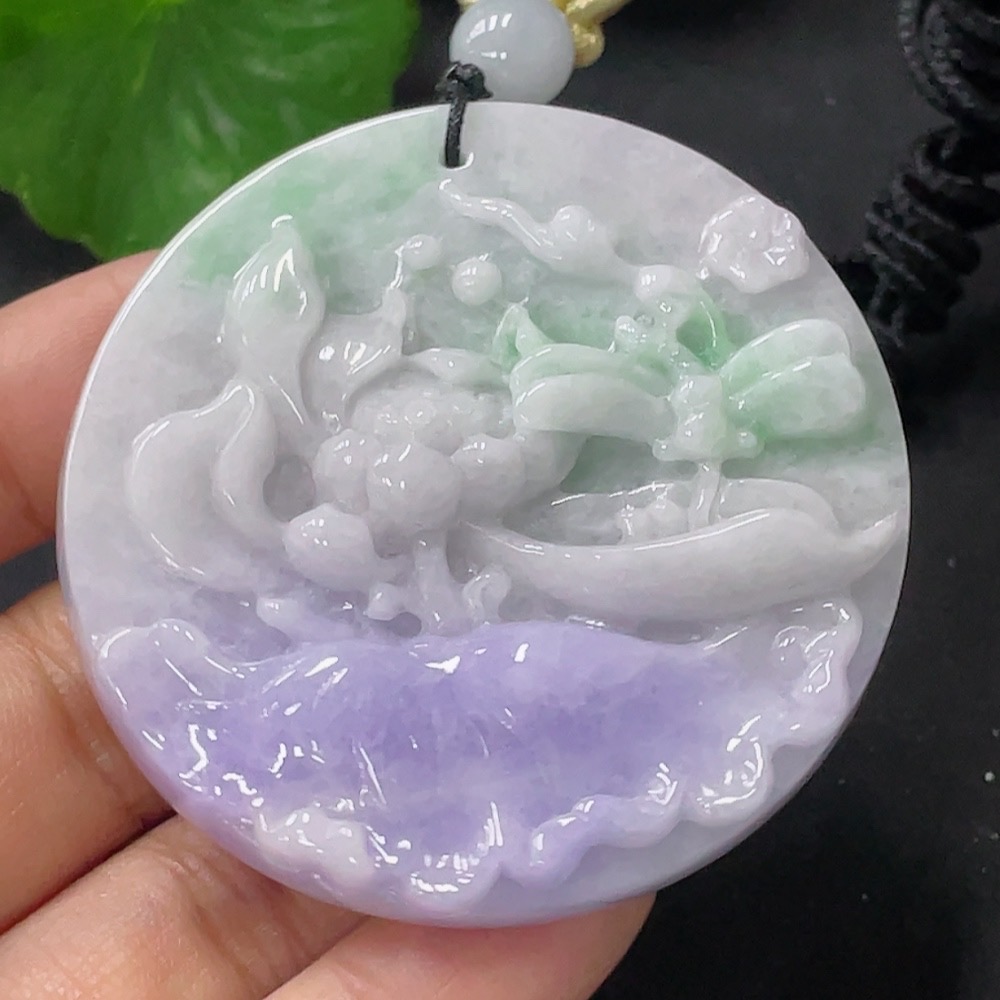 Jadeite Pendant Lotus Total Weight Approx. 41.69g Including Rope