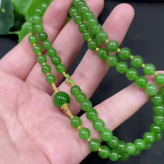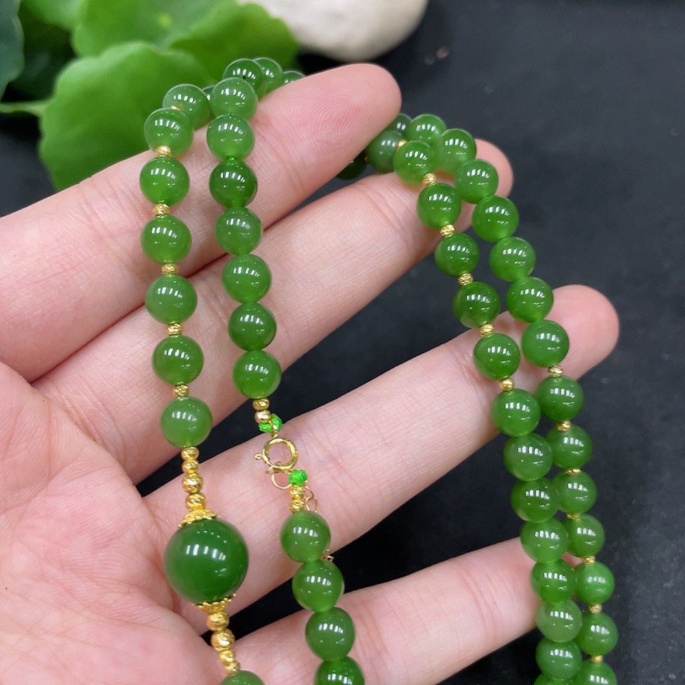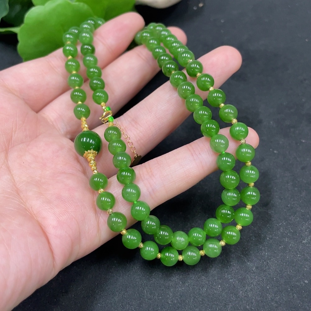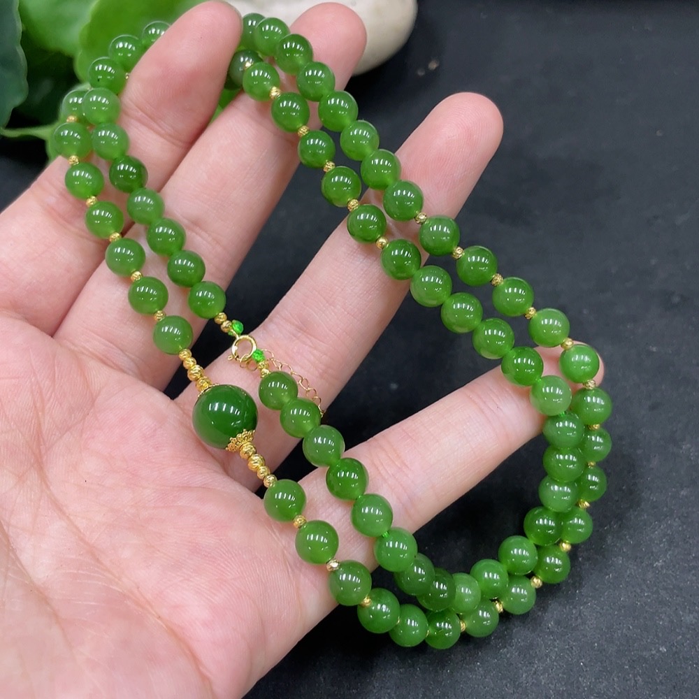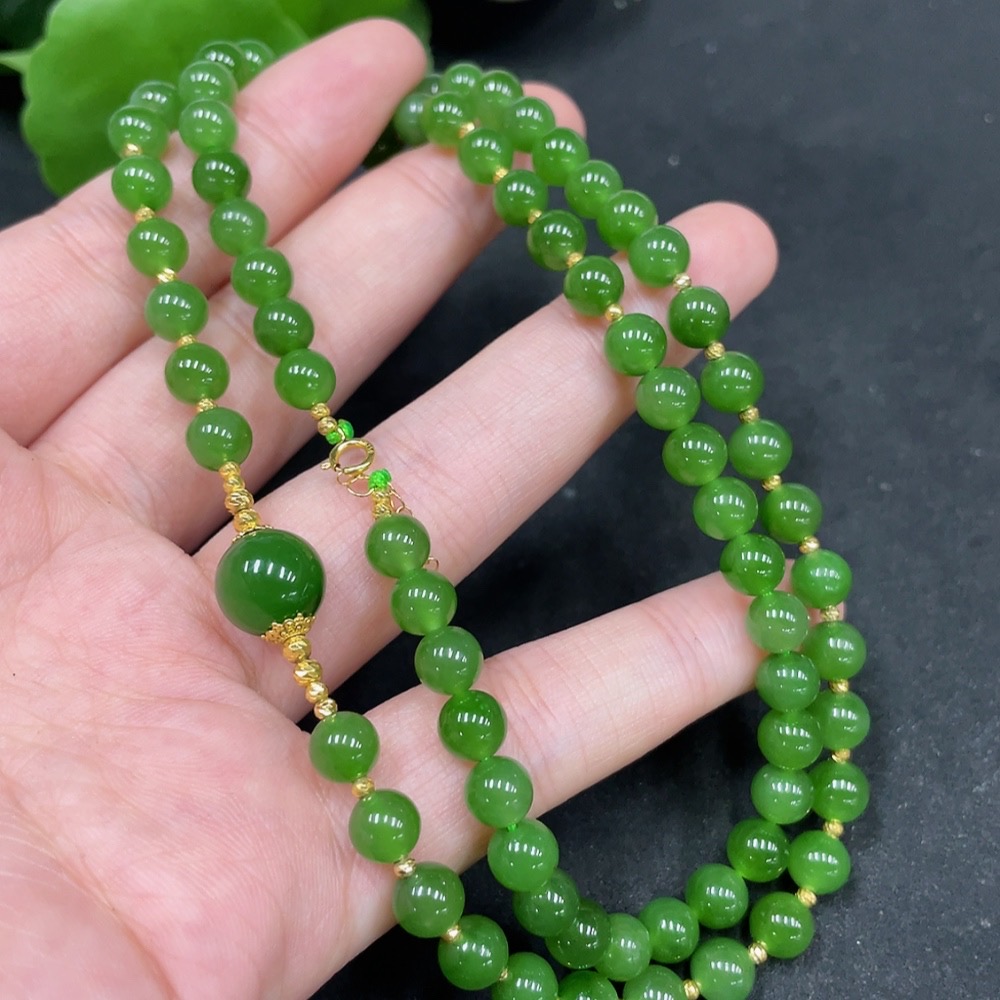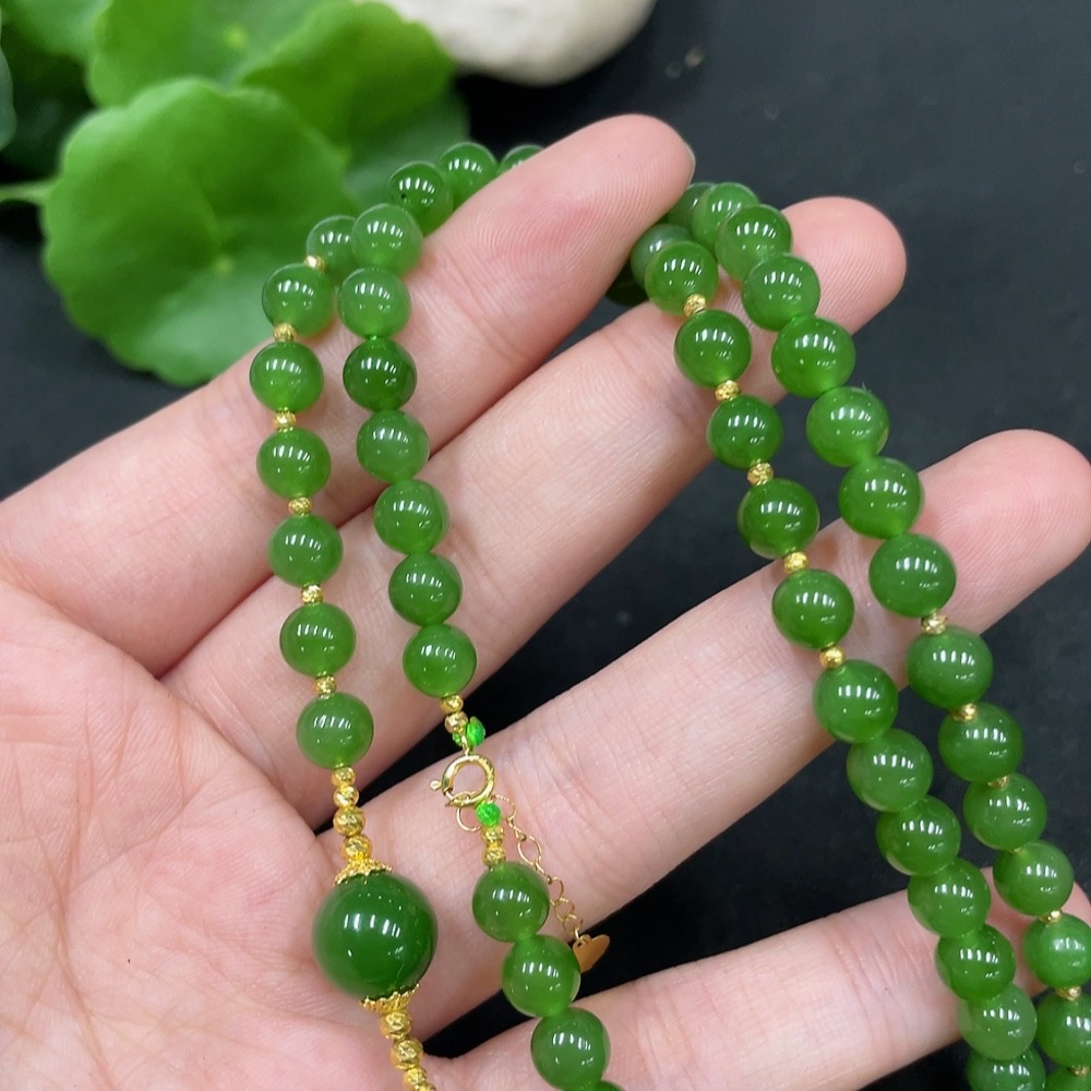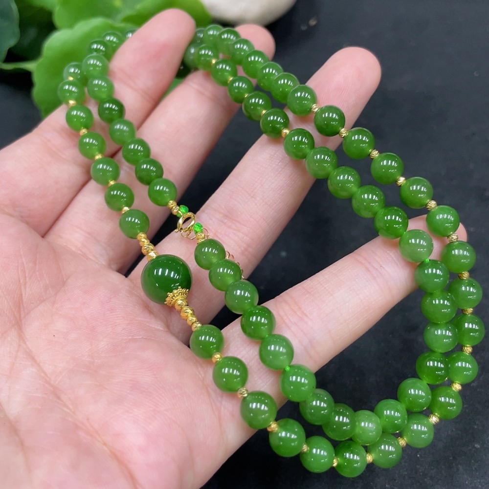 Hetian Jade Jasper Bead Necklace, Approx. 6mm, Total Weight About 27.9g, Gold Content 72%